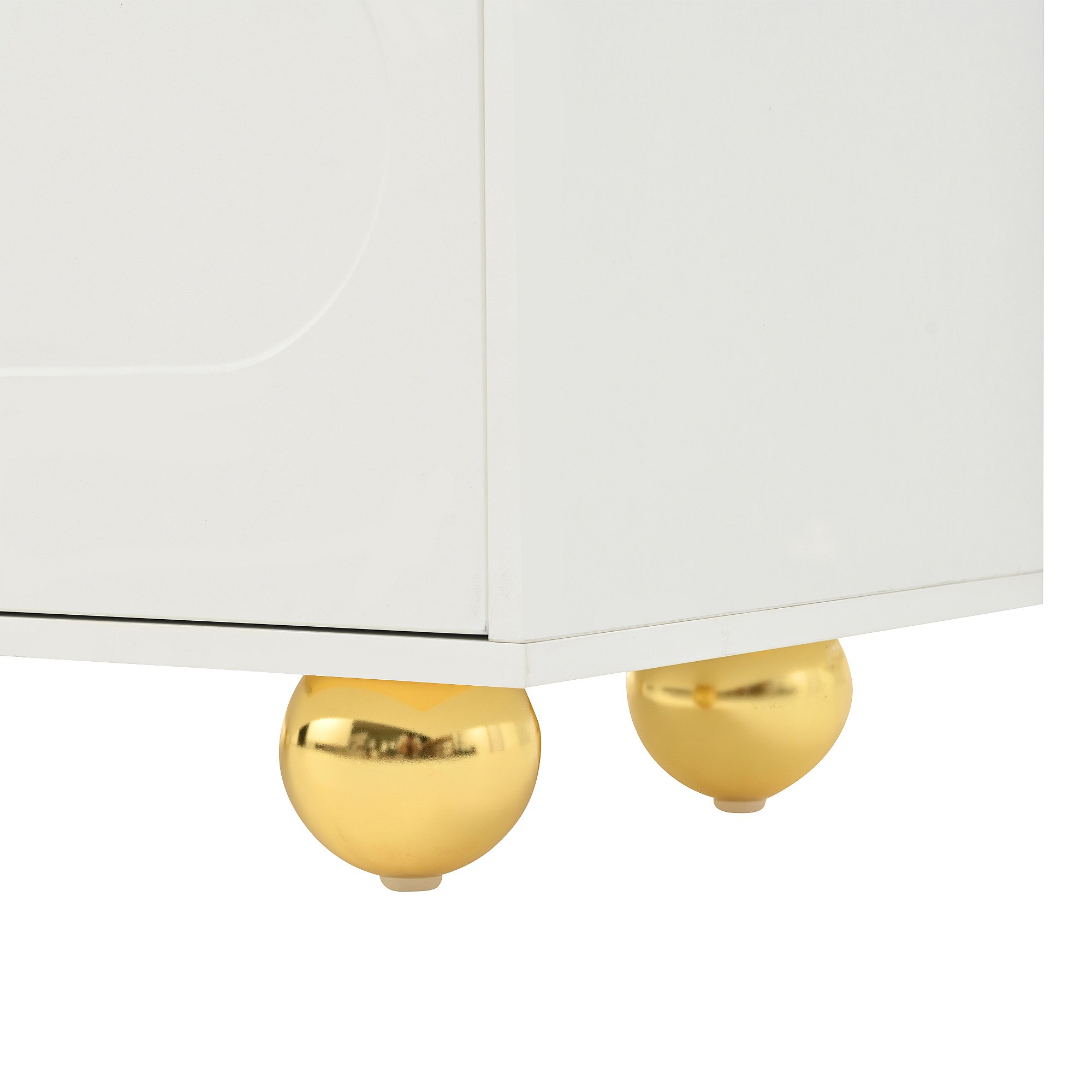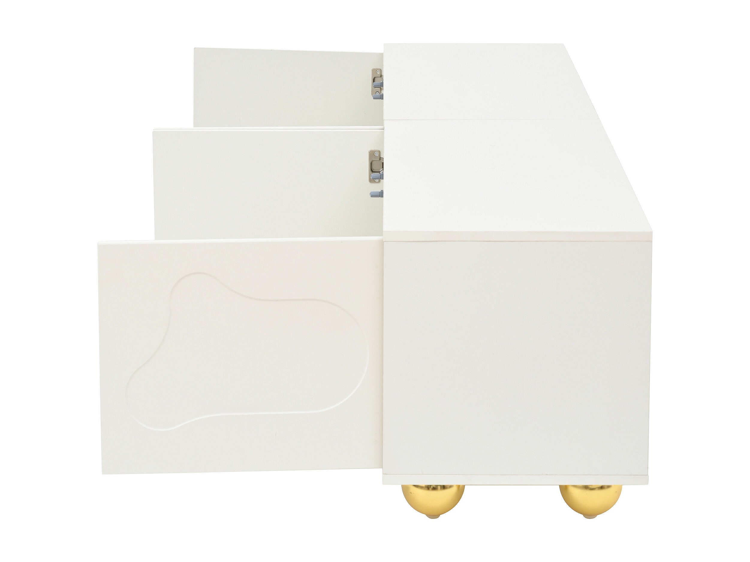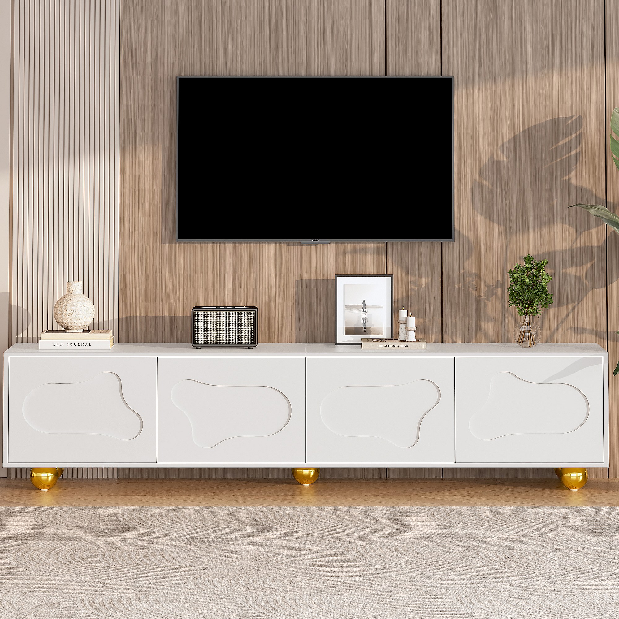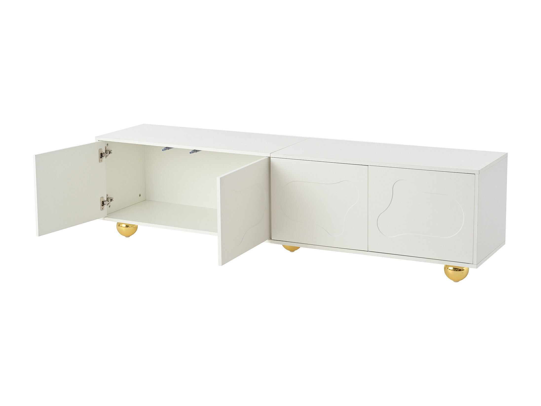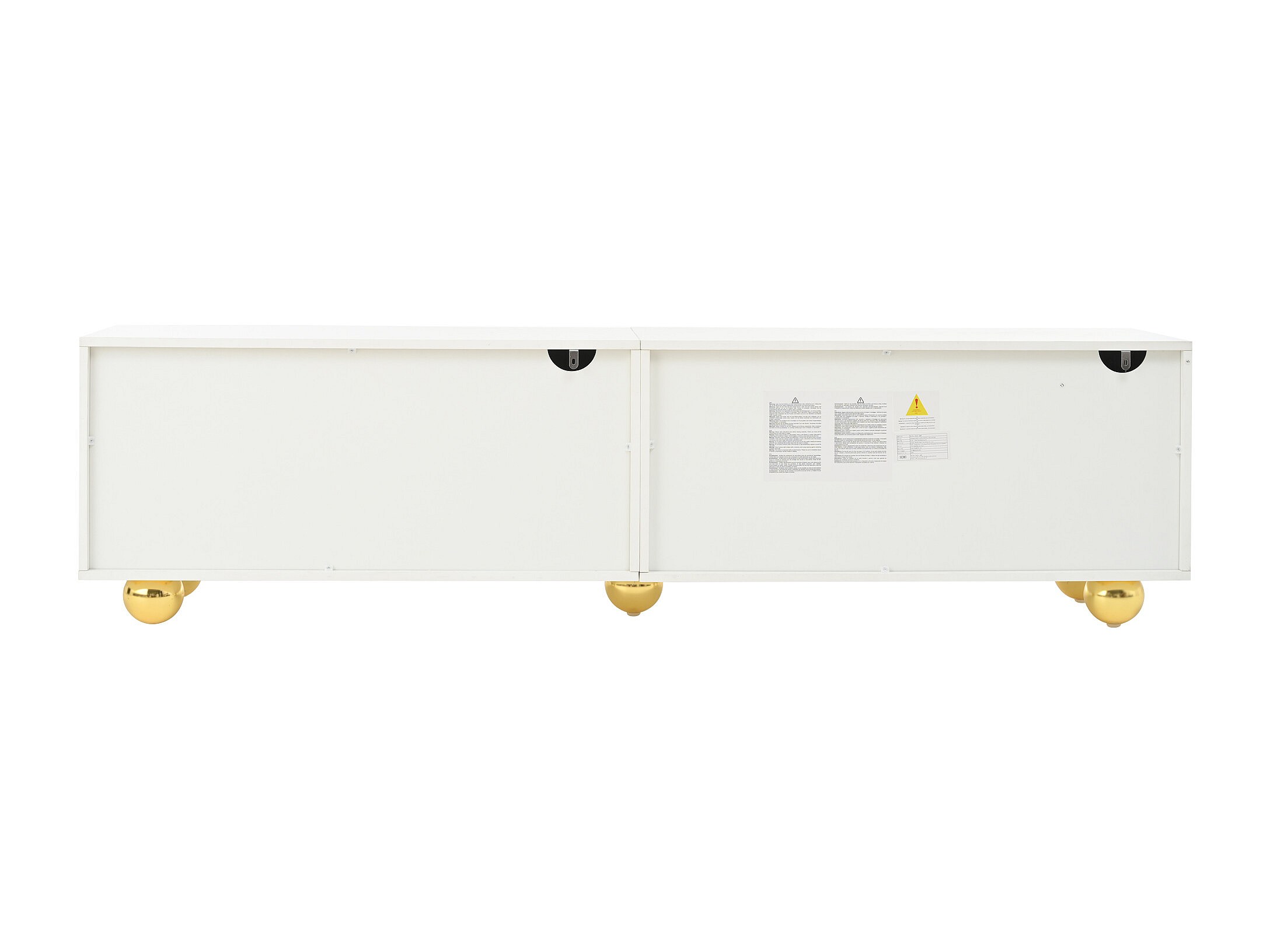 Mueble de TV blanco de 180 cm con marco dorado, 2 puertas, 2 cajones y patas ajustables para 80 pulgadas.