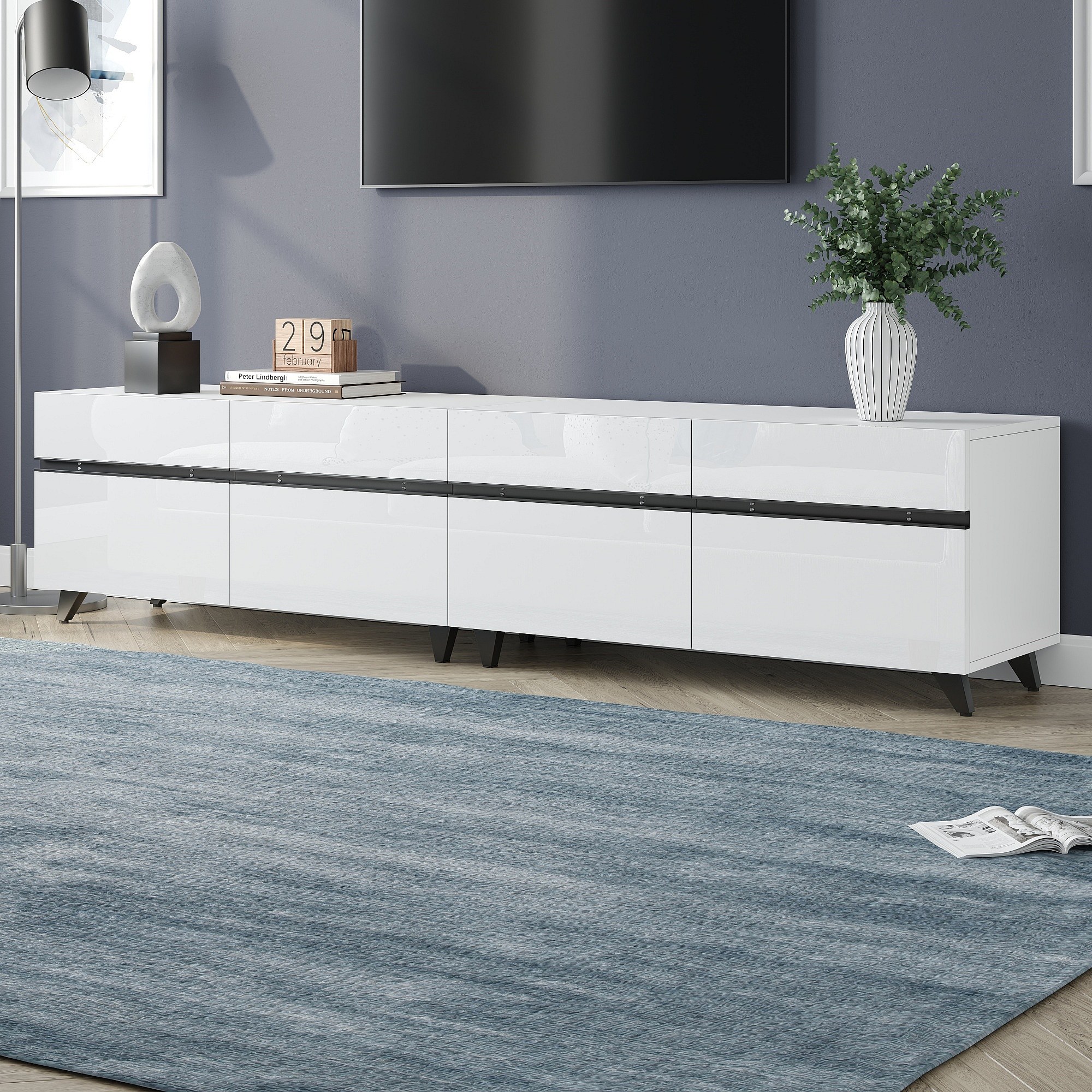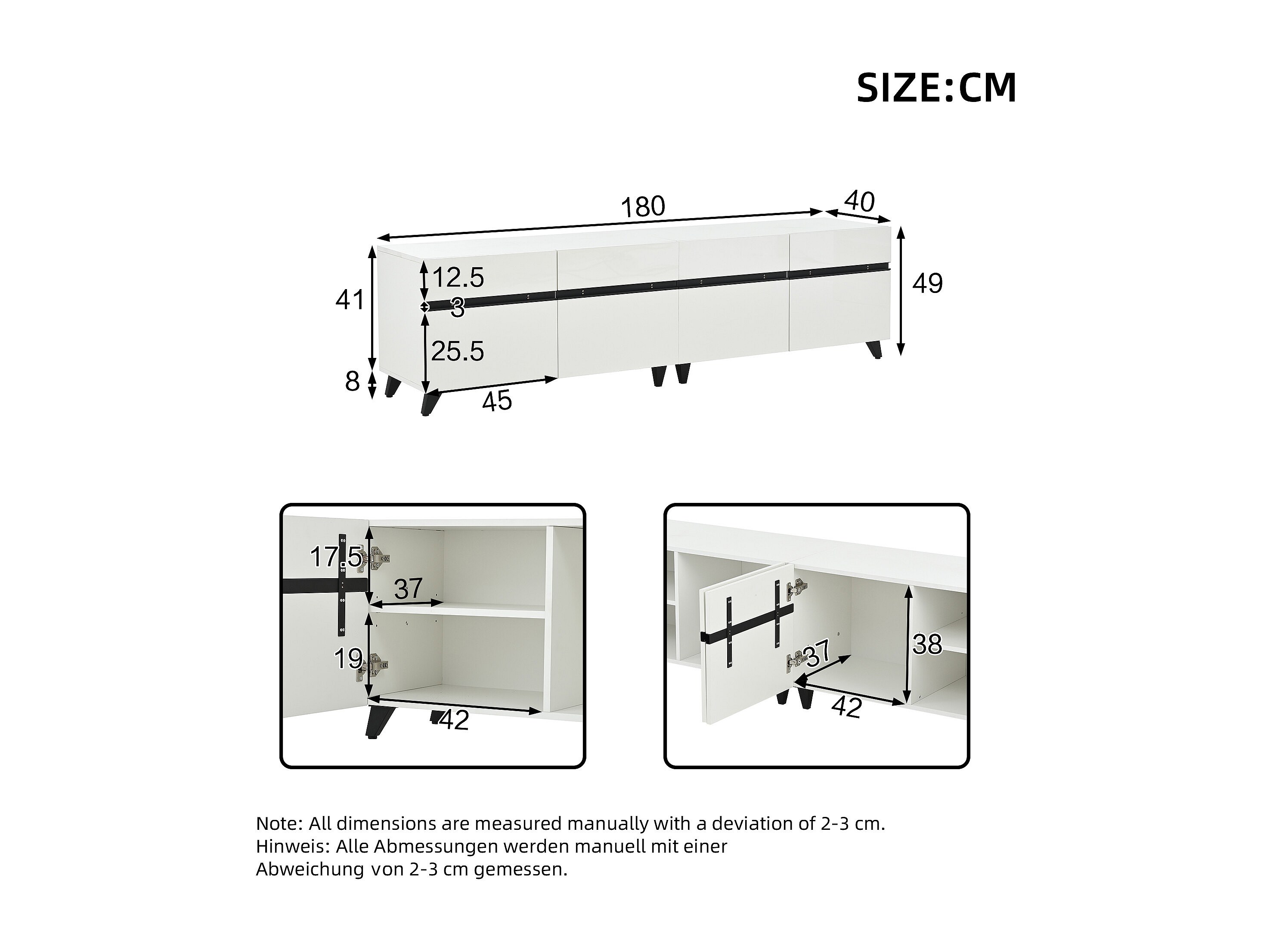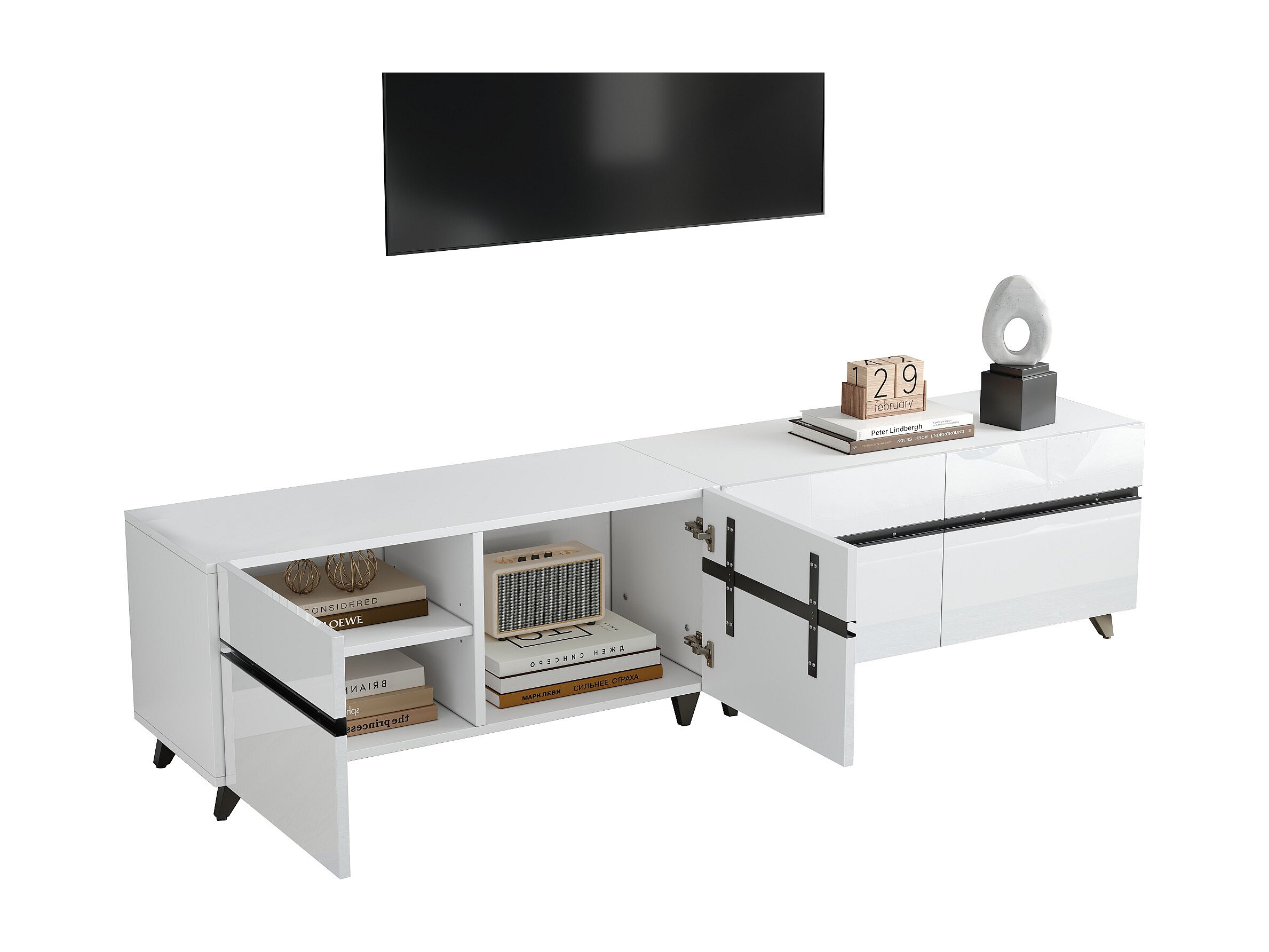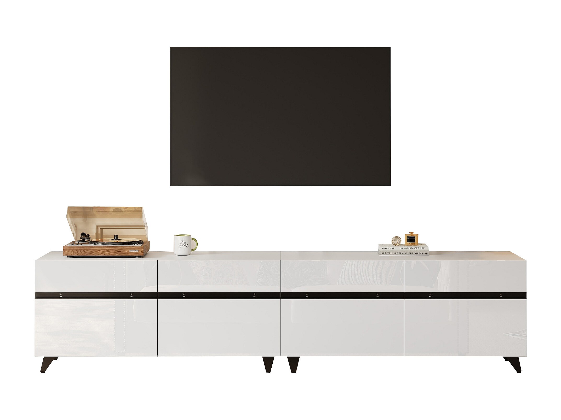 Mueble de TV 180x40x49 cm - 4 puertas - Estantes ajustables - Acabado brillante - MDF - Blanco