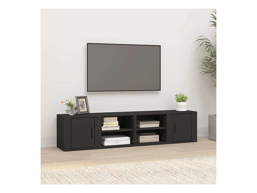 Mueble de TV 2 piezas Negro 80x31,5x36 cm Madera de Ingeniería