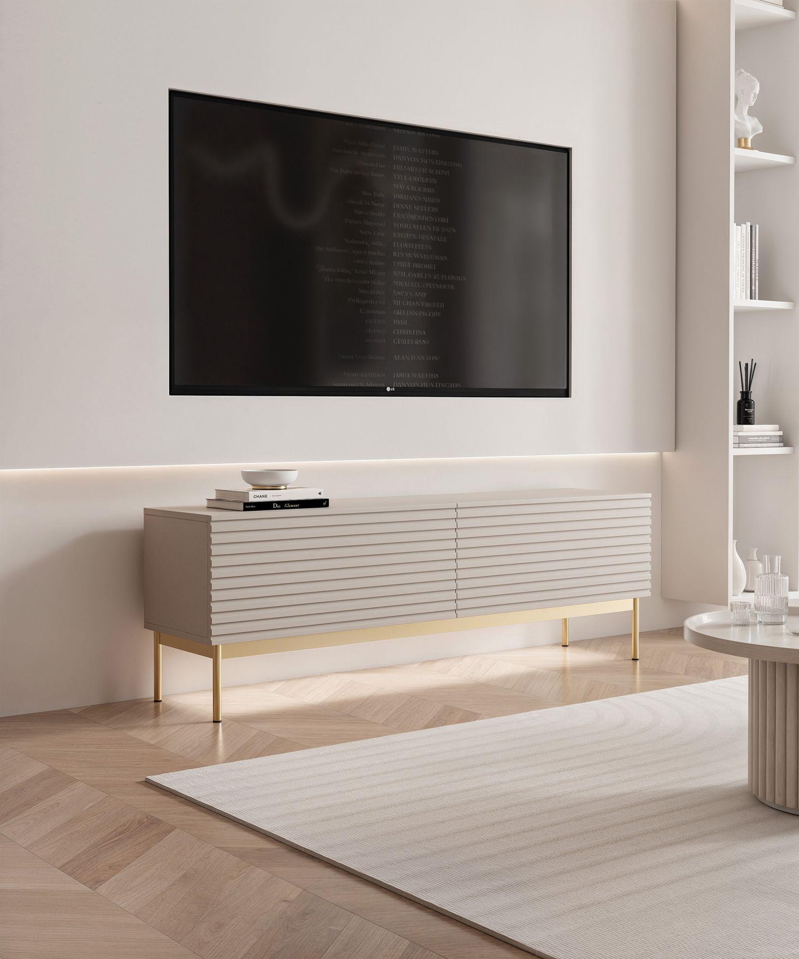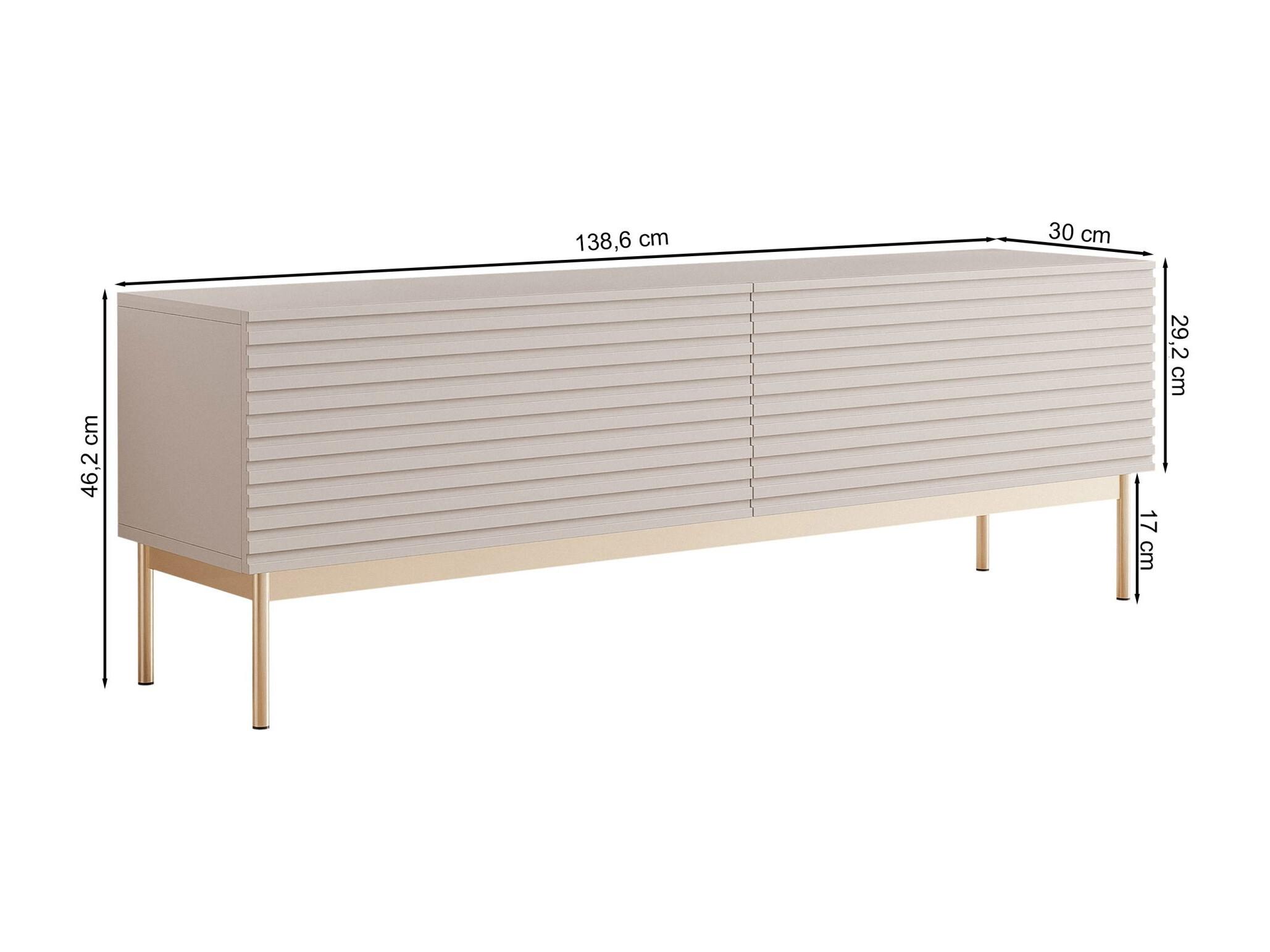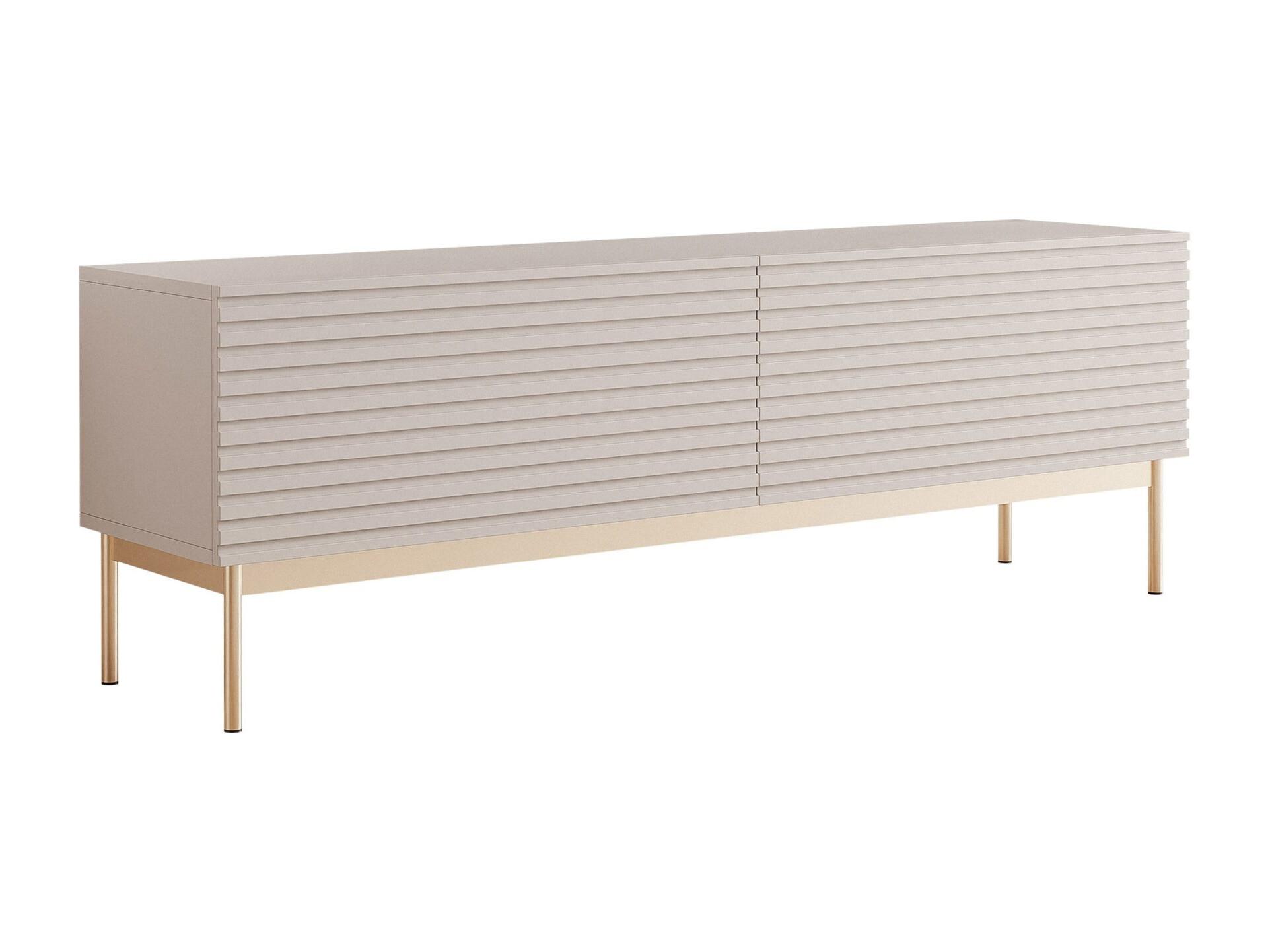 Mueble TV de 2 puertas con pies dorados - 121 cm - beige - OKTIO