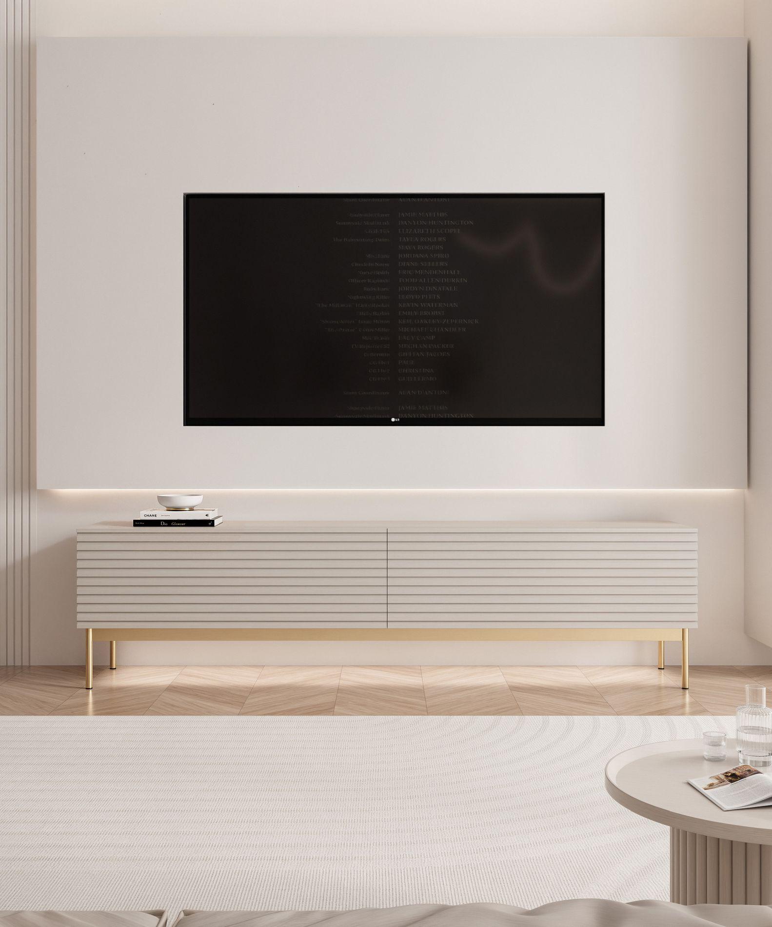 Mueble TV de 2 puertas con pies dorados - 121 cm - beige - OKTIO