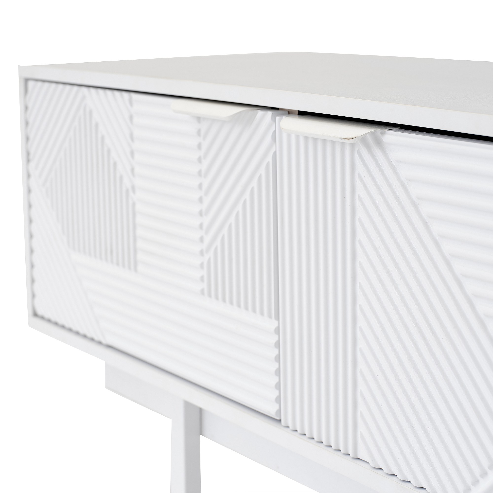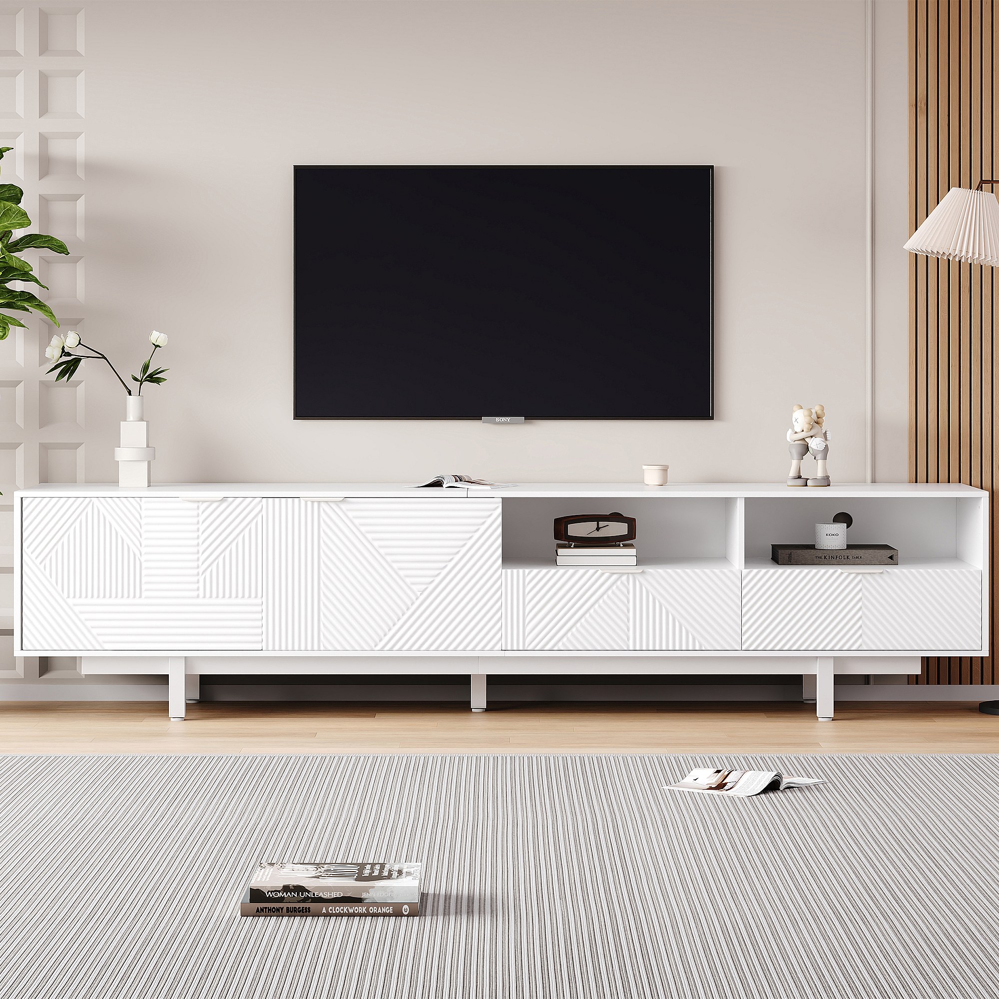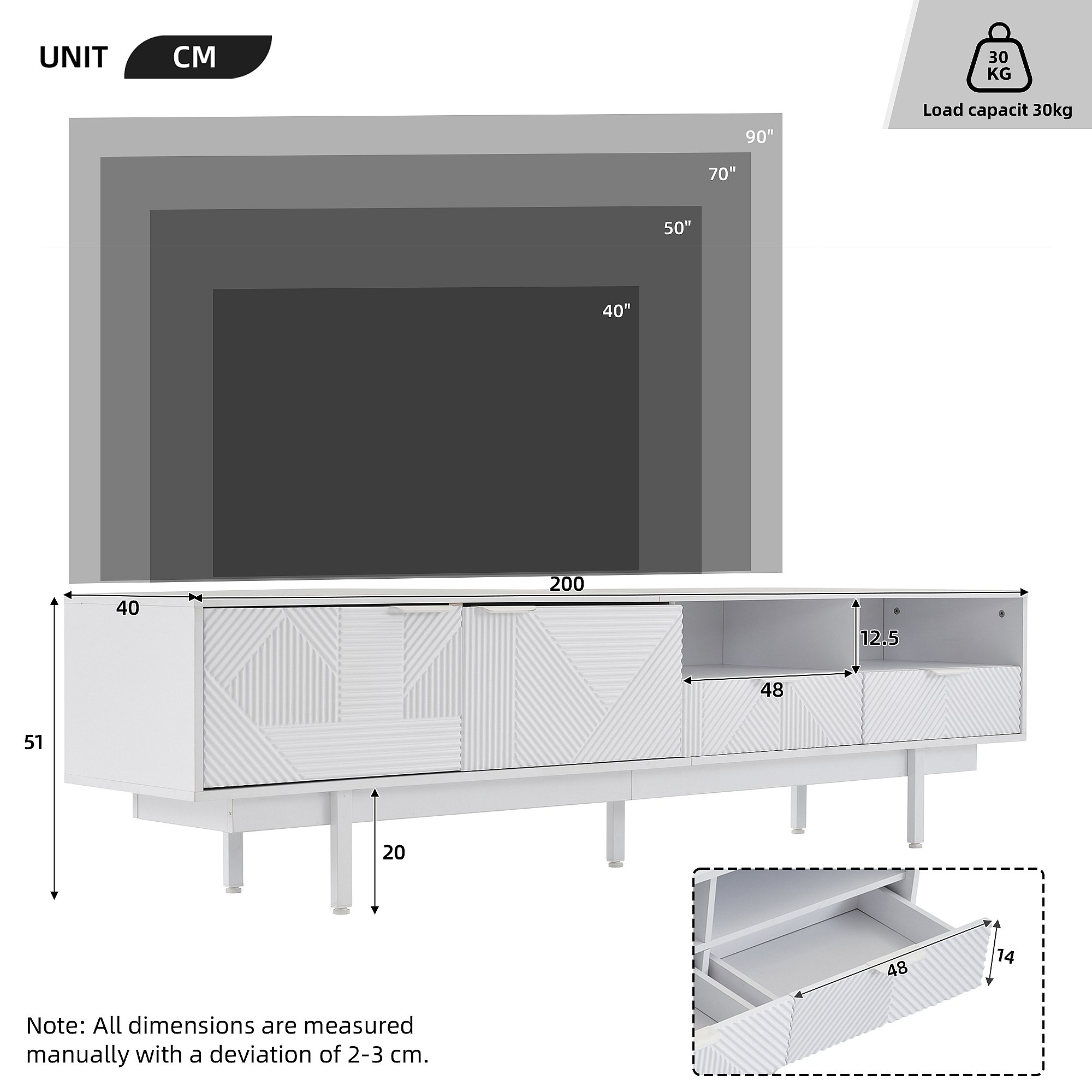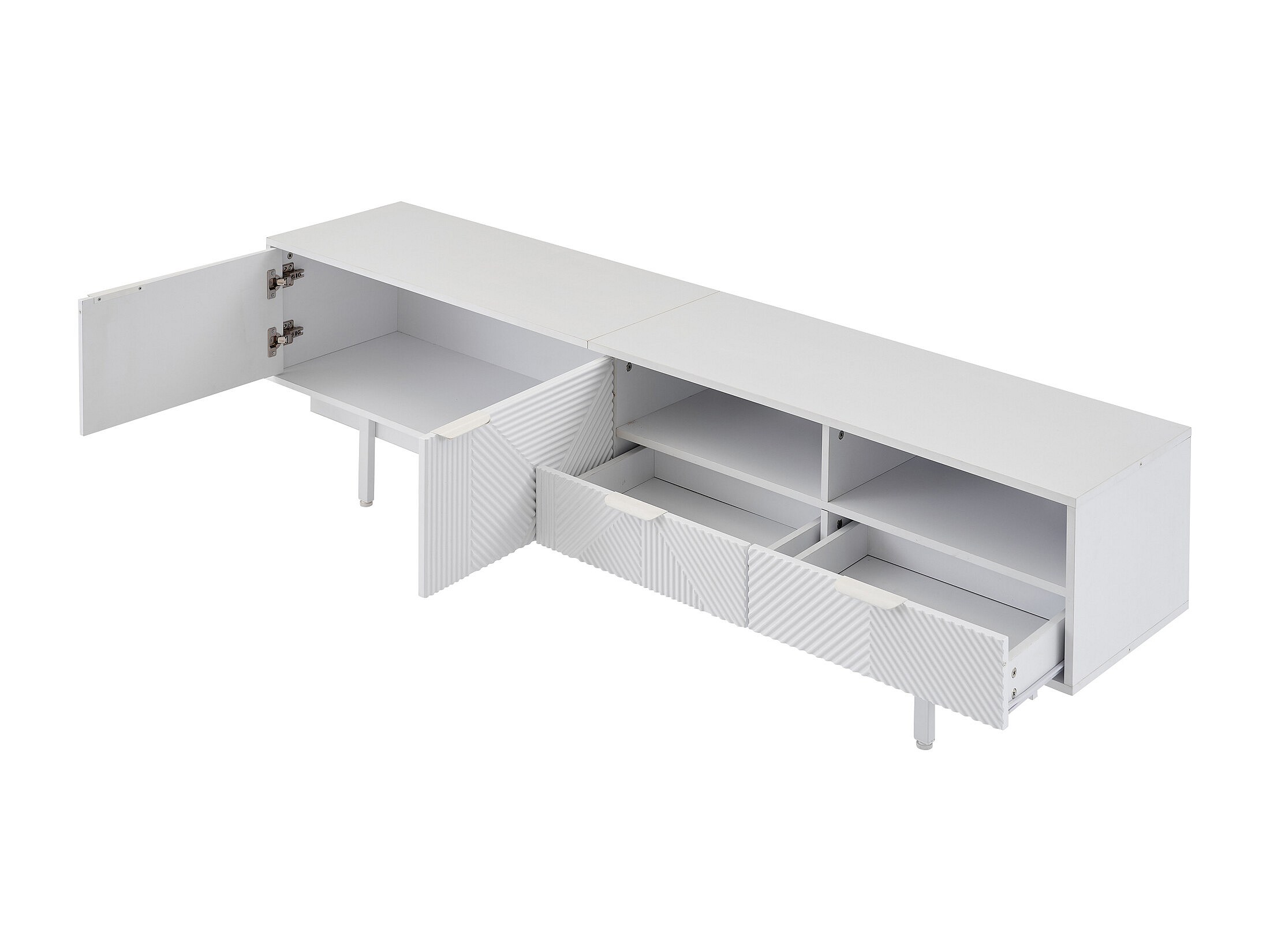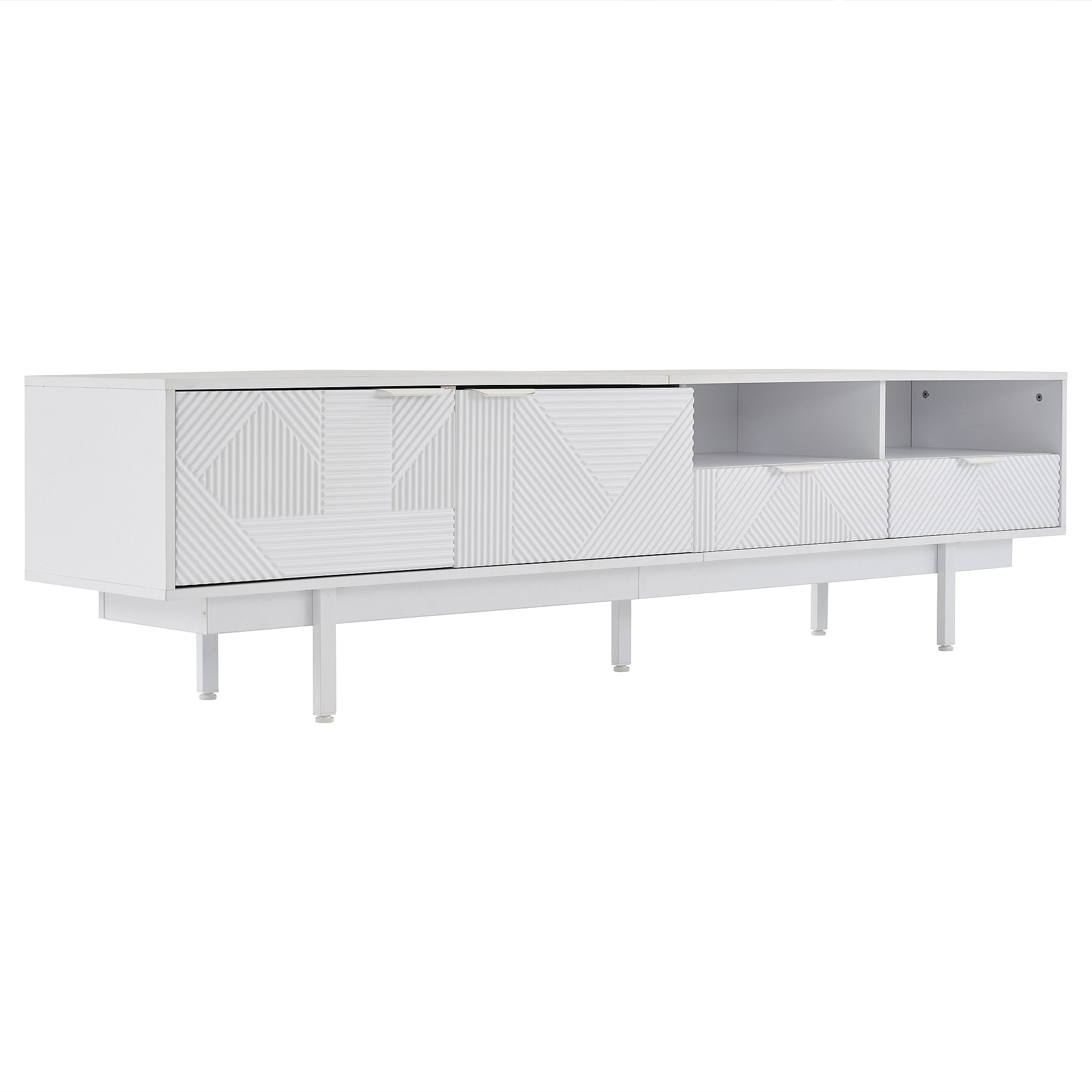 Mueble de TV blanco de 200 cm con diseño geométrico bohemio para TV de 90 pulgadas