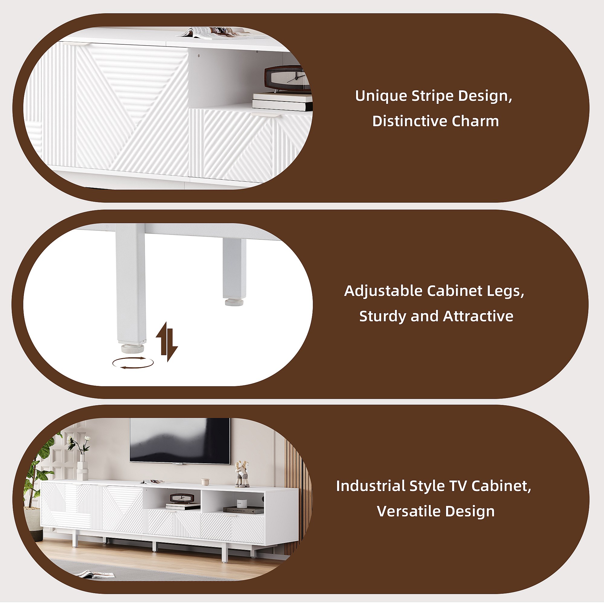 Mueble para TV LED blanco de 180 cm, estilo industrial, con espacio de almacenamiento para TV de 80 pulgadas, para salón.