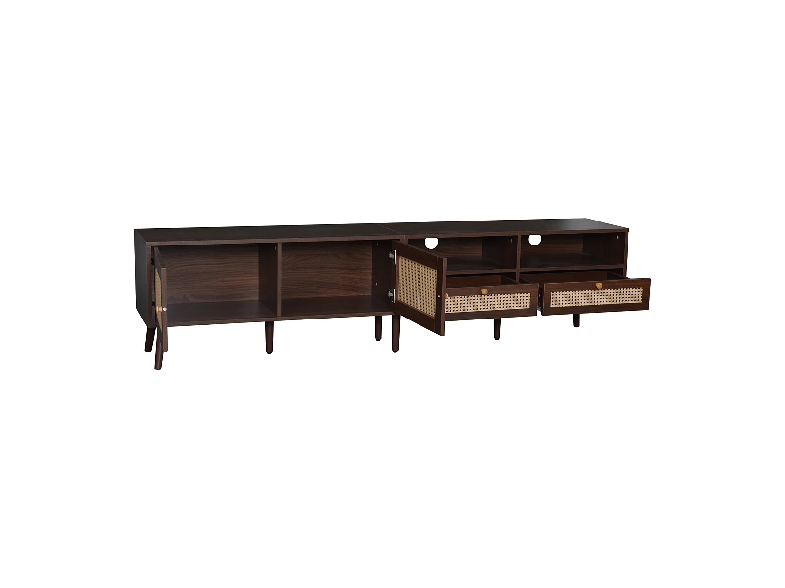 Mueble de TV 200x37x49,5cm, 2 puertas de ratán y 2 cajones, para hasta 80 pulgadas, color marrón