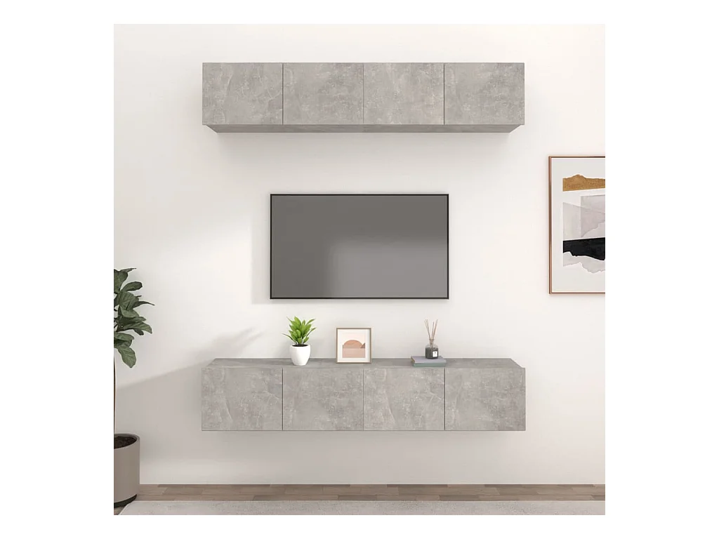 Mueble de TV 4 piezas gris hormigón 80x30x30 cm madera de ingeniería