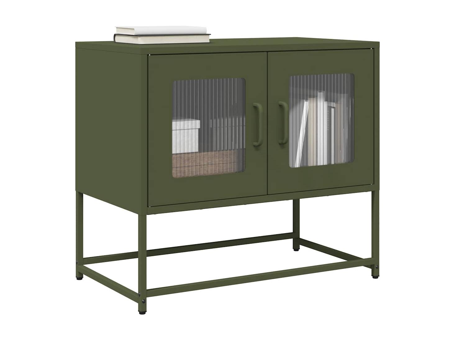 Mueble de TV acero laminado en frío verde oliva 68x39x60,5 cm