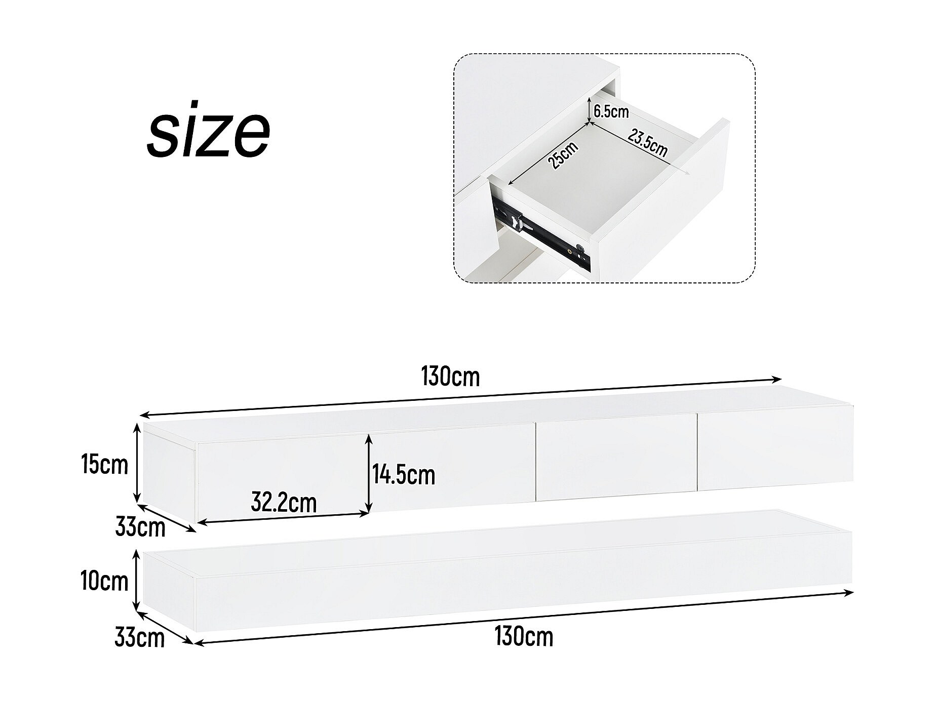 Mueble TV LED con iluminación RGB de 16 colores, 2 armarios y 4 cajones, 130 x 33 x 15 cm, blanco