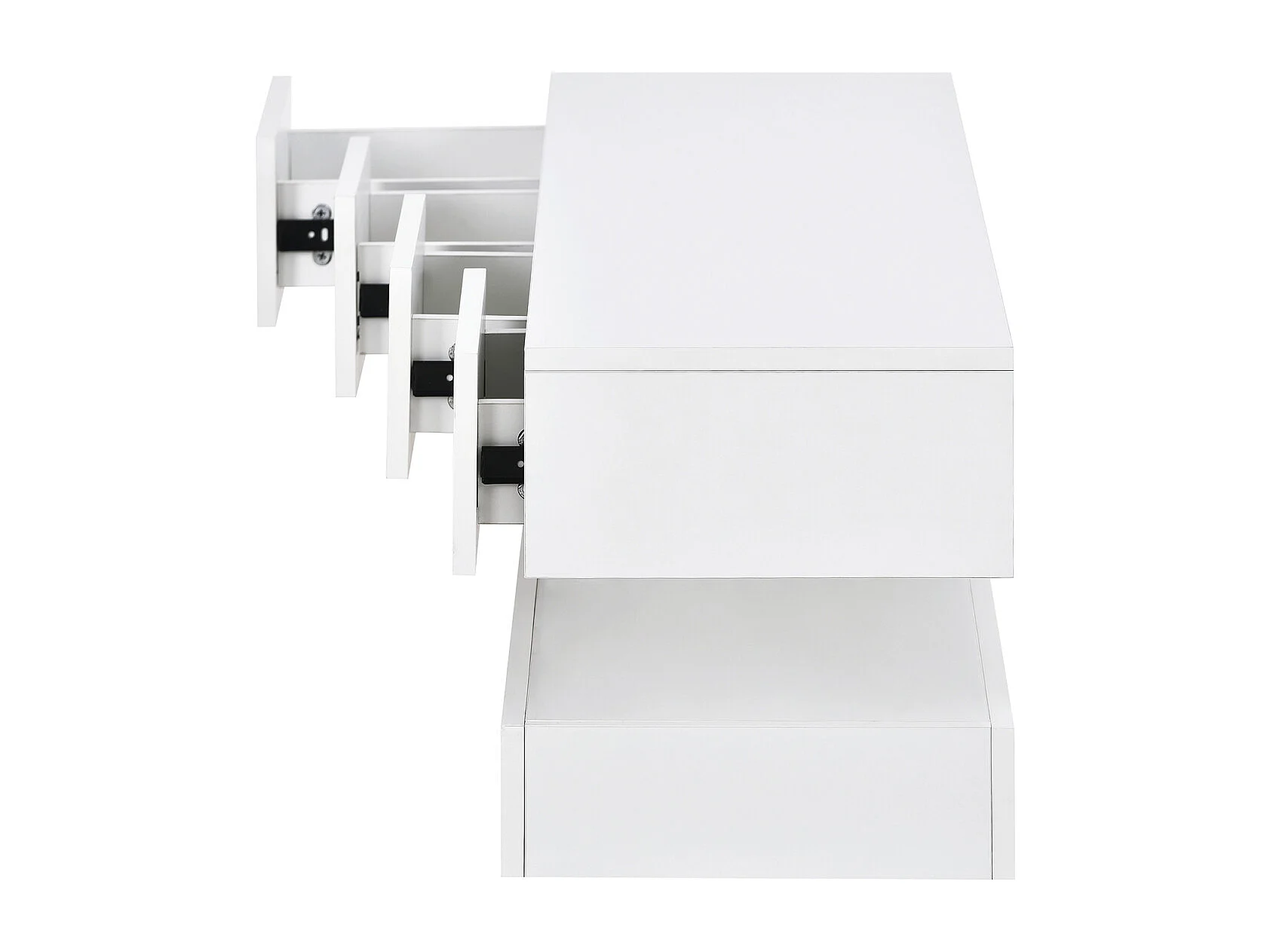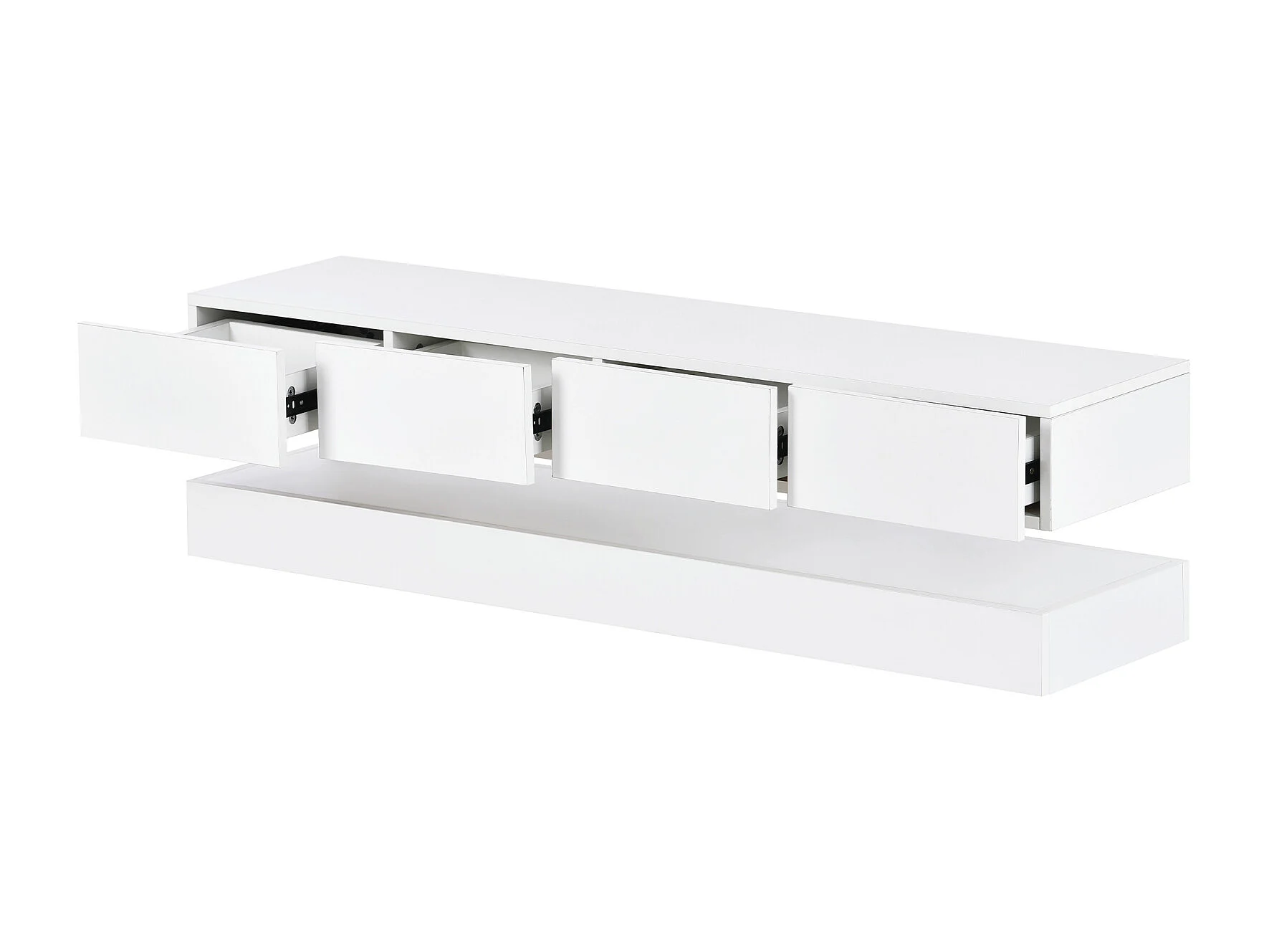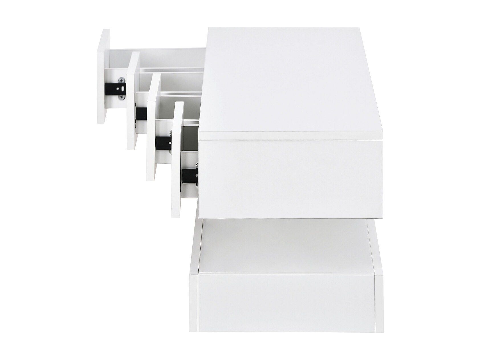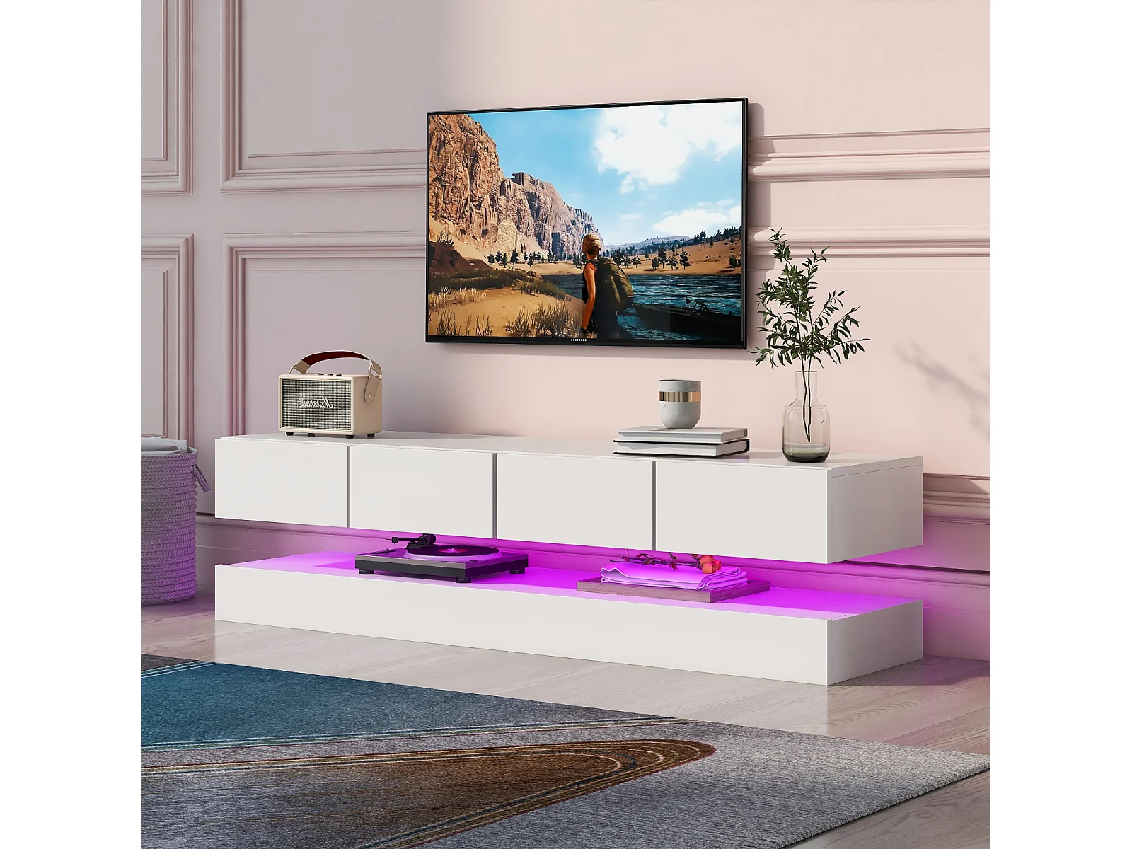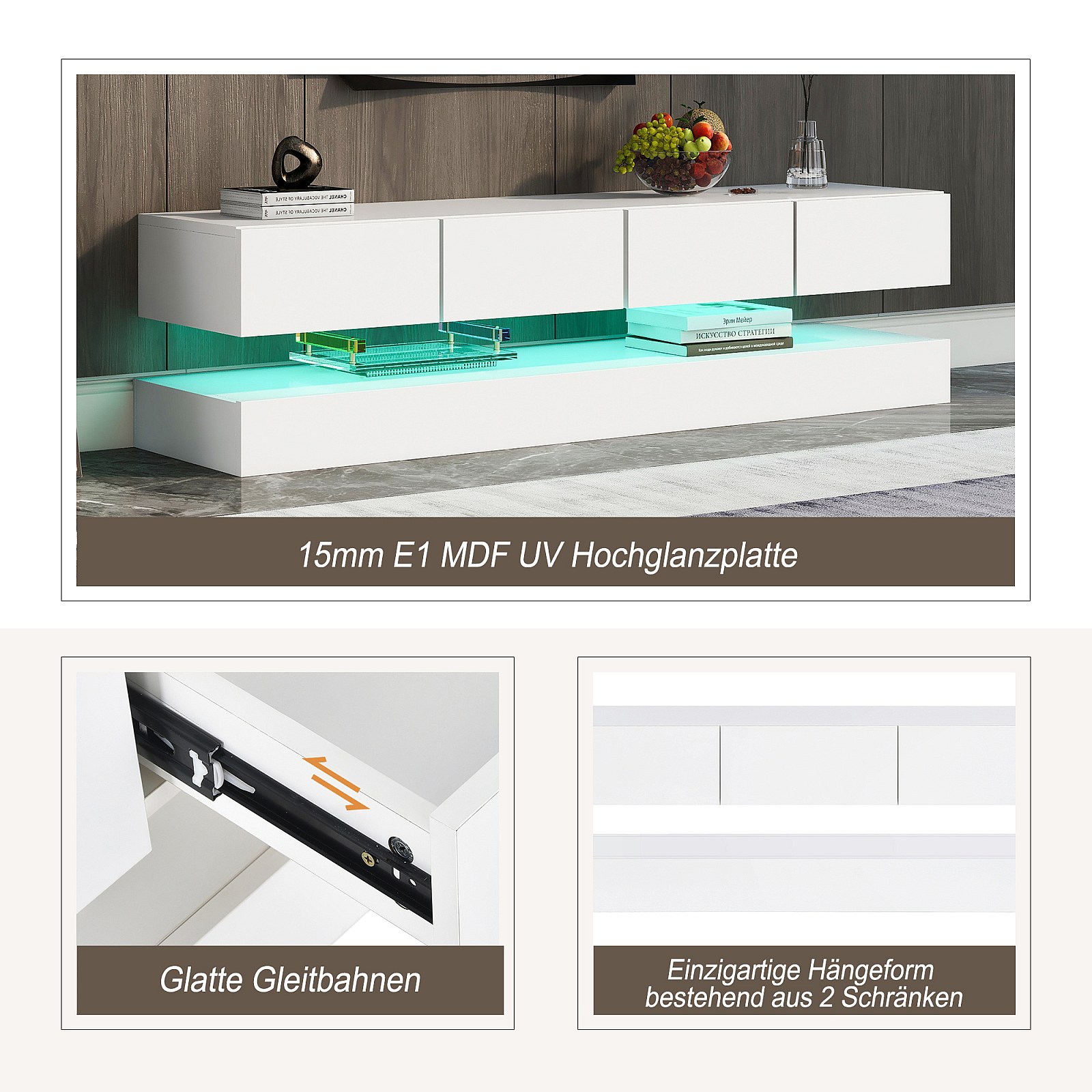 Mueble de TV bajo de pared con iluminación LED de 16 colores, soporte para TV con 4 cajones grandes, color blanco