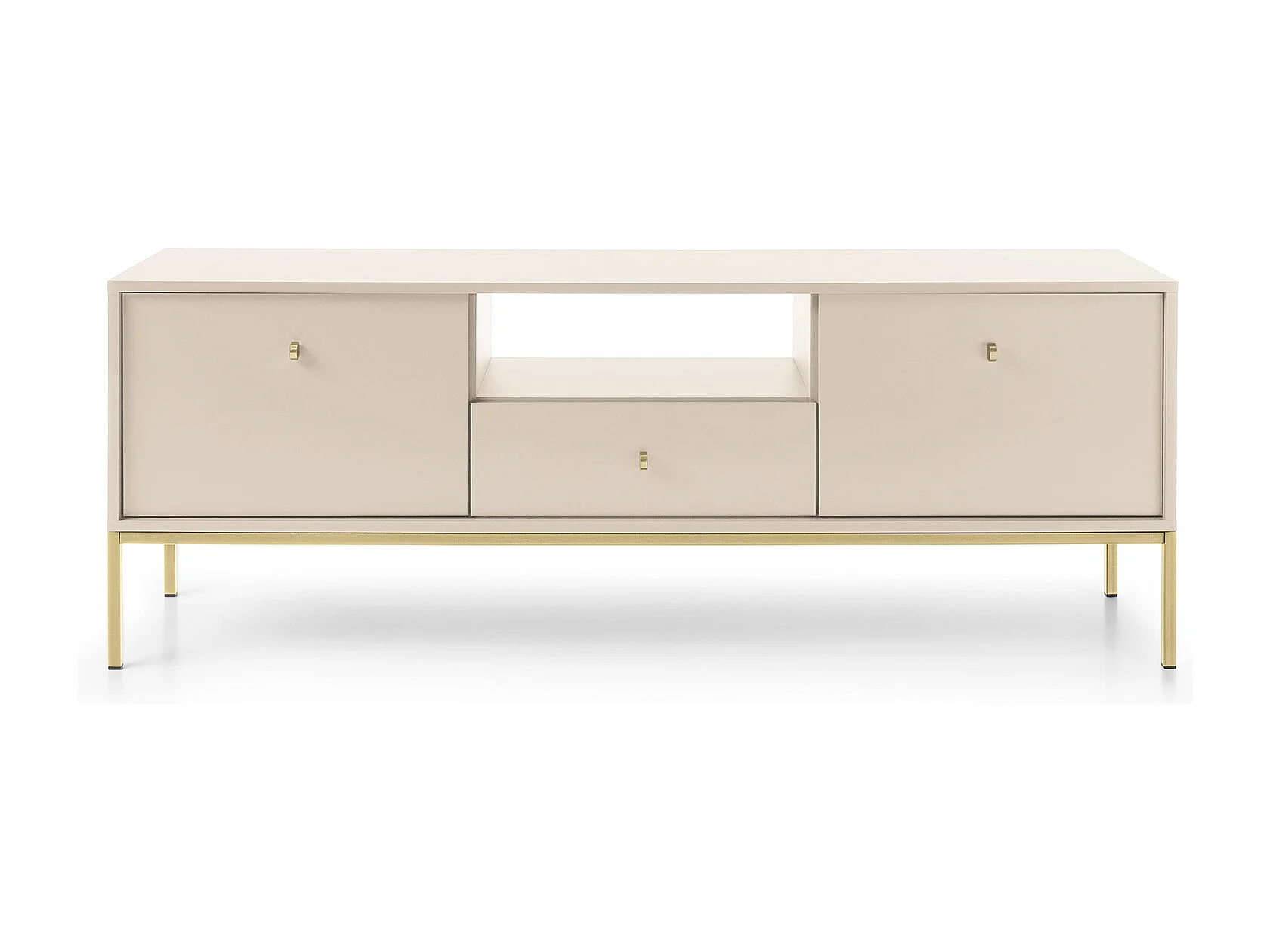 Mueble de TV, beige arena, 153,4 x 56,2 x 39 cm, patas doradas