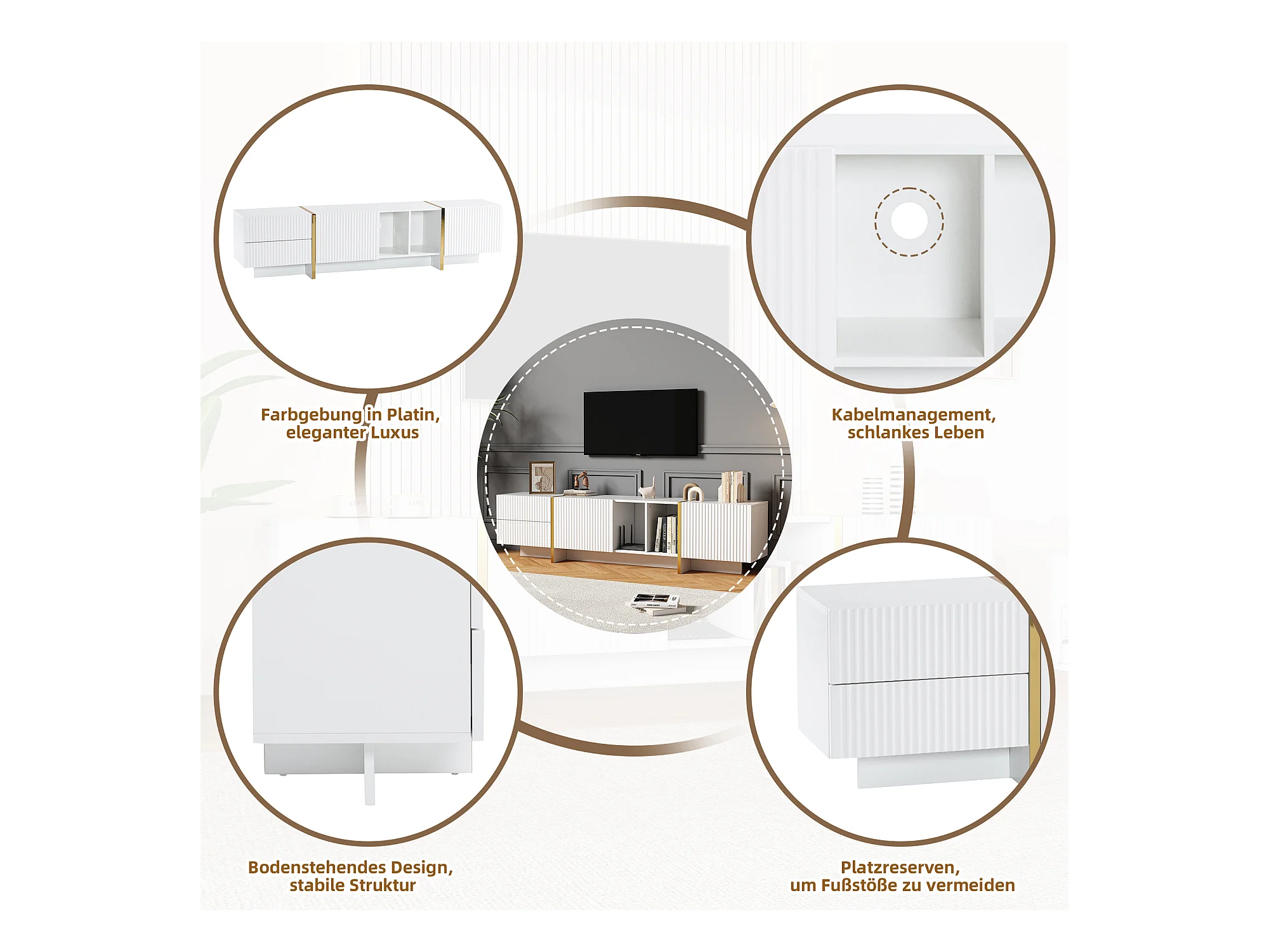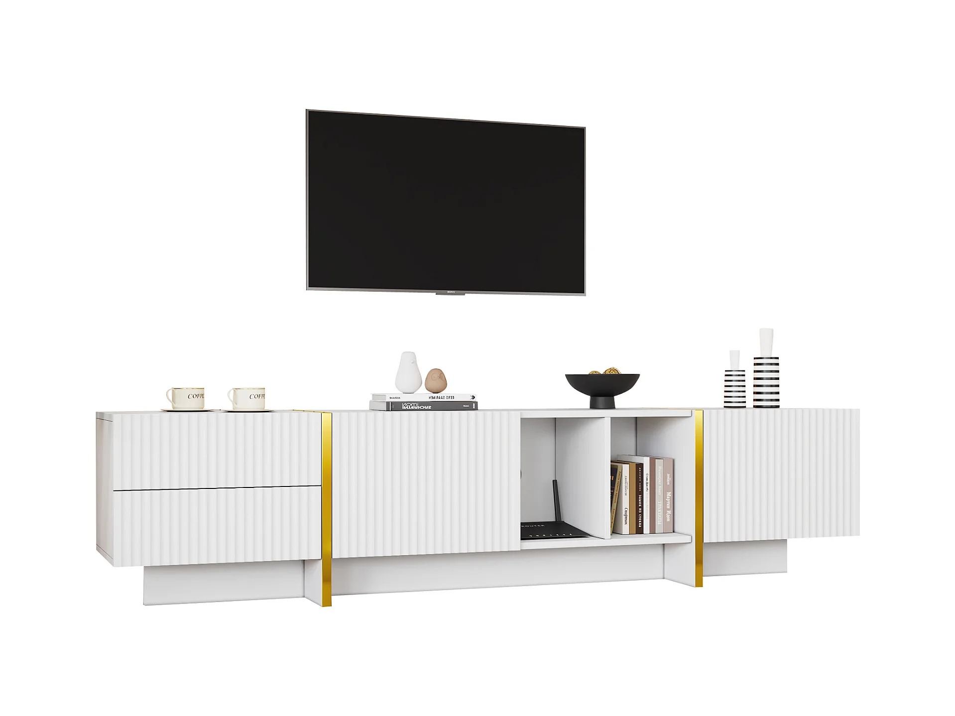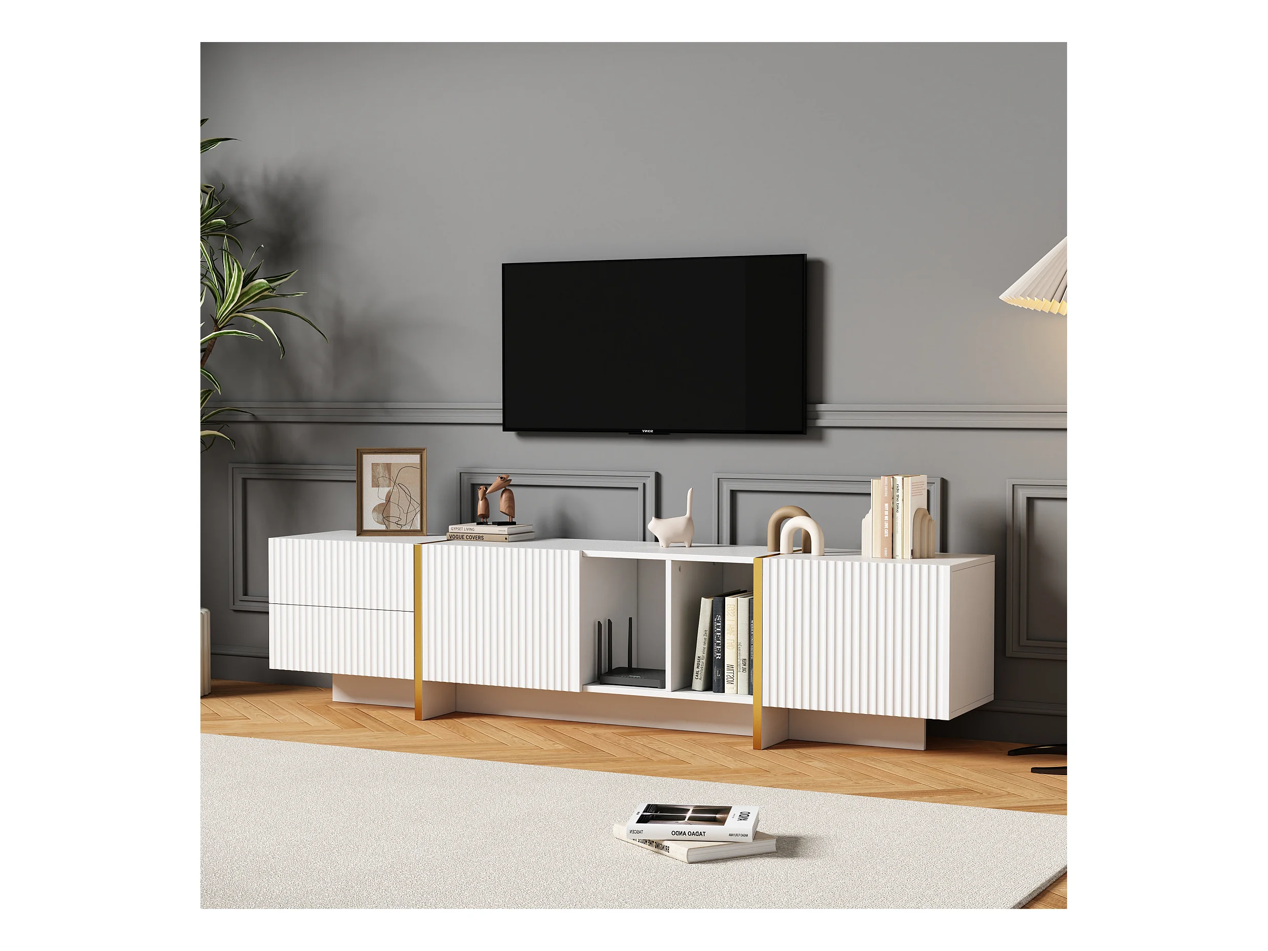 Mueble TV MDF 190 cm 3 puertas y 2 cajones madera oro blanco salón moderno