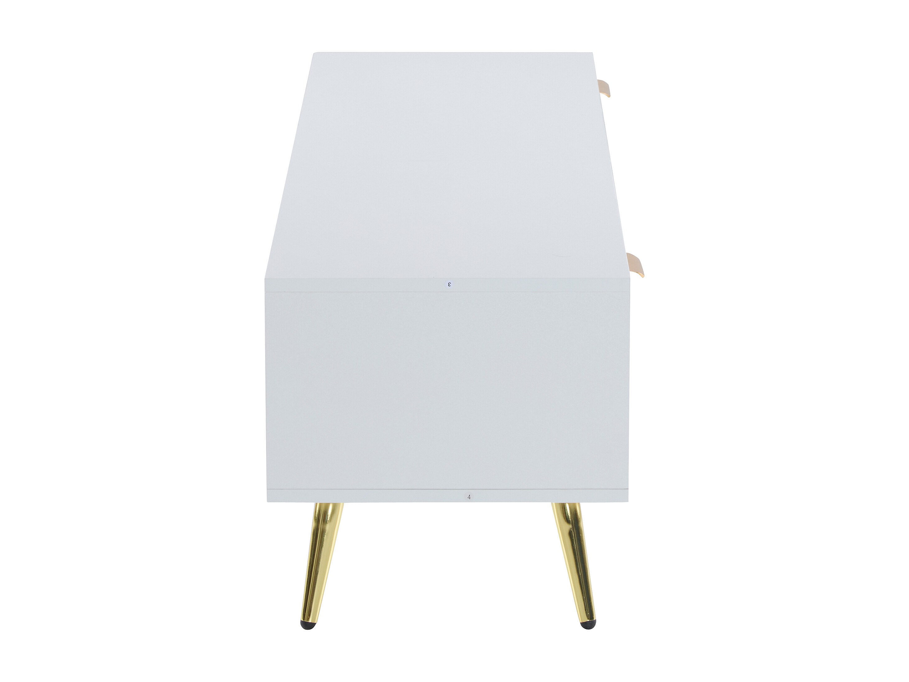 Mueble de TV blanco de 180 cm con diseño de panal y patas doradas para sala de estar.