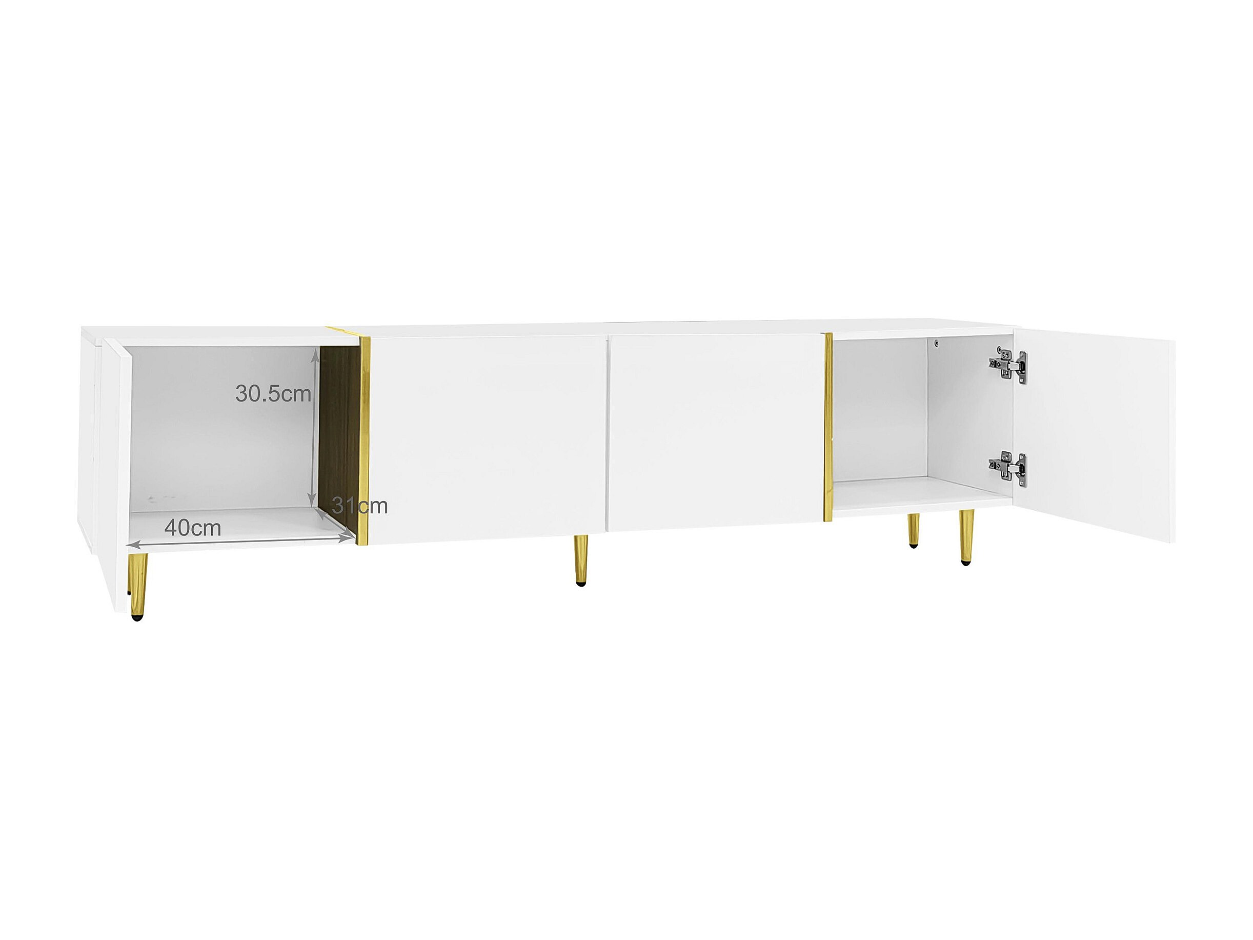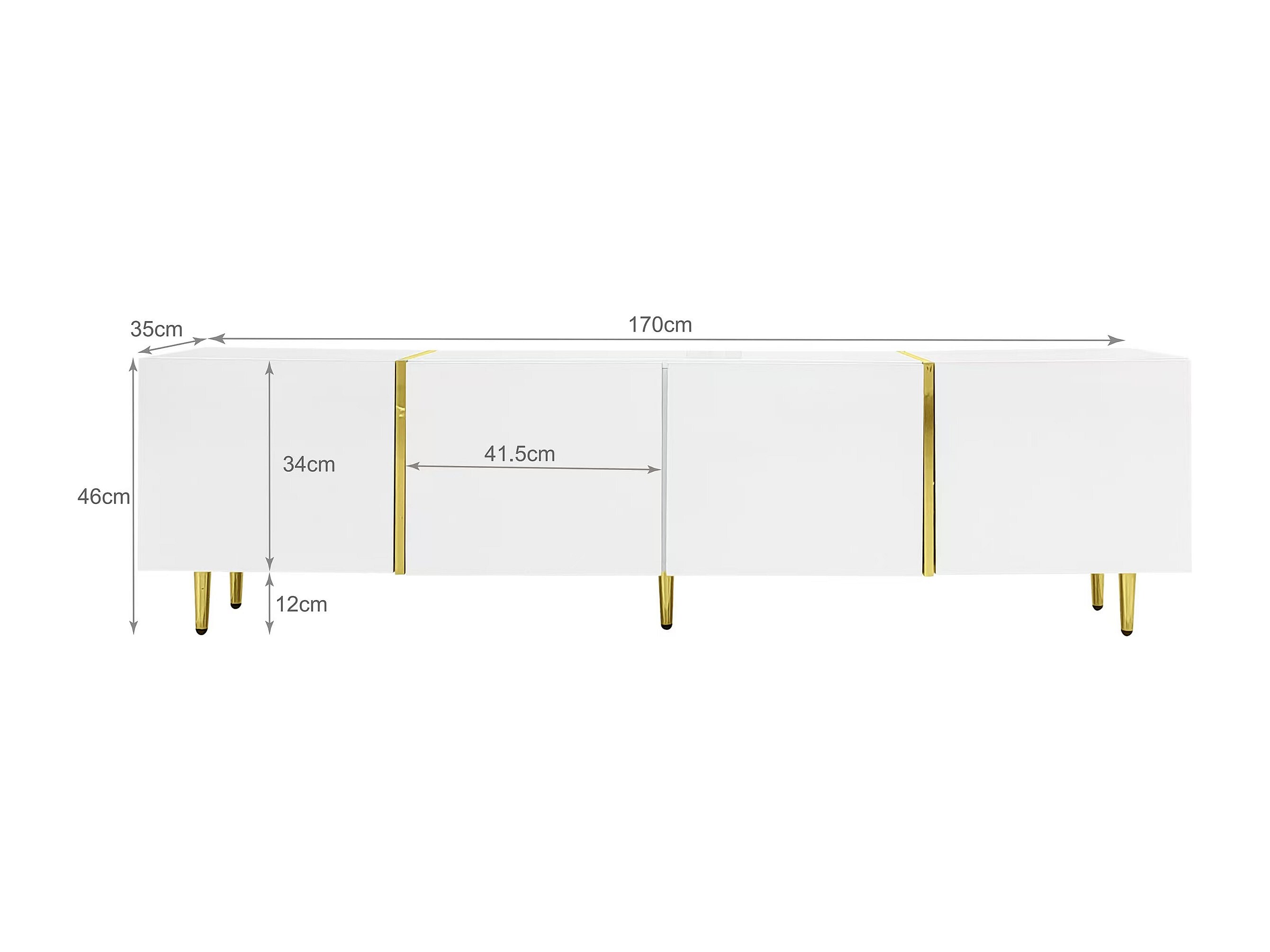 Mueble de TV blanco, mueble de TV con 4 puertas, mueble de TV para salón con líneas doradas, 170 x 35 x 46 cm