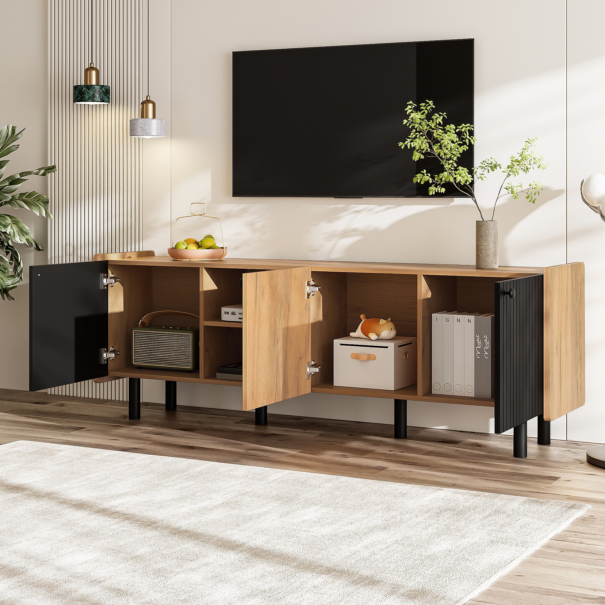 Mueble de TV moderno de madera de 165 cm con almacenamiento de lujo en negro y dorado para sala de estar