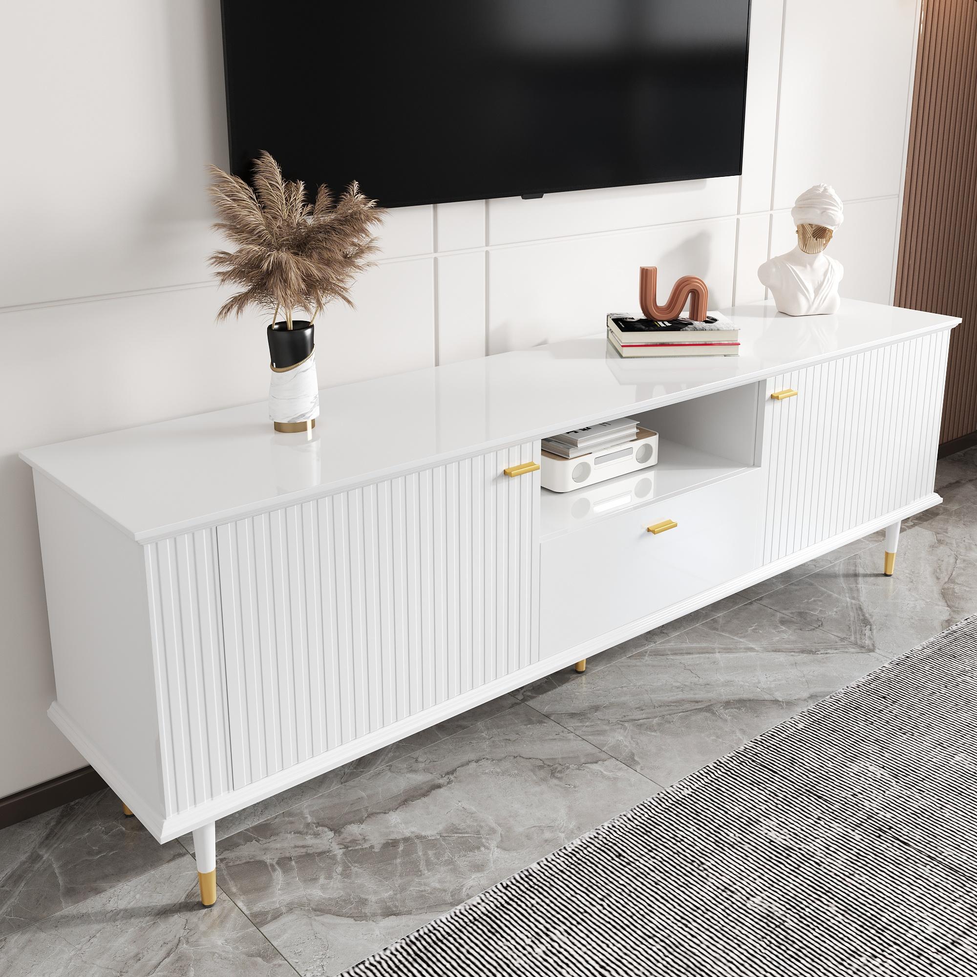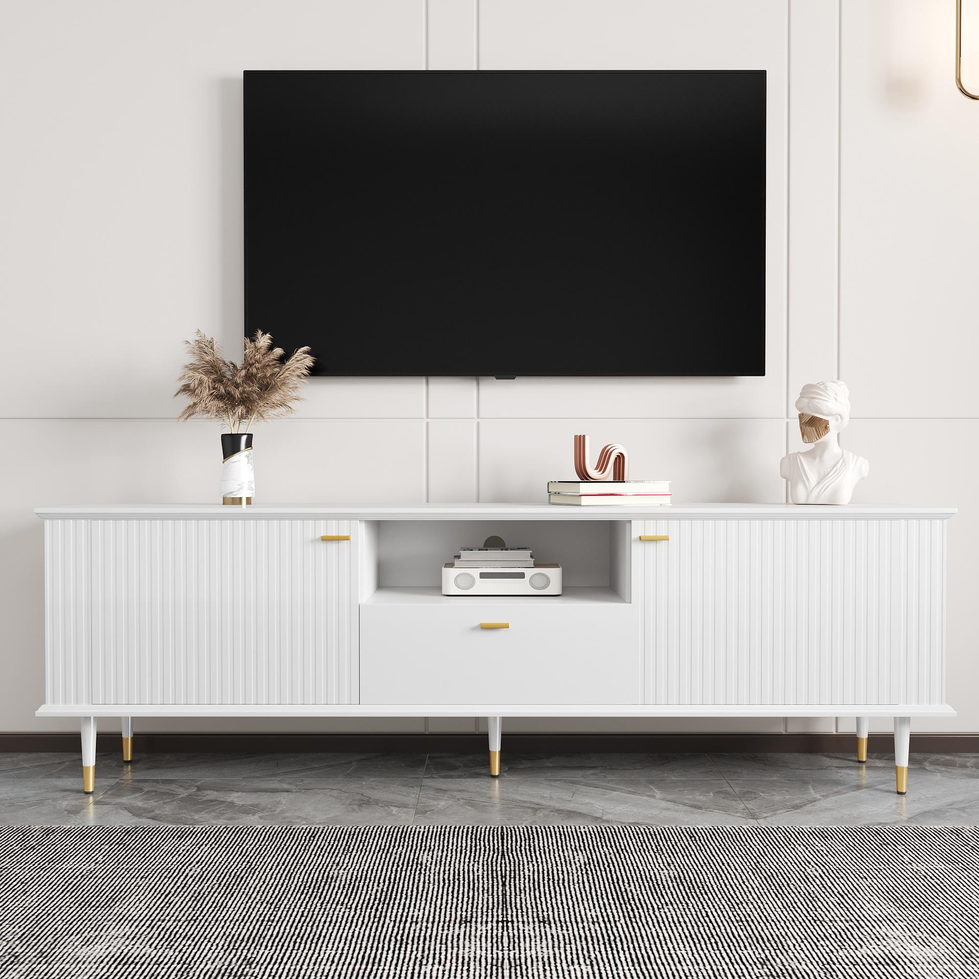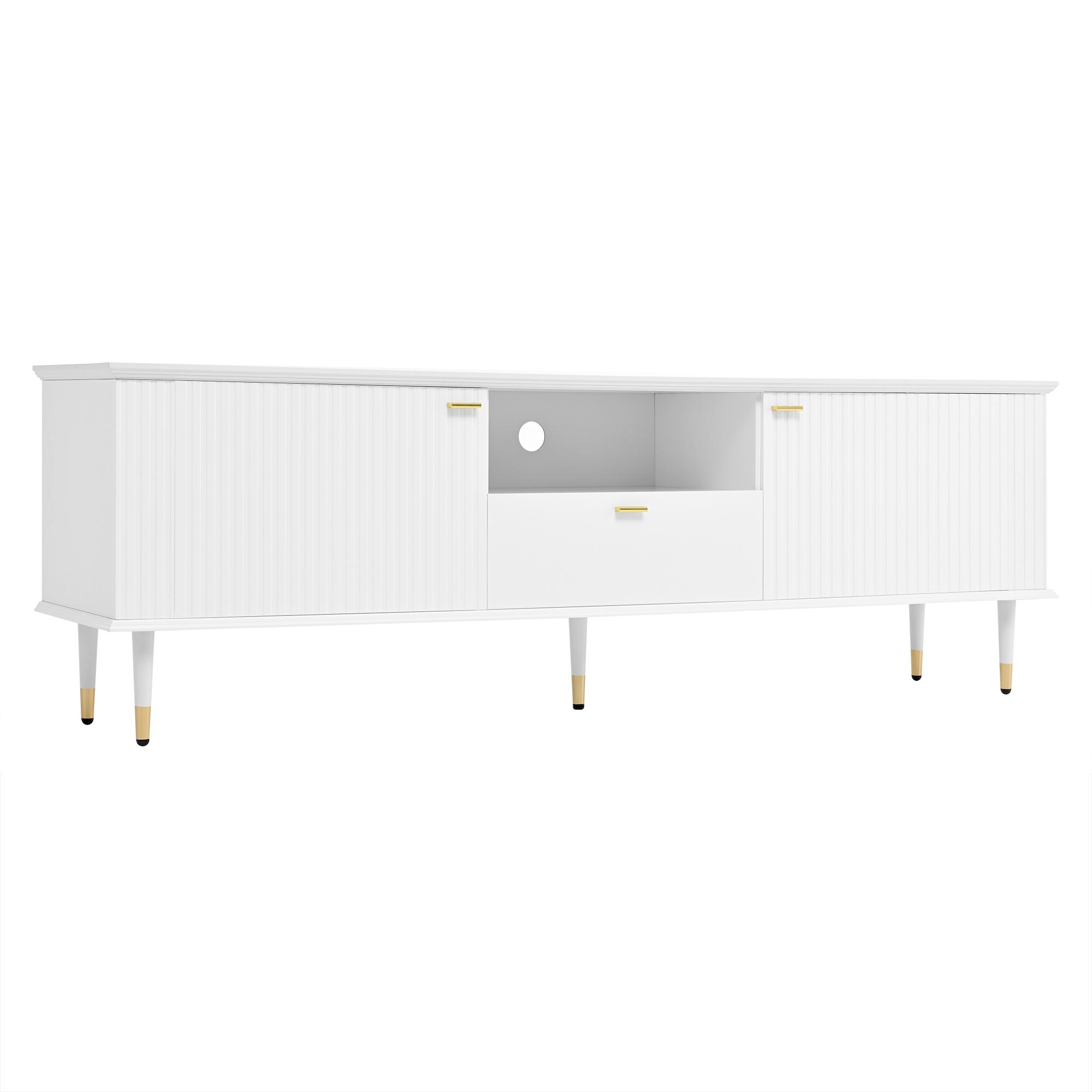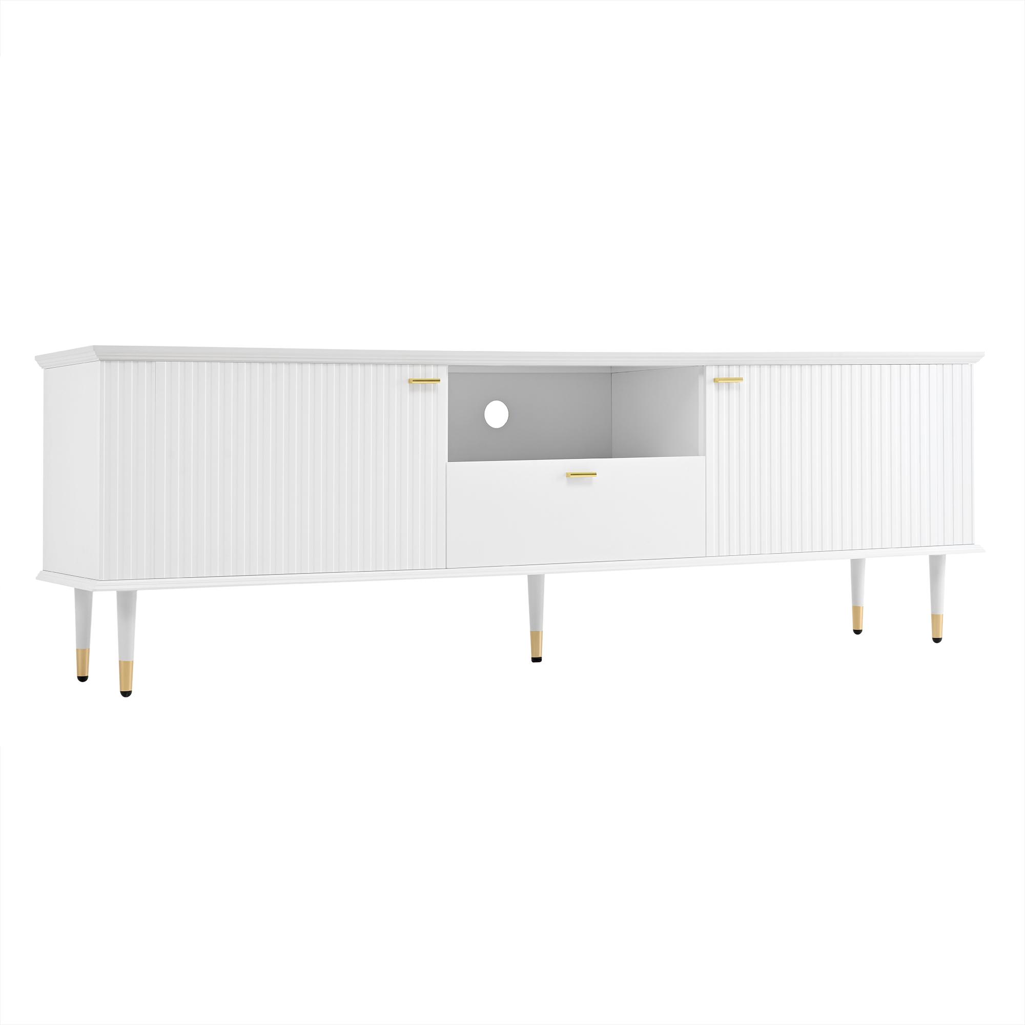 Mueble de TV con 2 puertas, 1 cajón, MDF, blanco, diseño moderno con patas doradas (170x36x54,5 cm)
