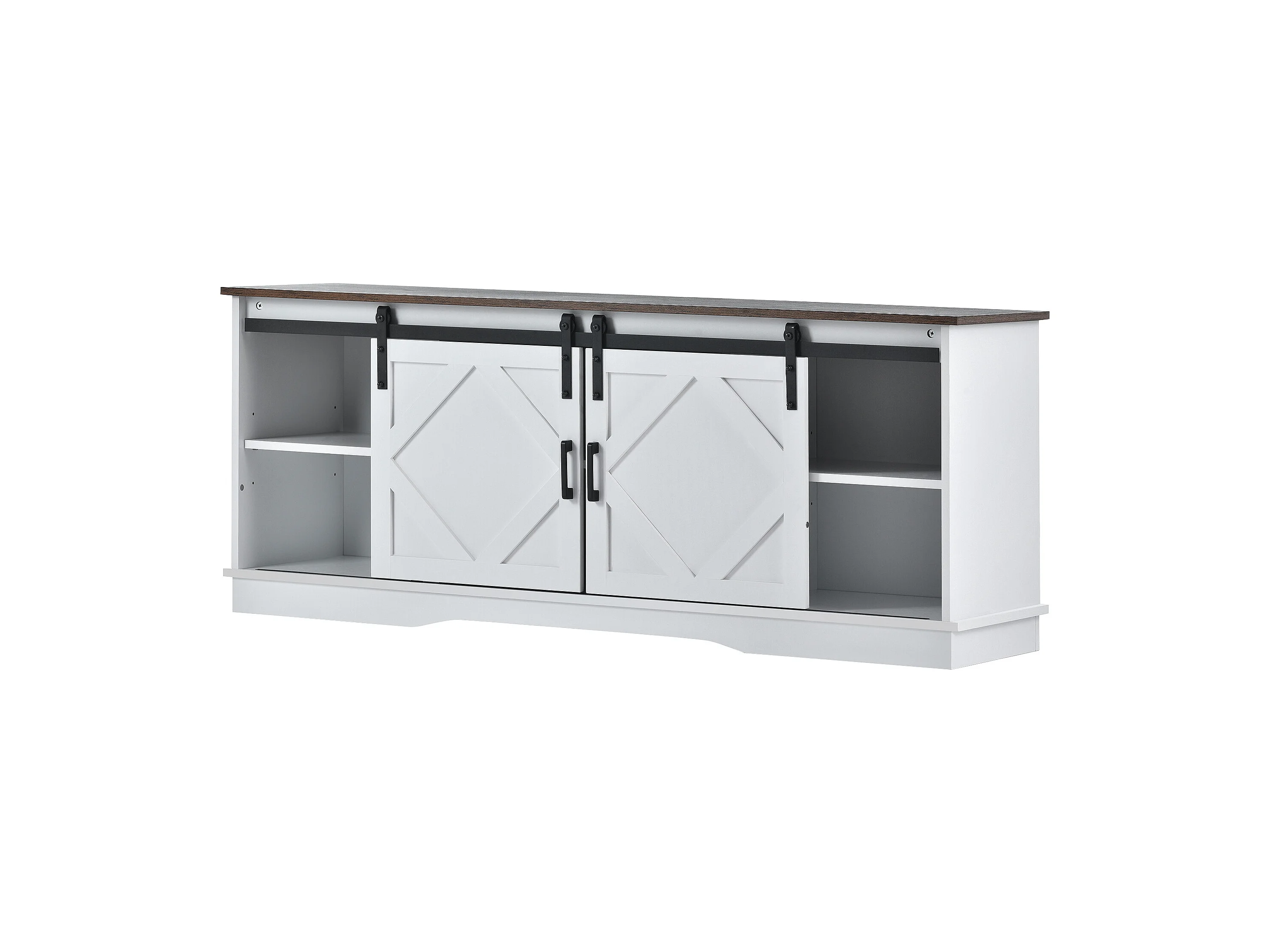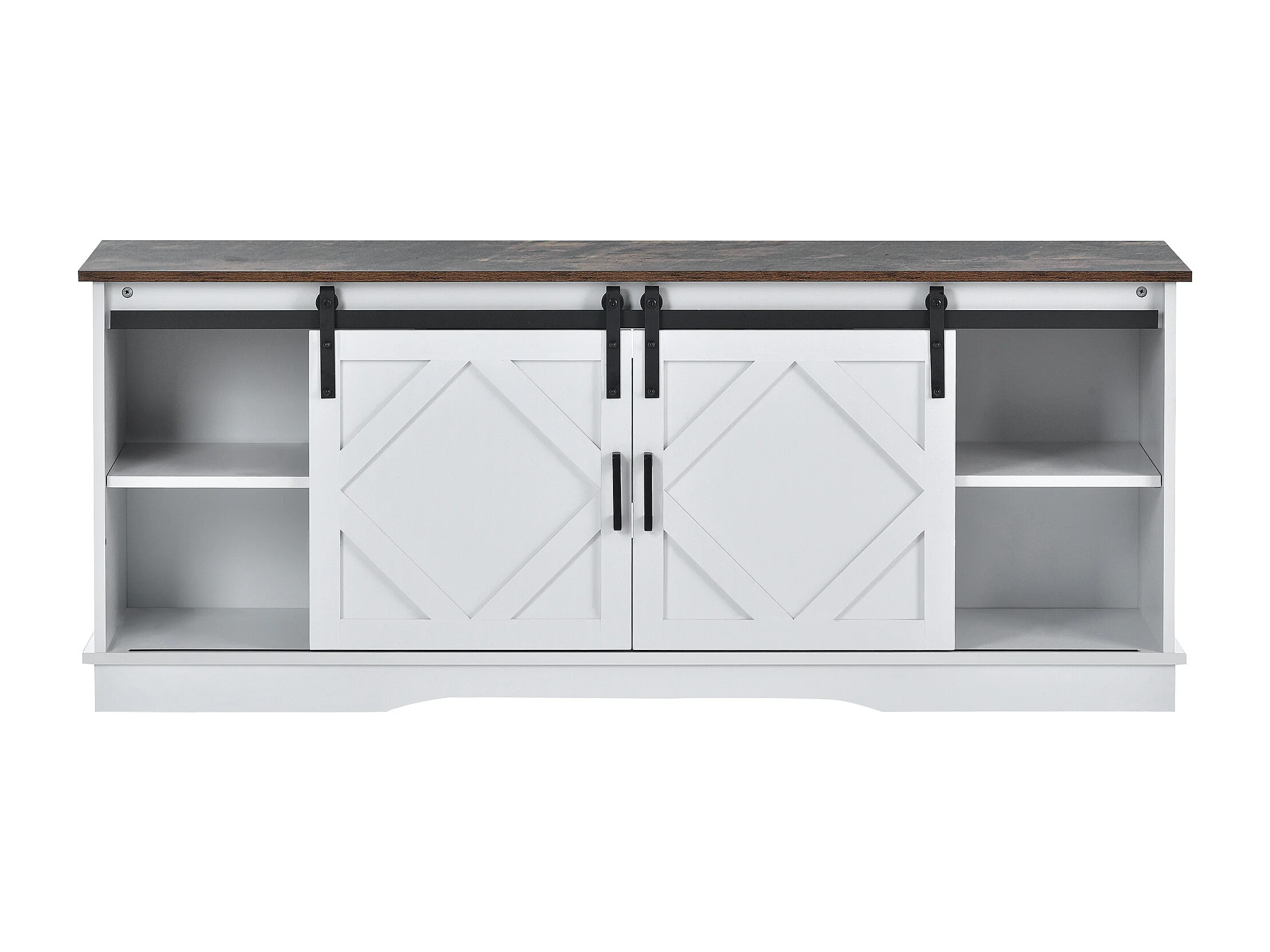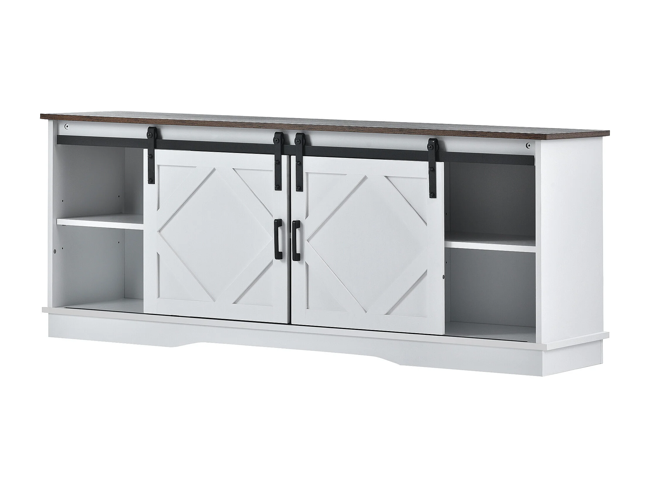 Mueble de TV moderno - Mueble de TV blanco con 2 puertas corredizas y estantes ajustables - Para sala de estar y comedor
