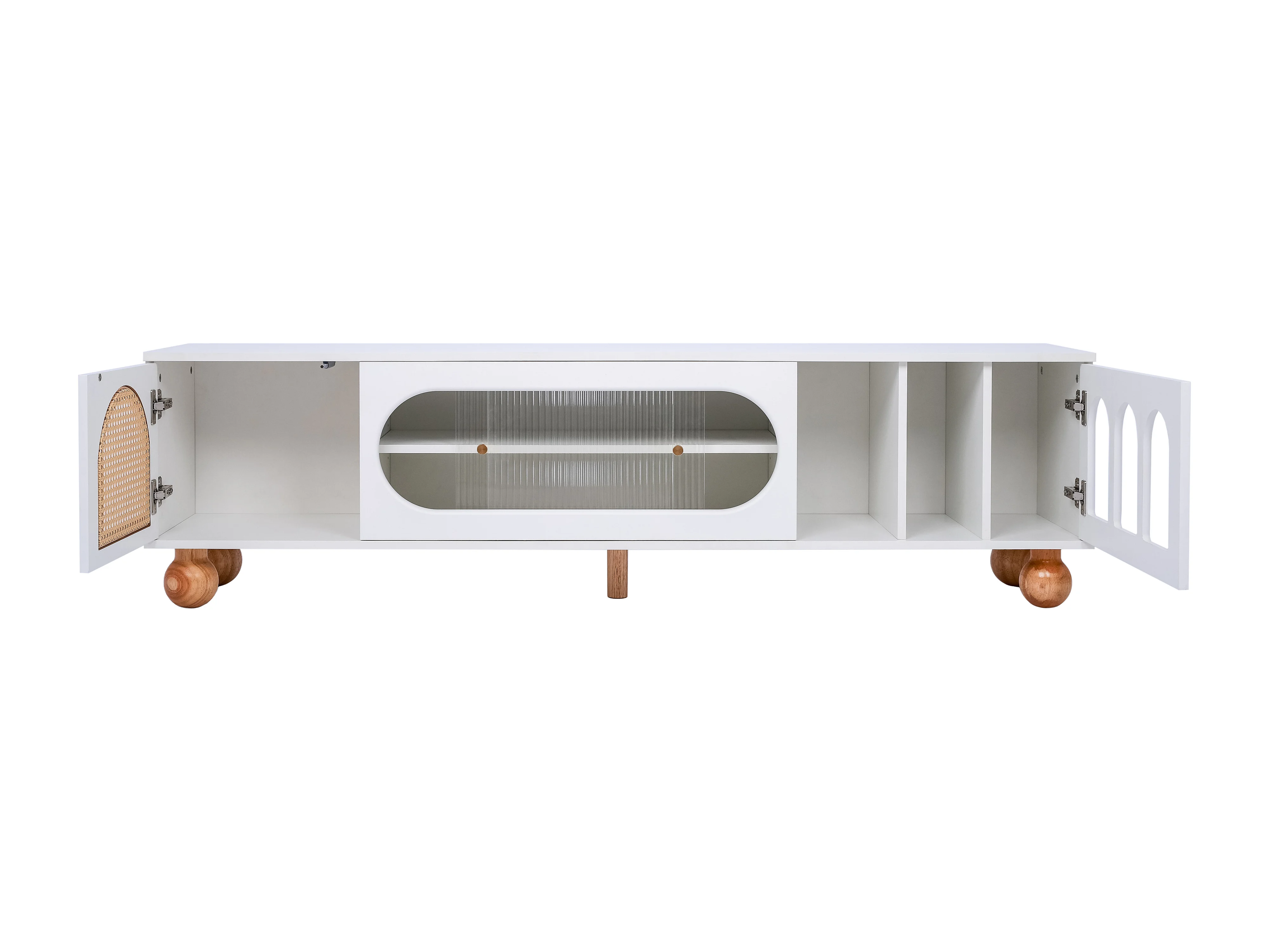 Mueble de TV con 4 puertas, puerta de rejilla, blanco