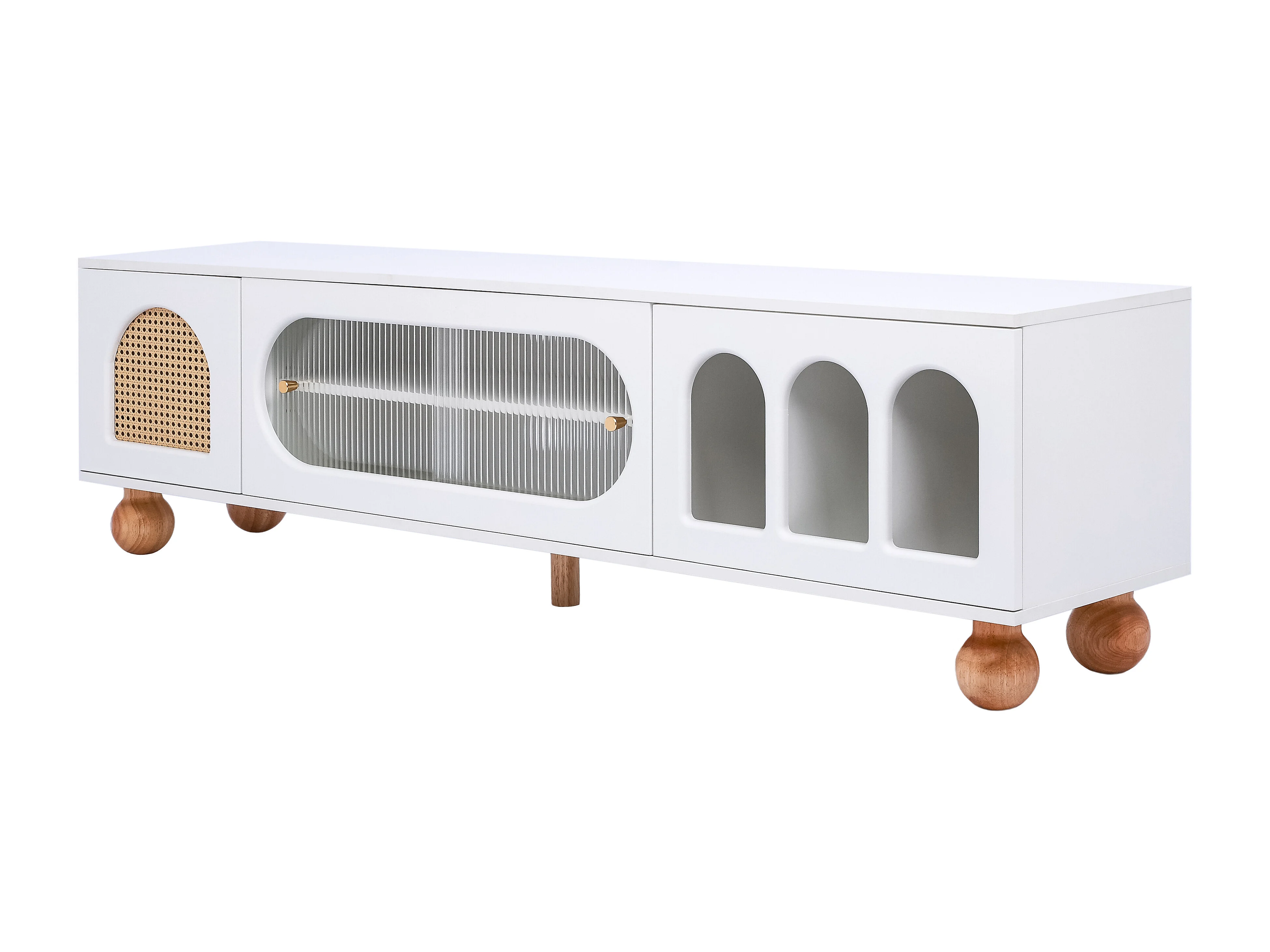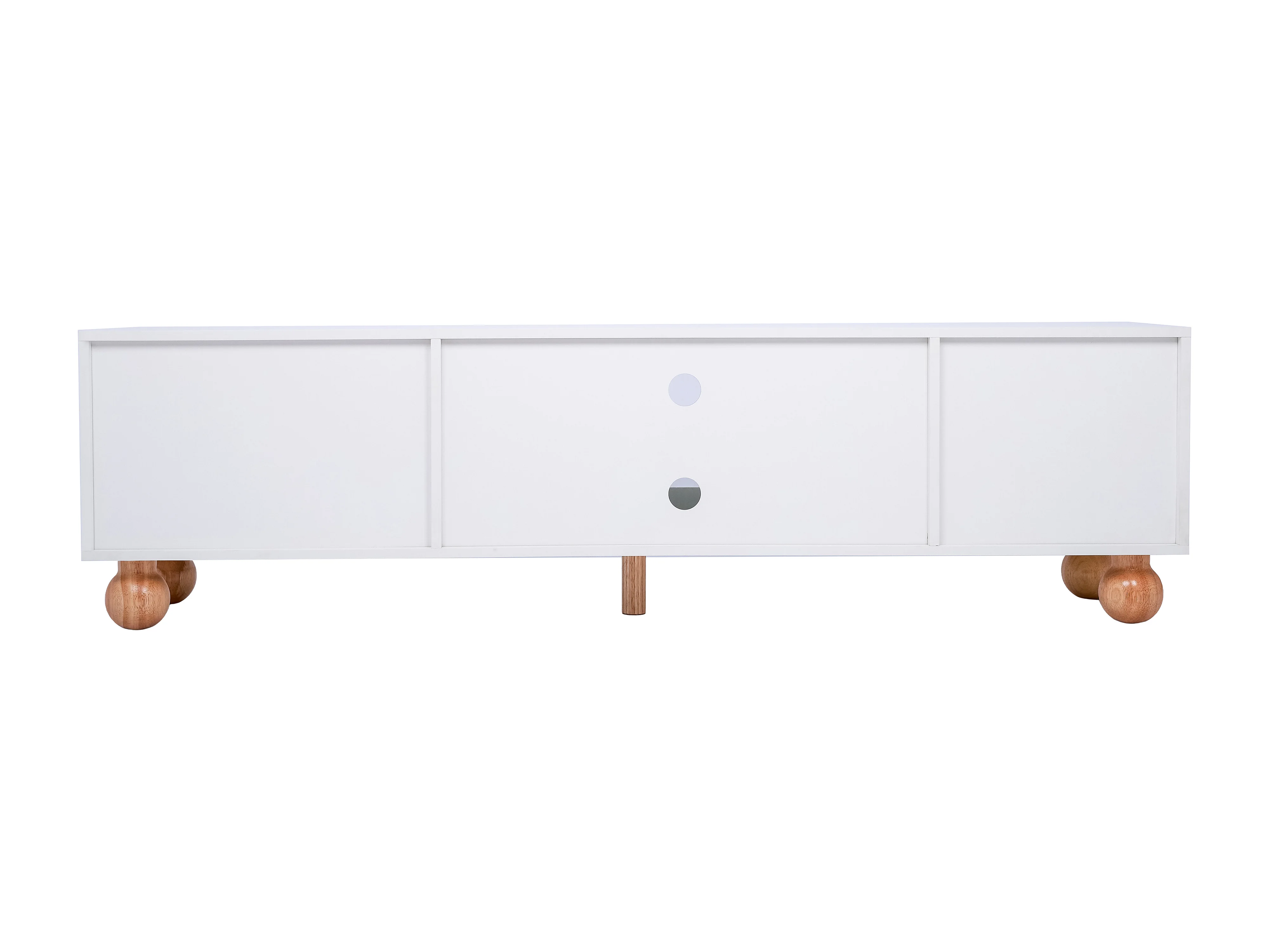 Mueble de TV con 2 puertas - Patas redondas de madera - Blanco
