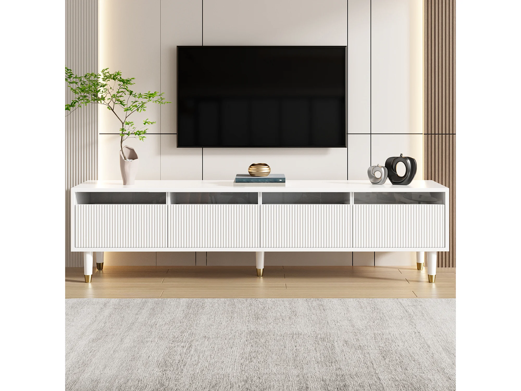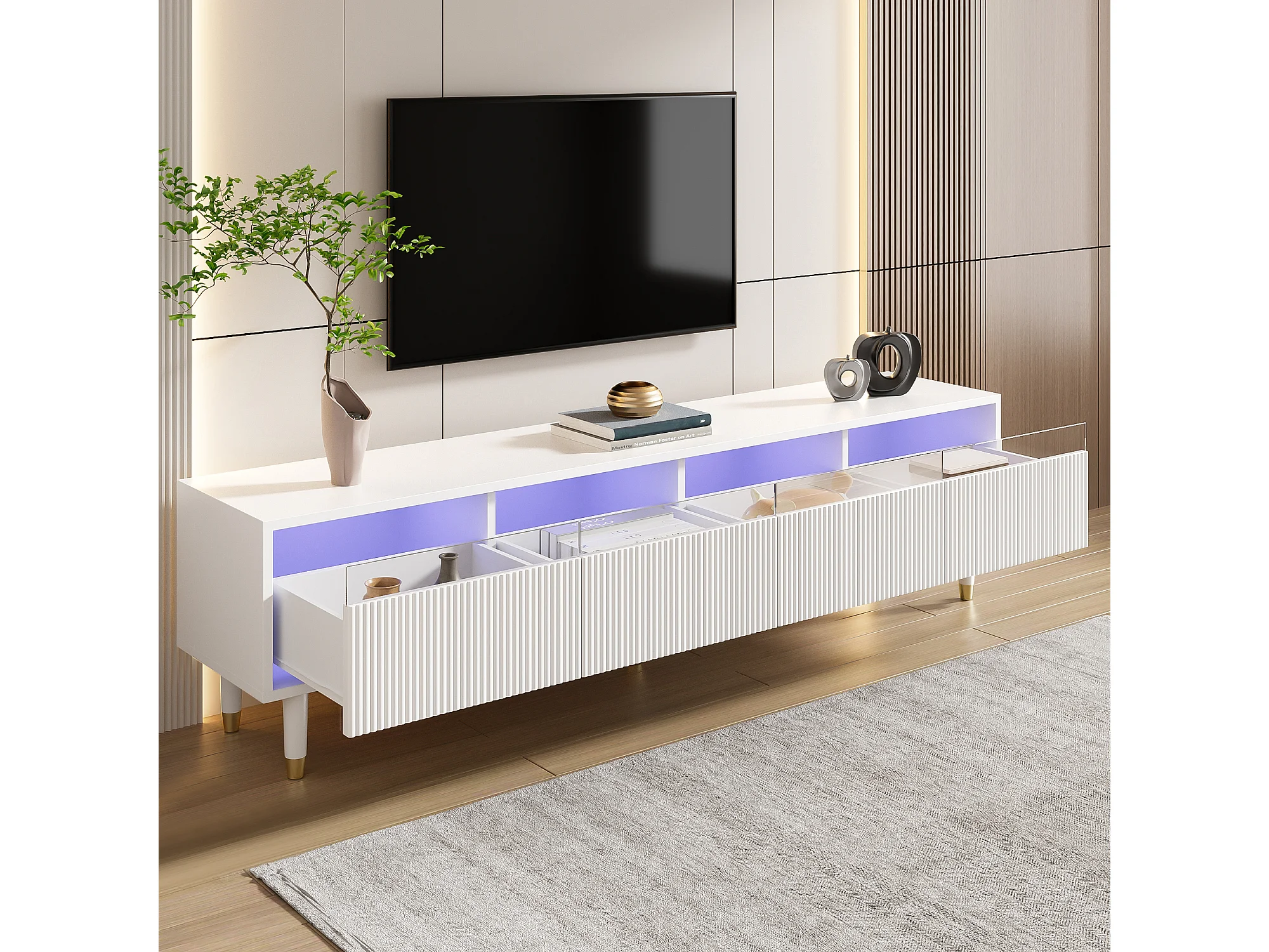 Mueble de TV blanco de 178 cm con iluminación LED y 4 cajones - para salón y oficina