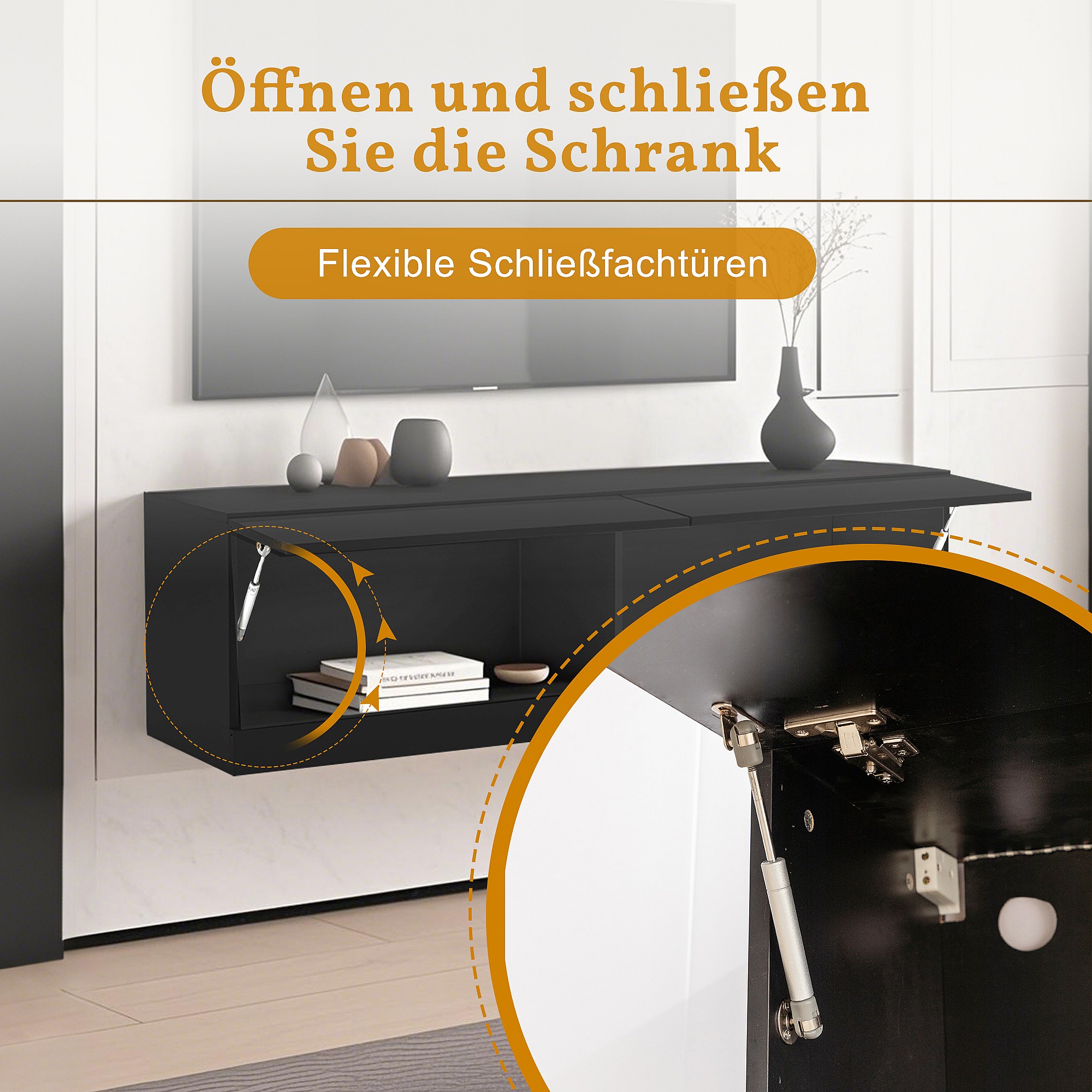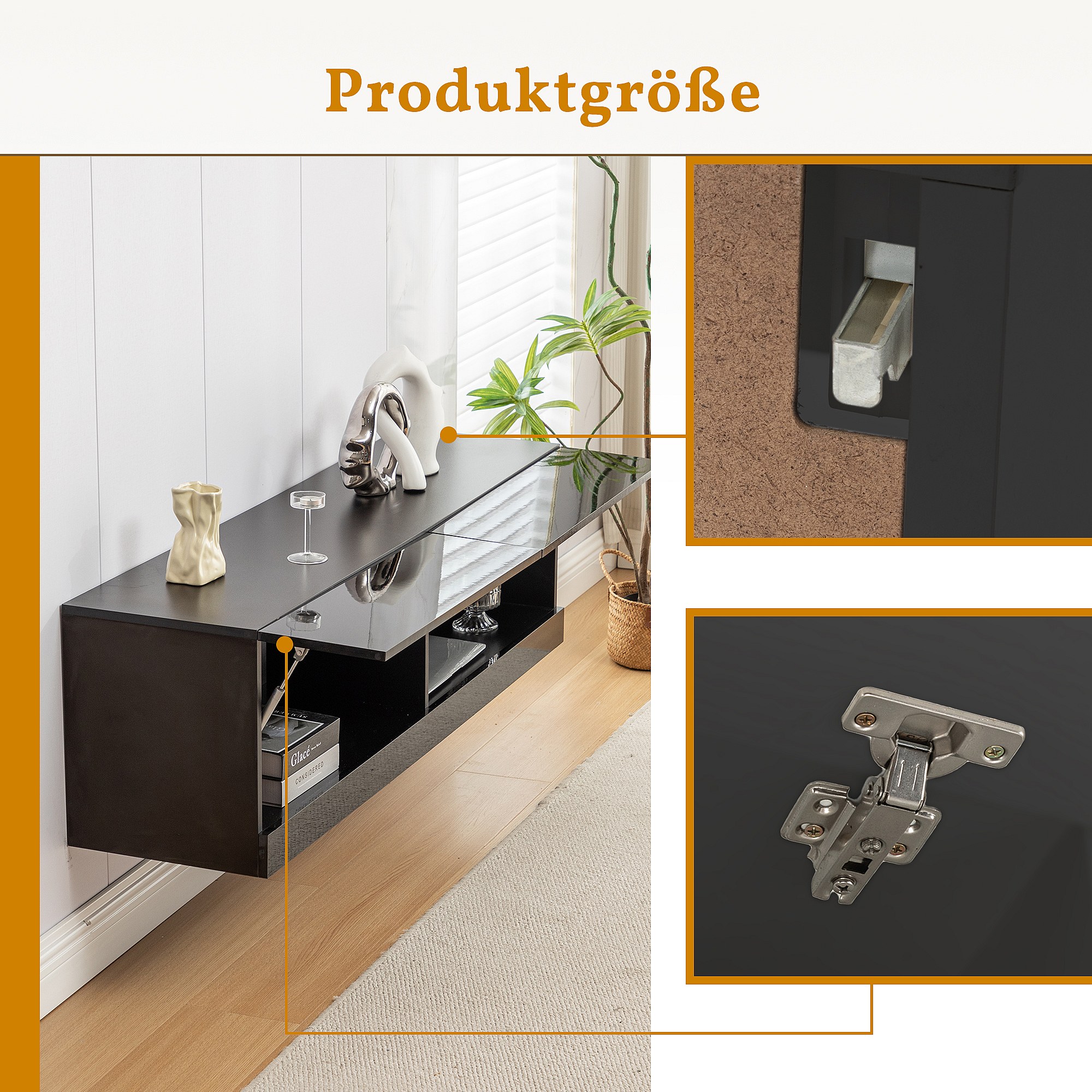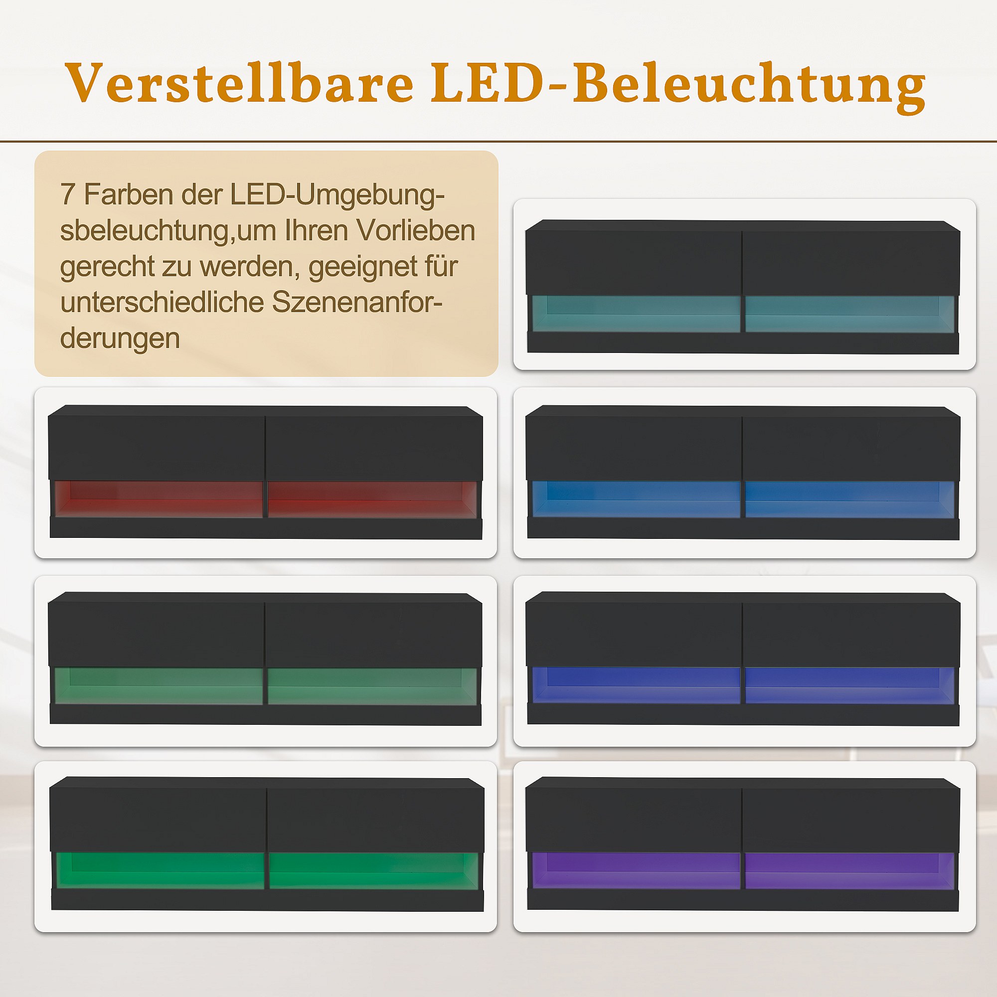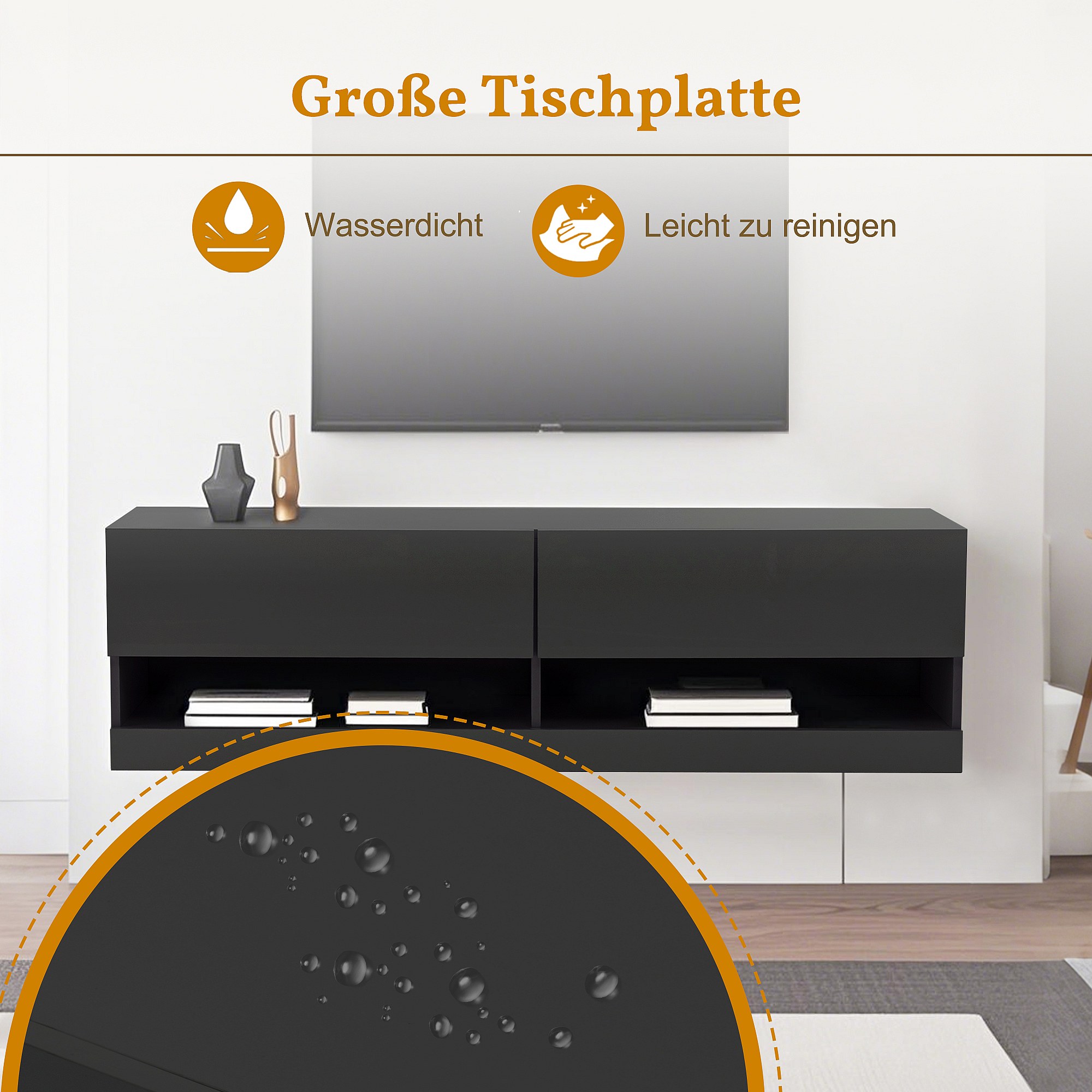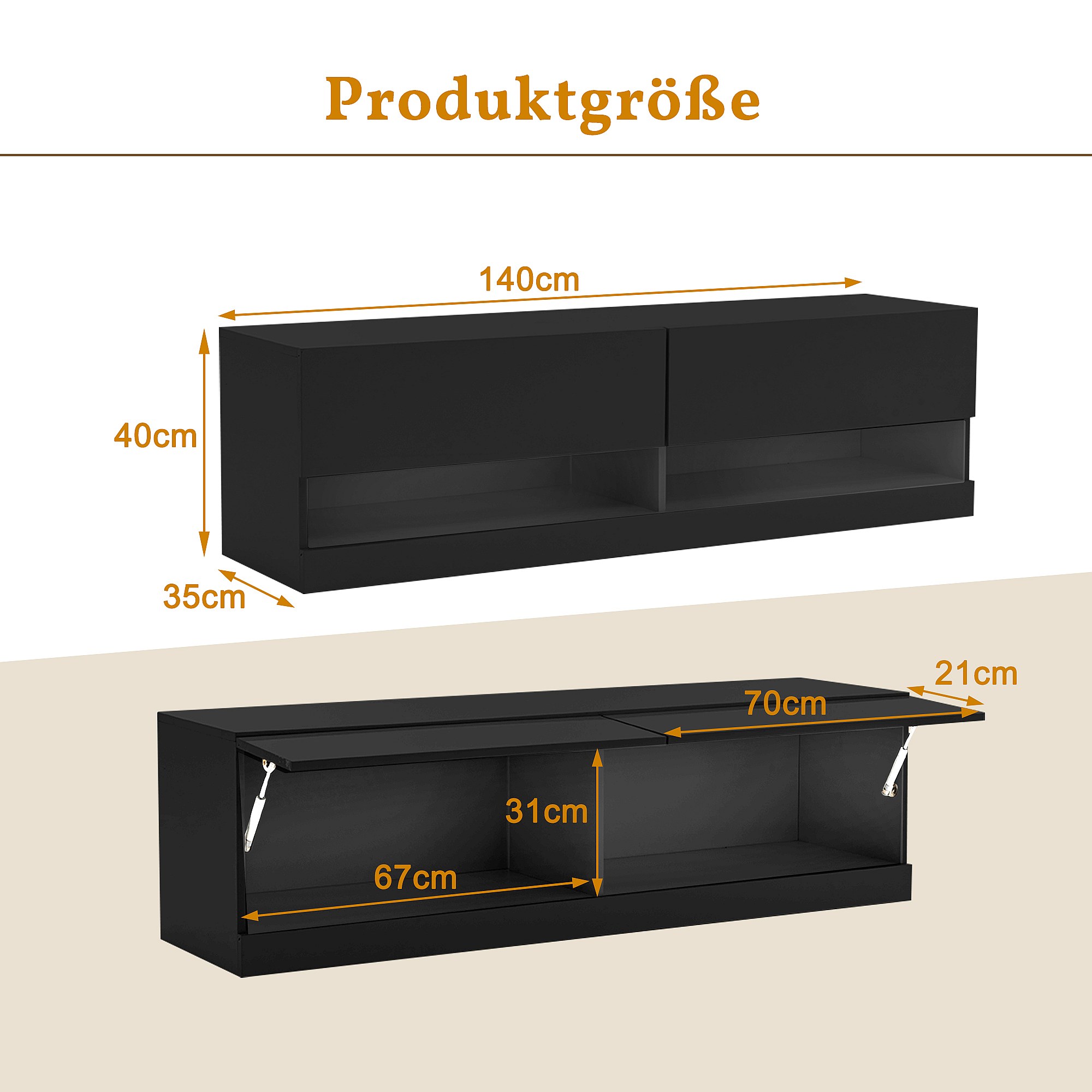 Mueble de TV con iluminación, 7 colores regulables, mueble de TV colgante, negro, 140 x 35 x 40 cm