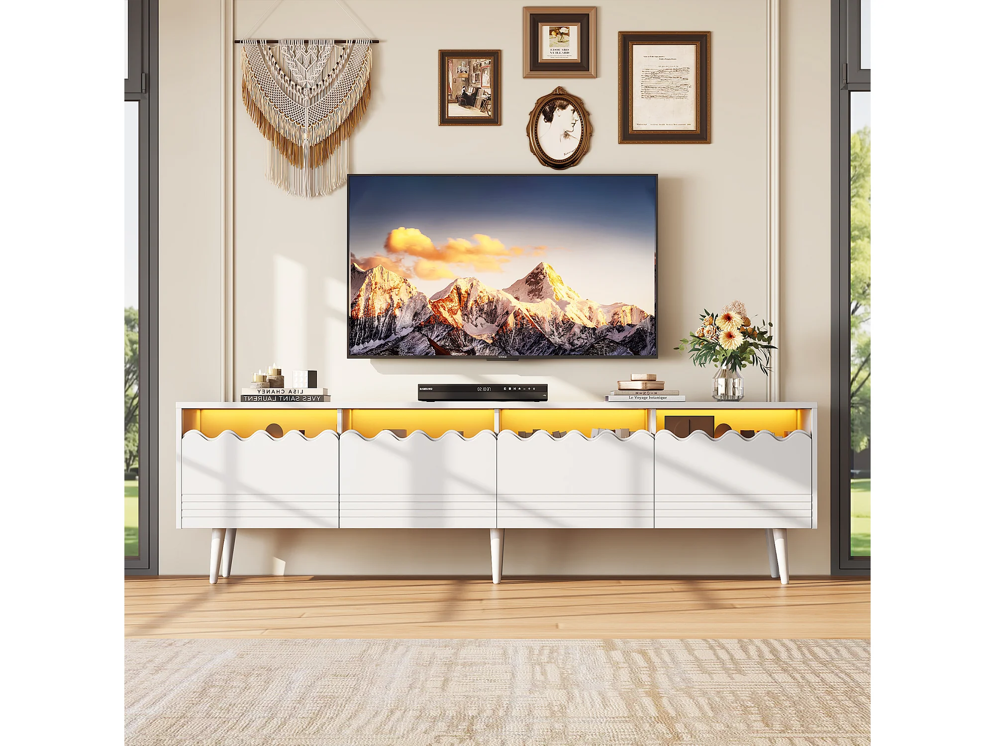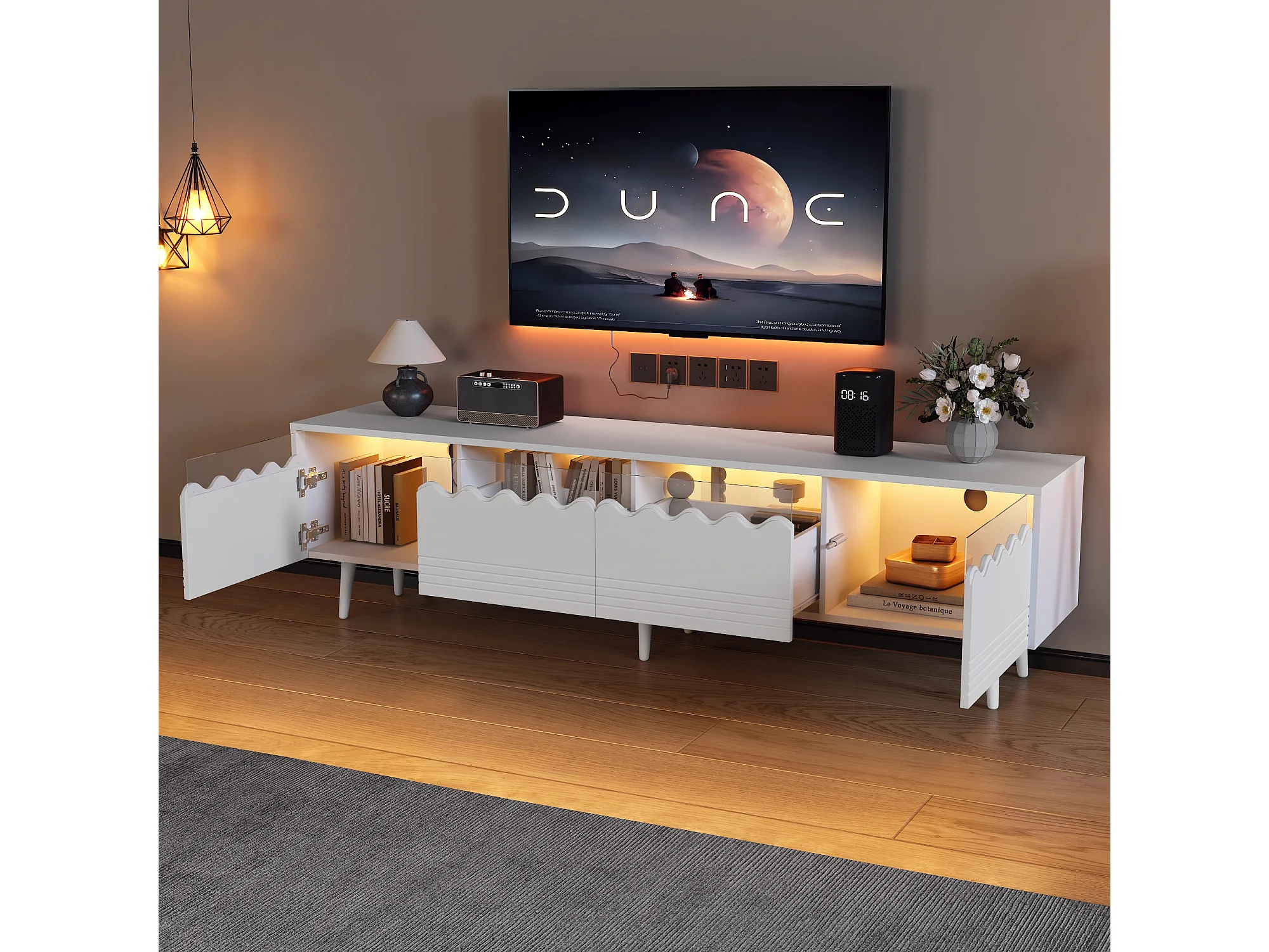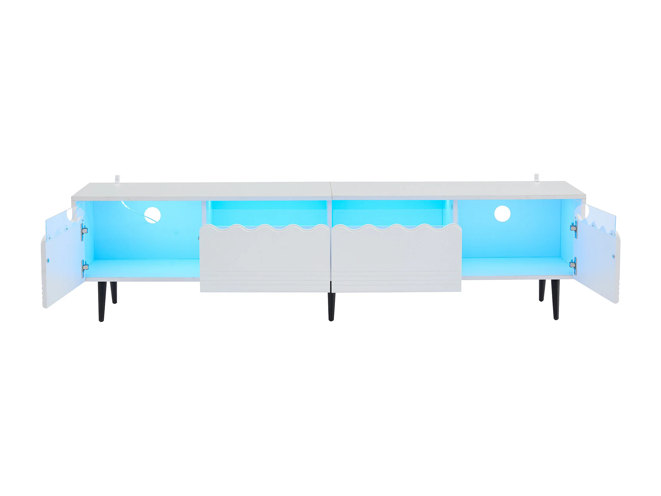 Mueble de TV moderno y brillante de 178 cm con iluminación LED, mueble de TV con espacio de almacenamiento, blanco
