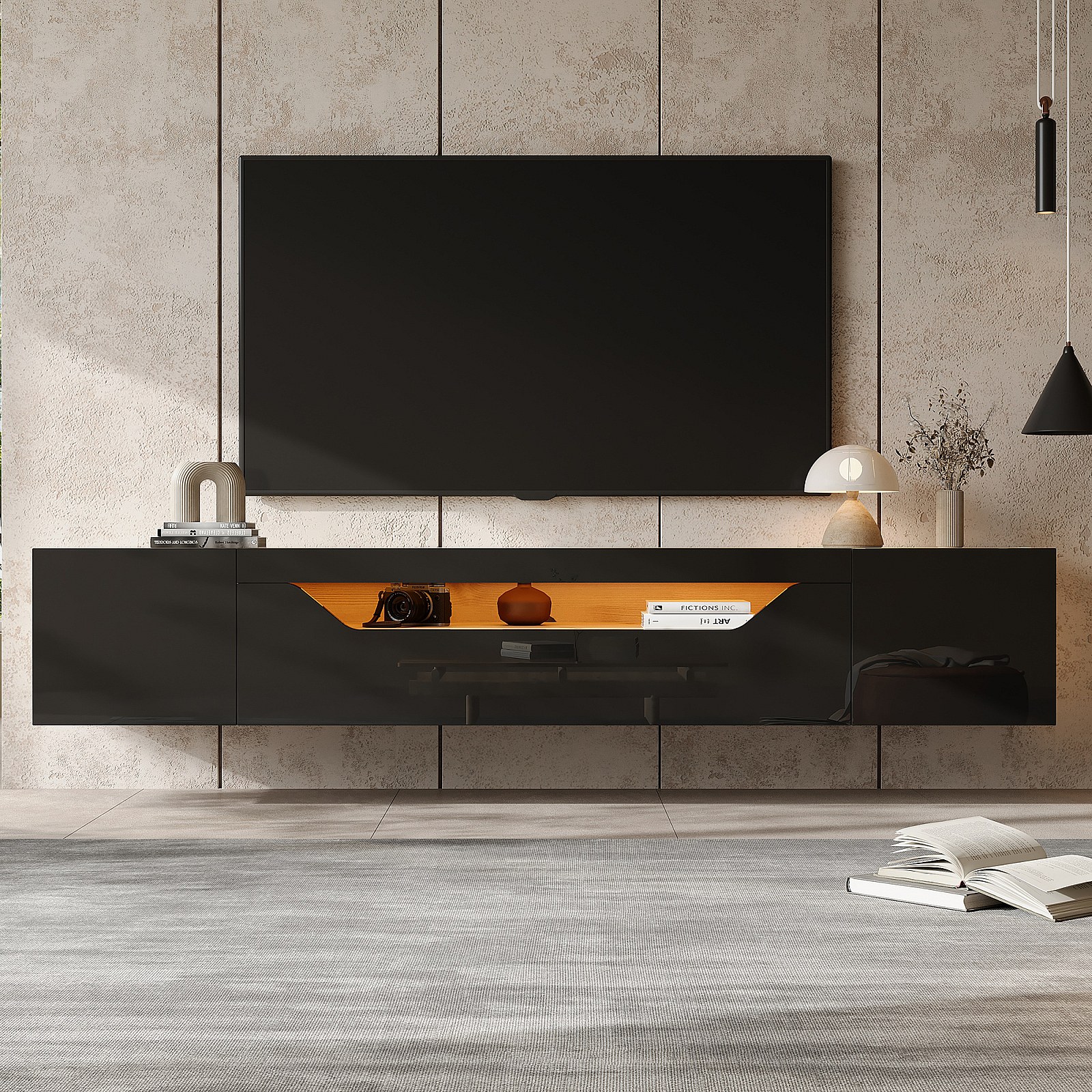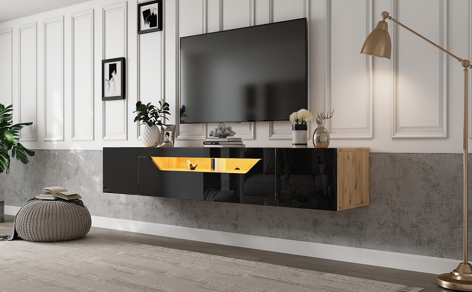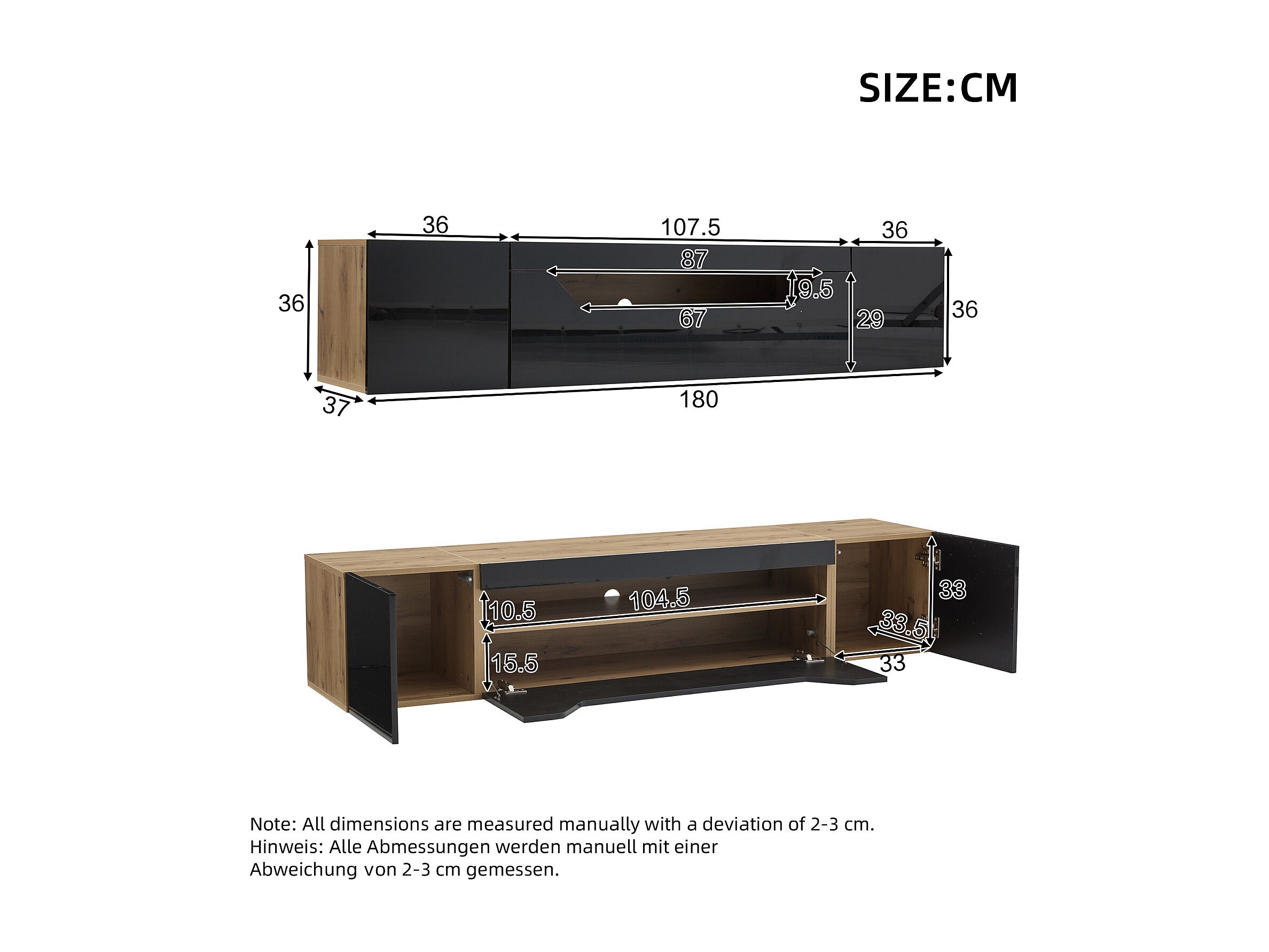Mueble de TV con LED - Con puerta plegable - Estante de pared de 180 cm - Para salón, comedor, color negro
