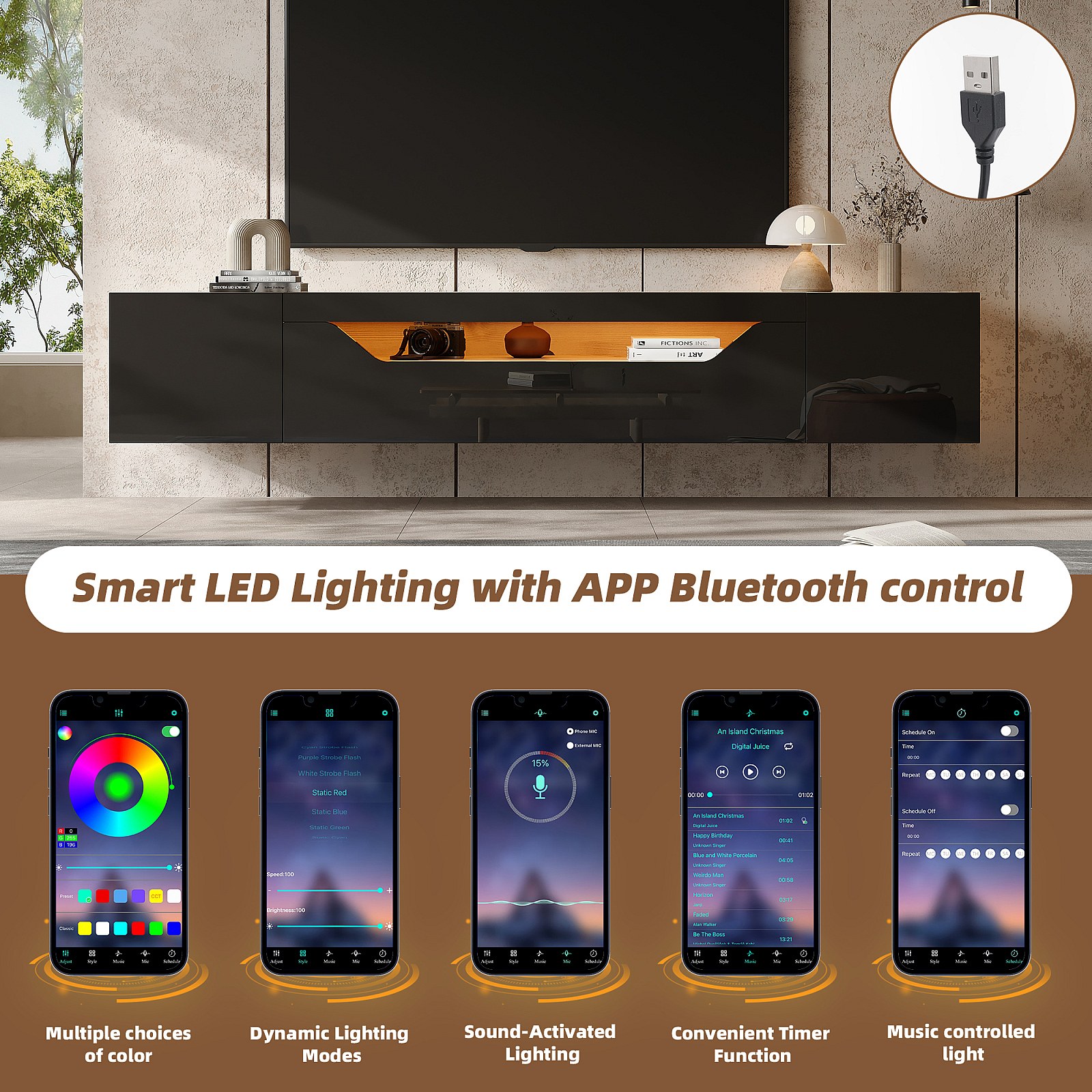 Mueble de TV con iluminación, 7 colores regulables, mueble de TV colgante, negro, 140 x 35 x 40 cm