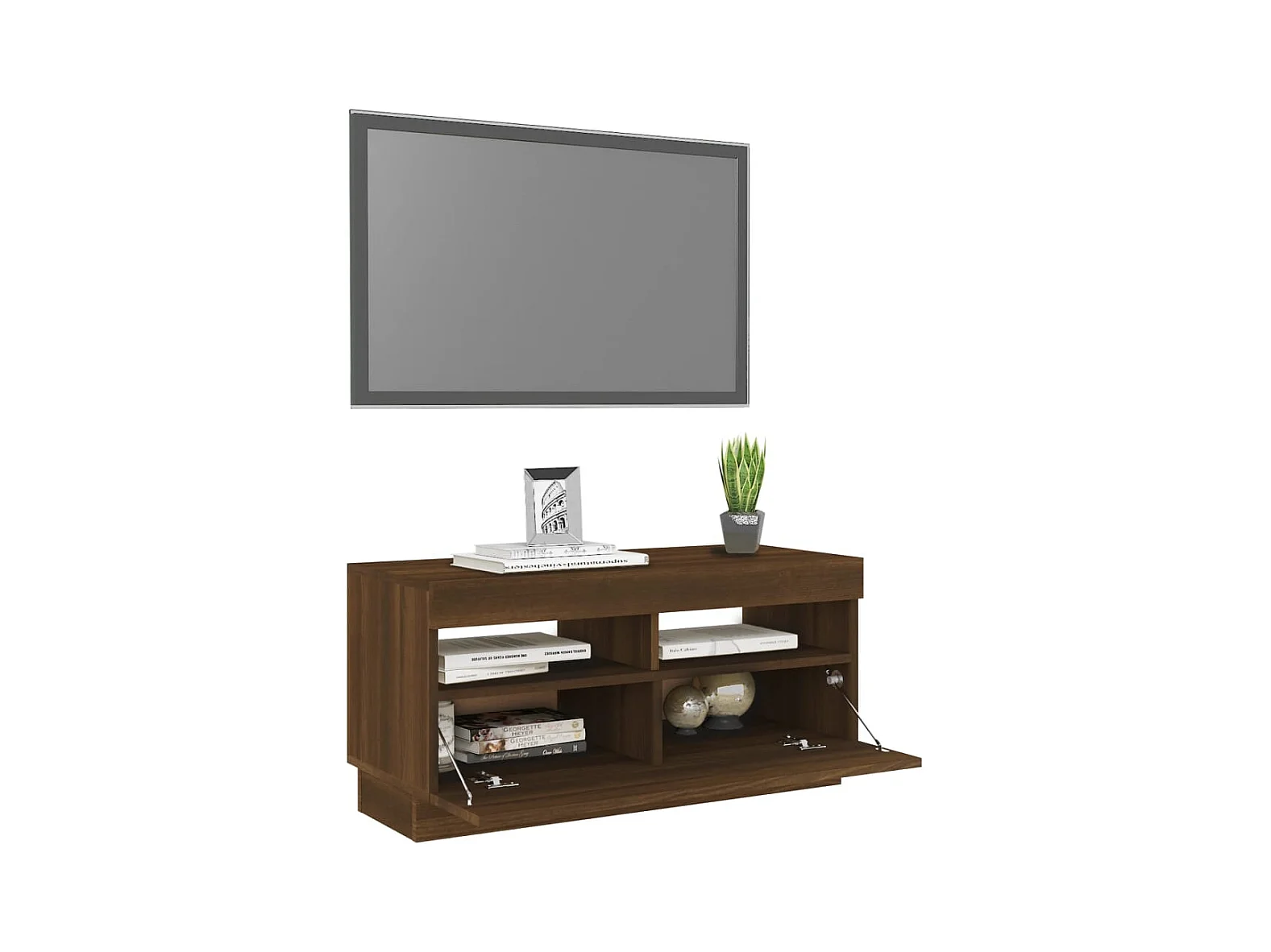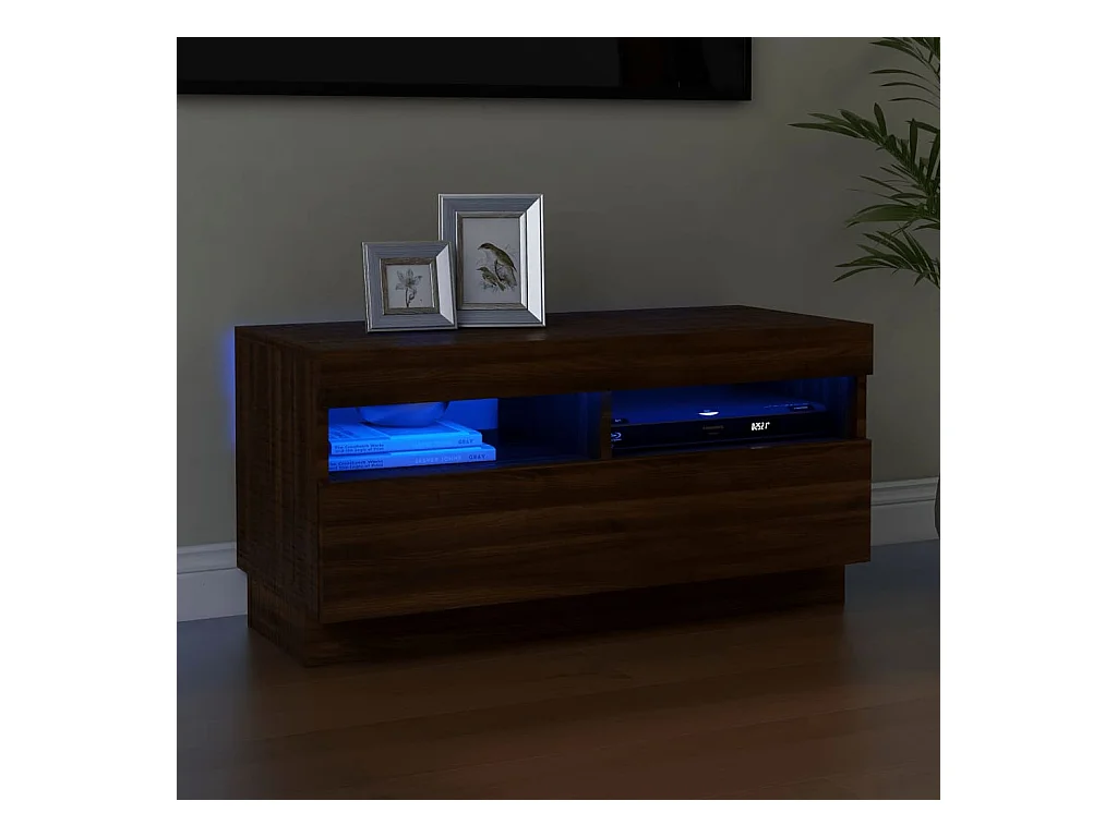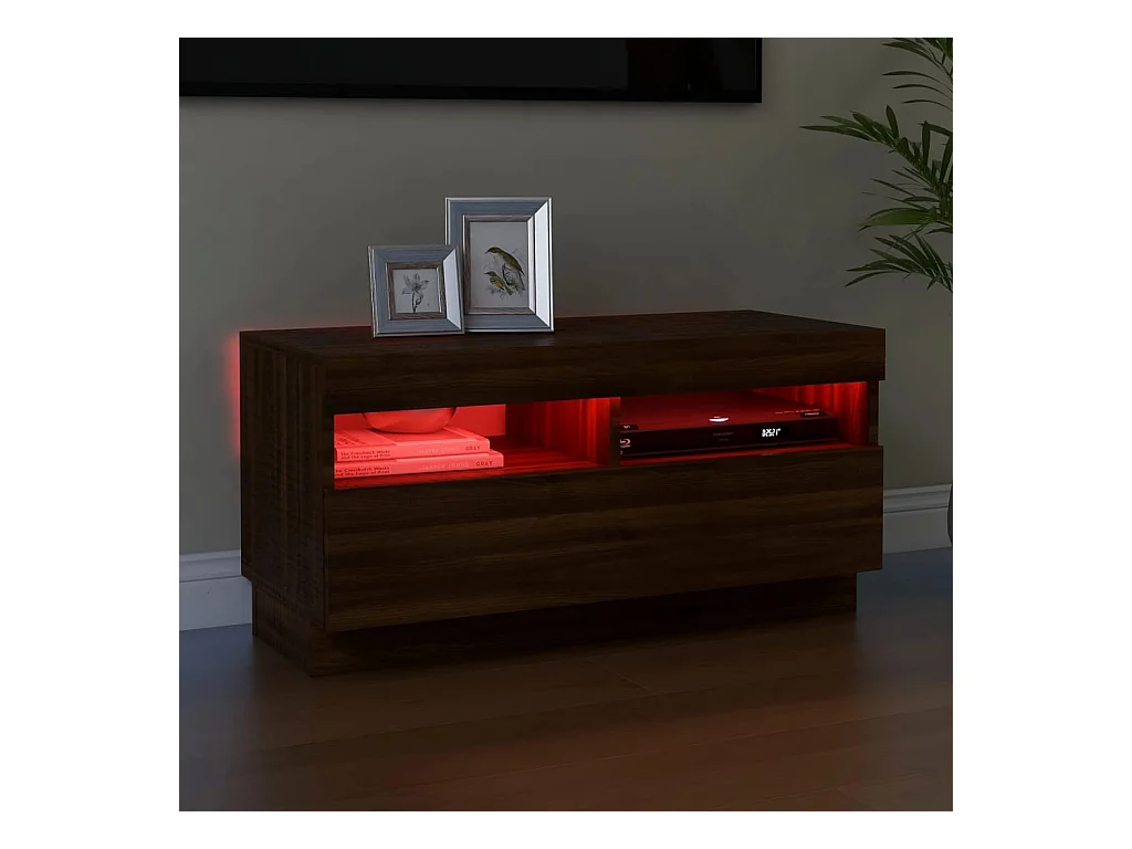 Mueble de TV con luces LED roble marrón 80x35x40 cm