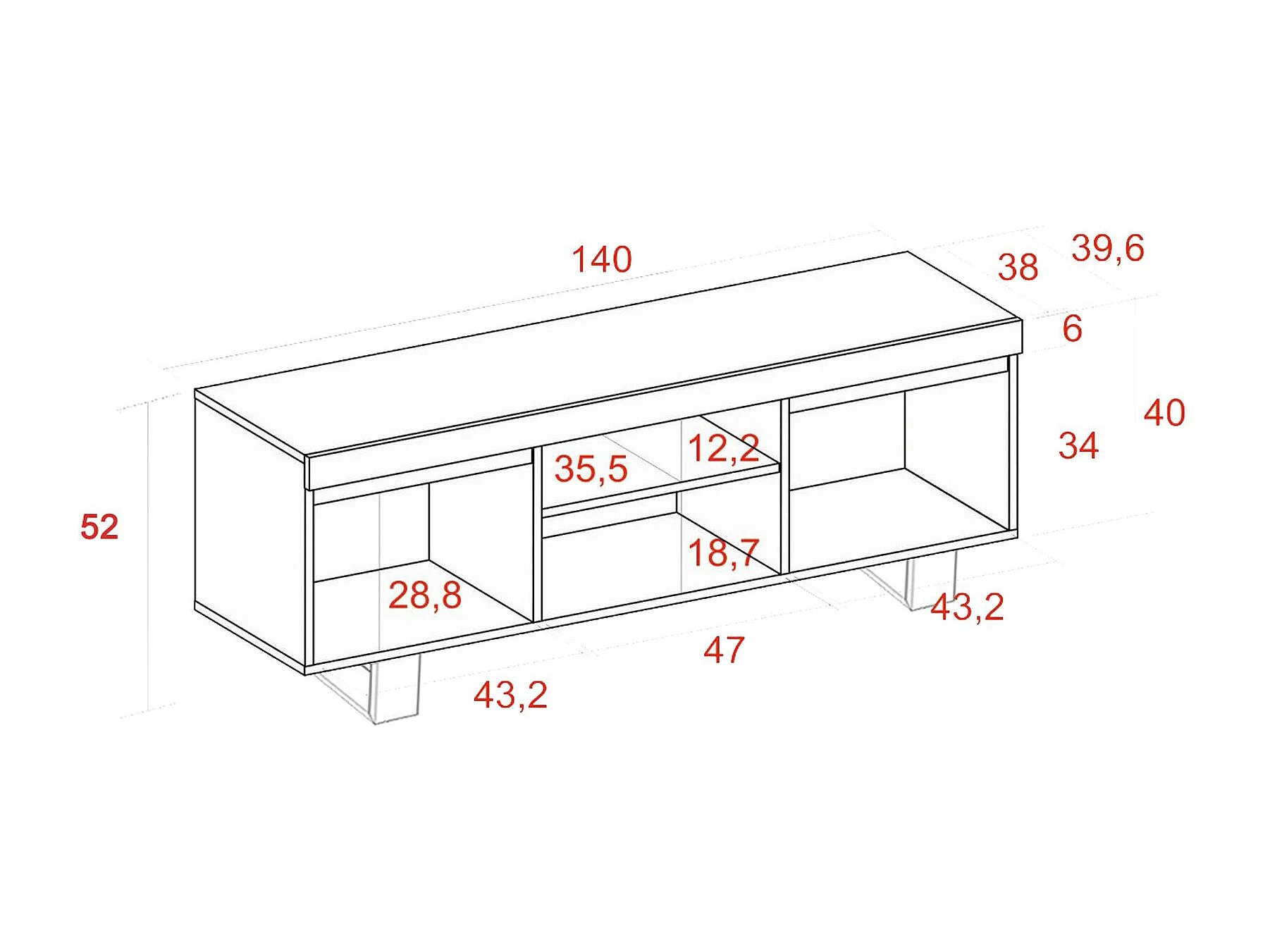 Mueble de TV con patas "Naturale" con patas , Roble/Negro, Nórdico, 140x40x53cm