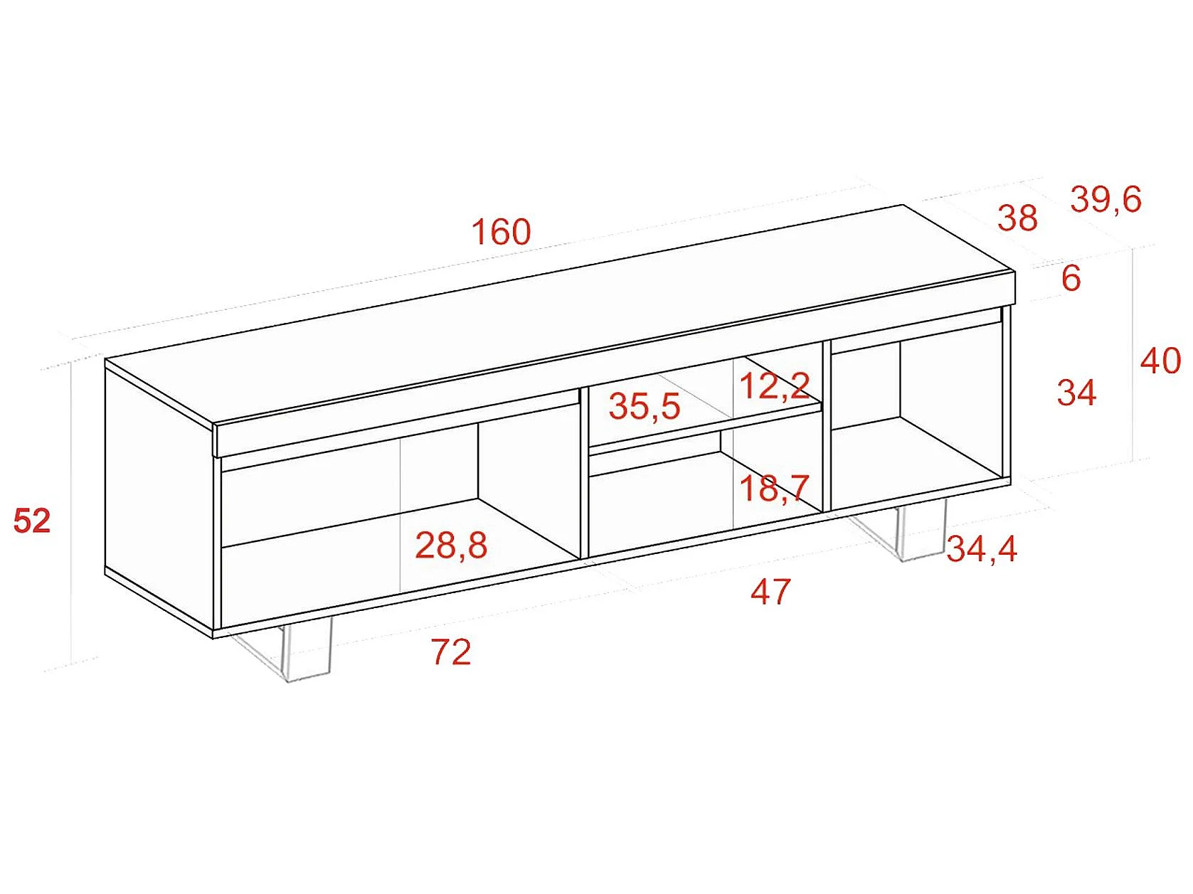 Mueble de TV con patas "Naturale" con patas , Roble/Negro, Nórdico, 160x40x53cm