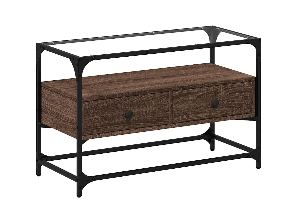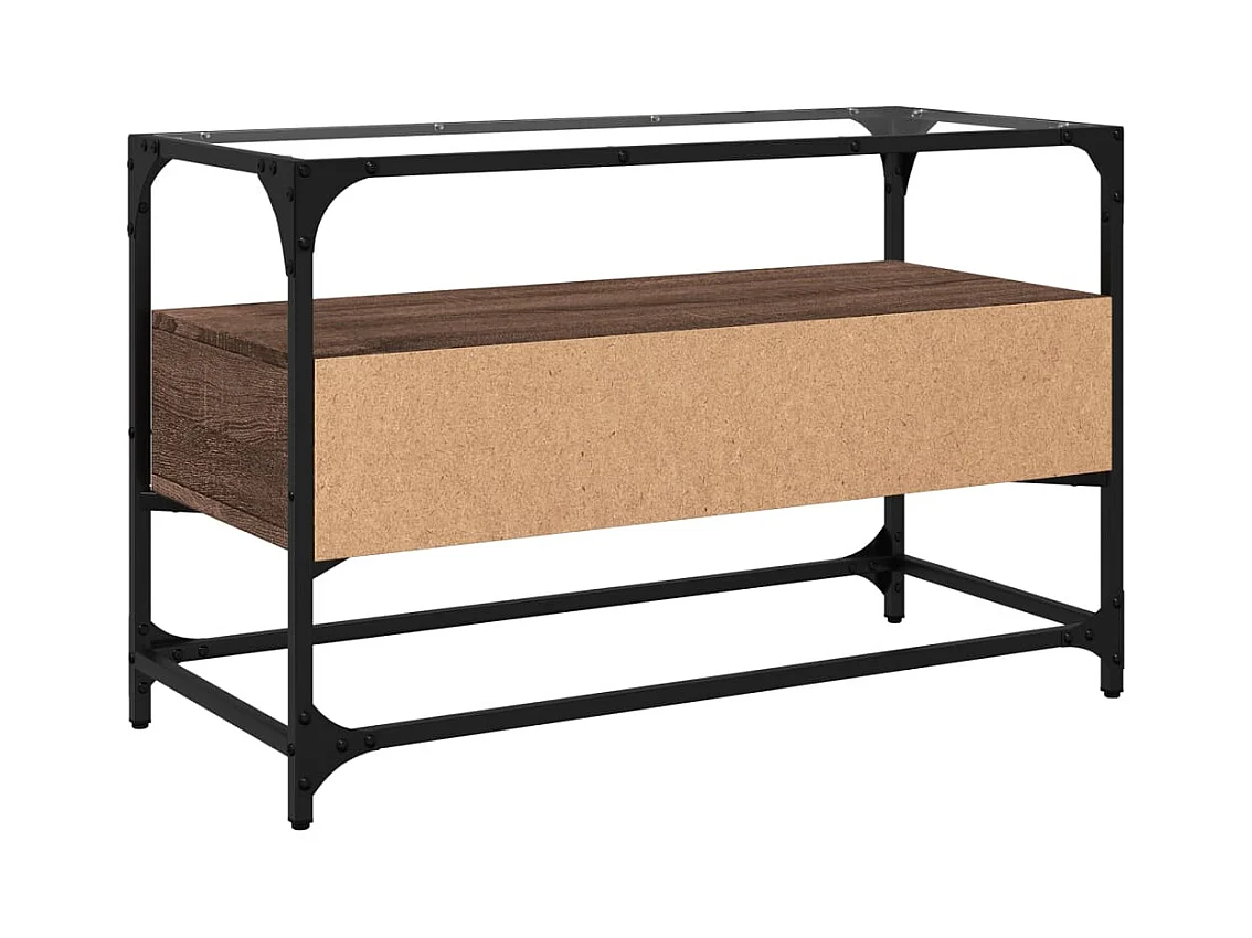 Mueble de TV con tapa de cristal de madera de ingeniería de roble marrón