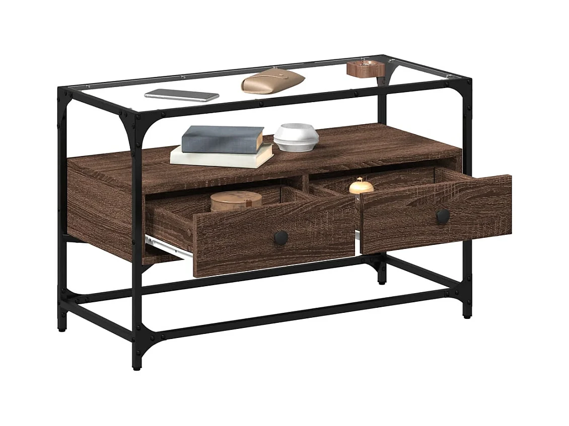 Soporte para TV con cubierta de vidrio de roble Sonoma de madera de ingeniería