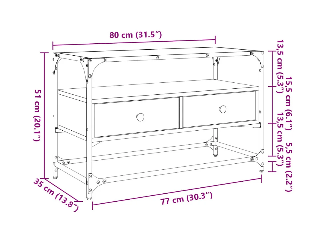 Mueble de TV de roble ahumado 80x35x40 cm madera de ingeniería