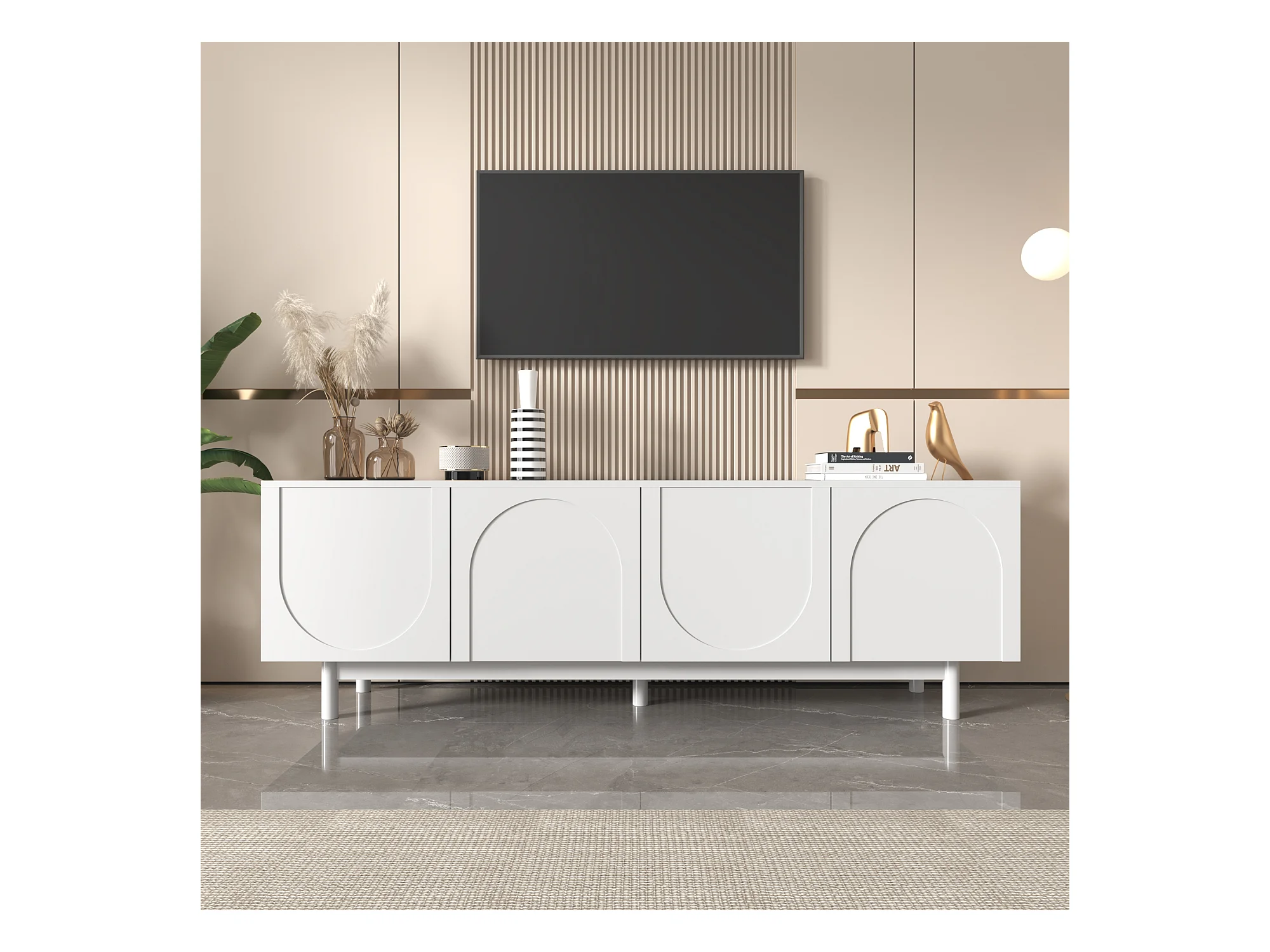 Mueble de TV con 4 puertas, mueble de almacenaje con 5 patas, blanco, 160 x 38 x 55,5 cm