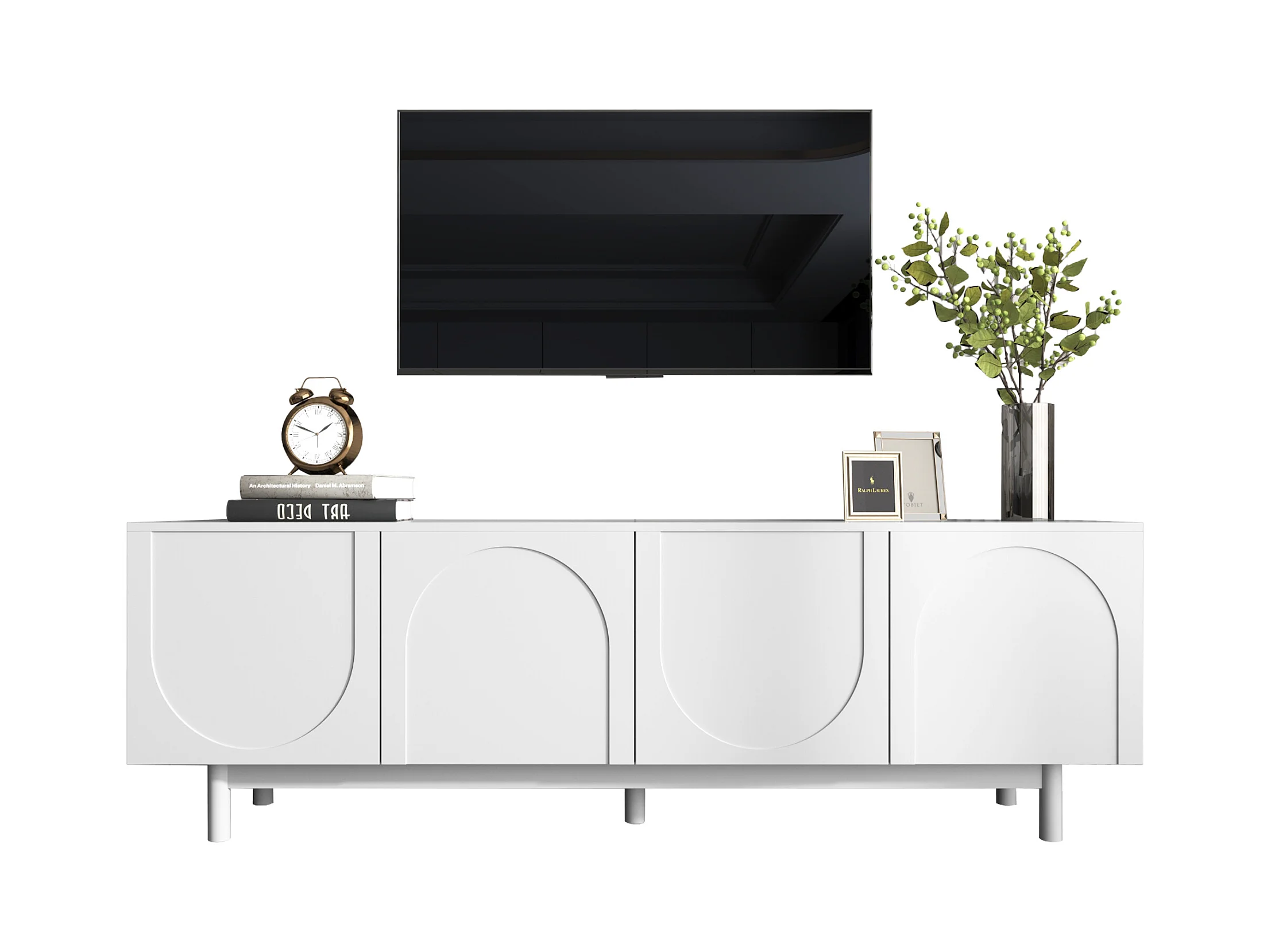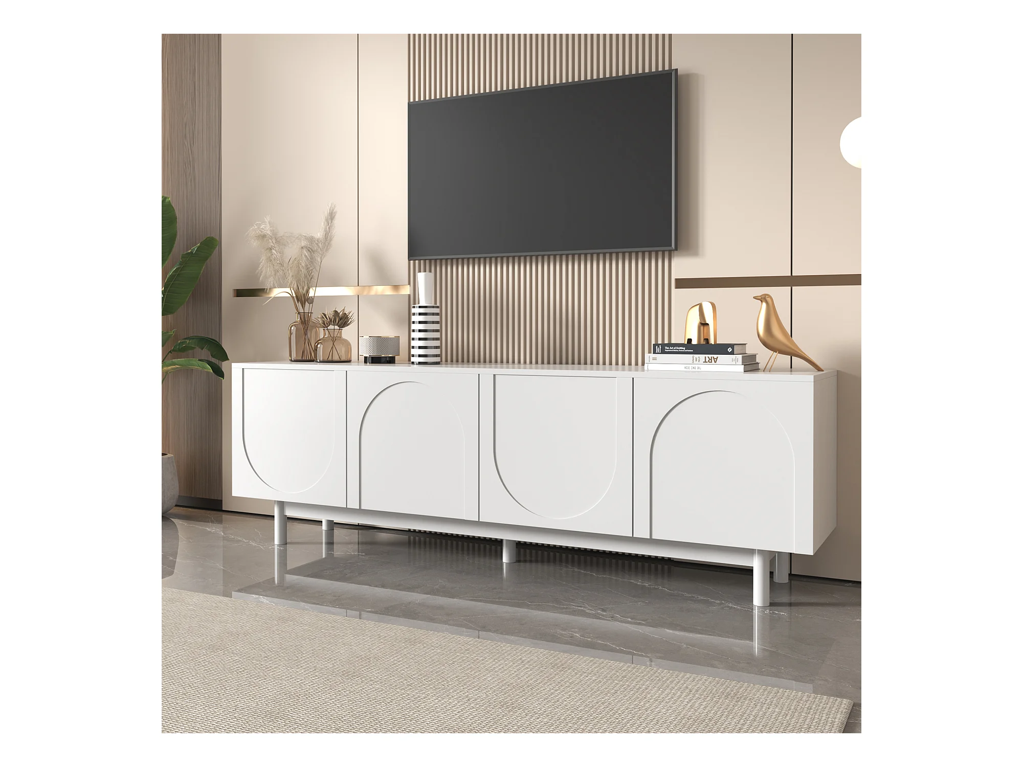 Mueble de TV moderno blanco de 160 cm con 4 puertas de cierre suave para salón y cine en casa.