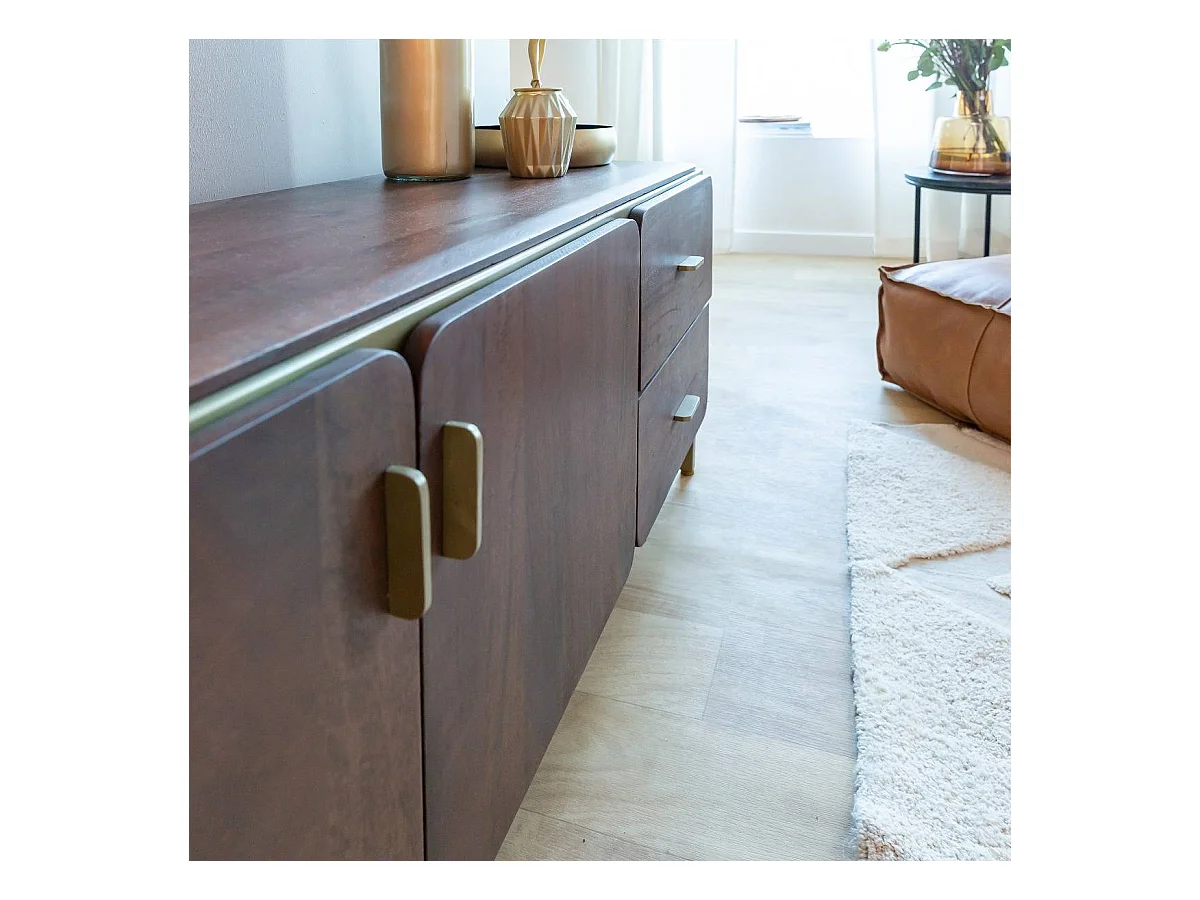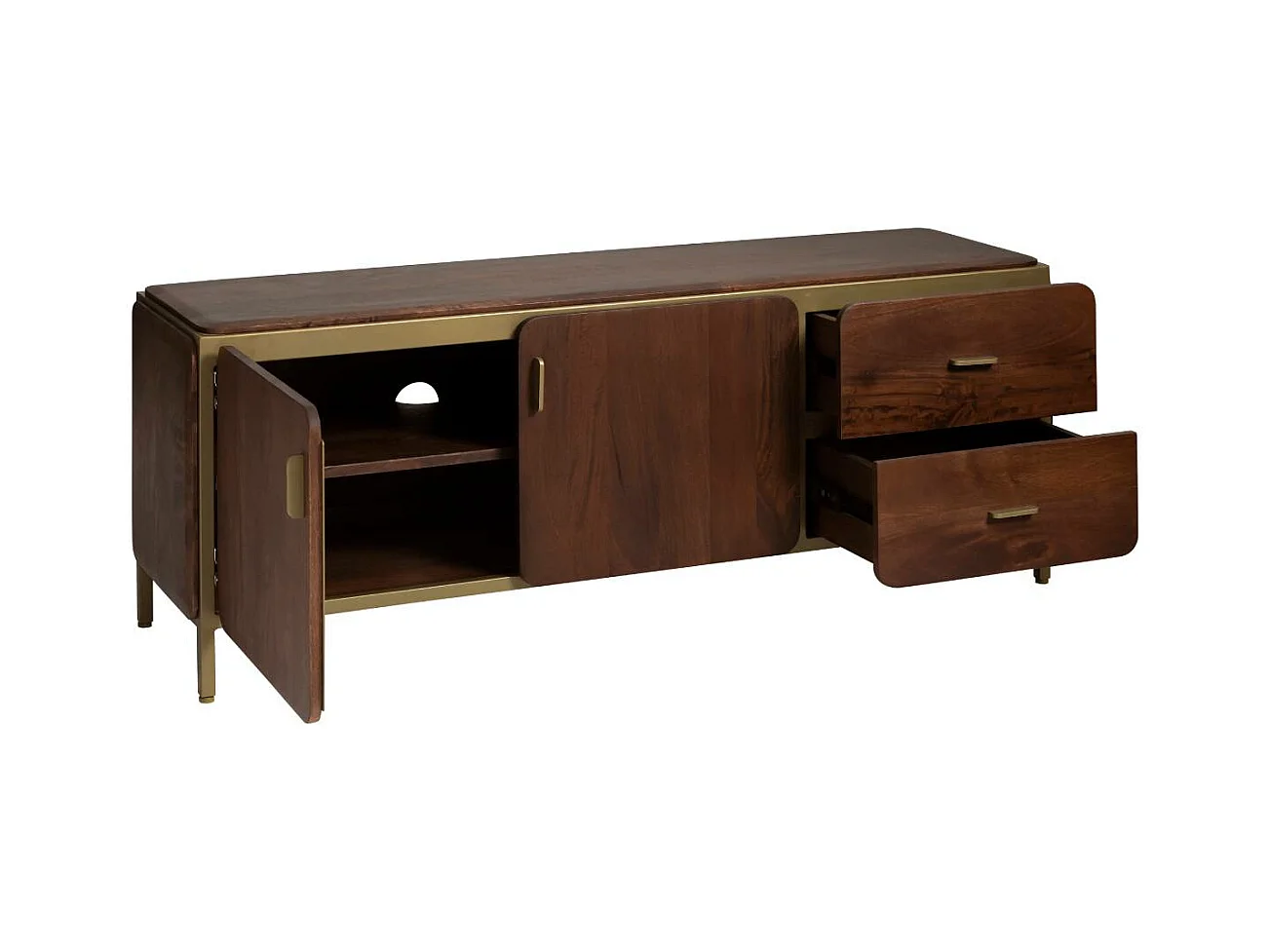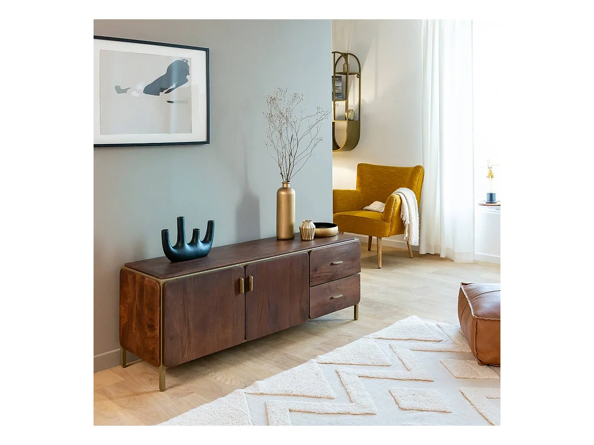 Mueble de TV de madera de mango Lisette con almacenamiento - Diseño elegante - INF7524