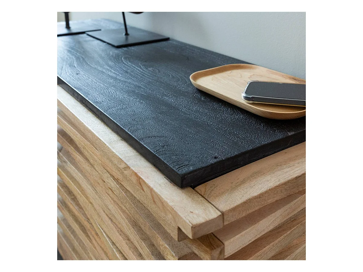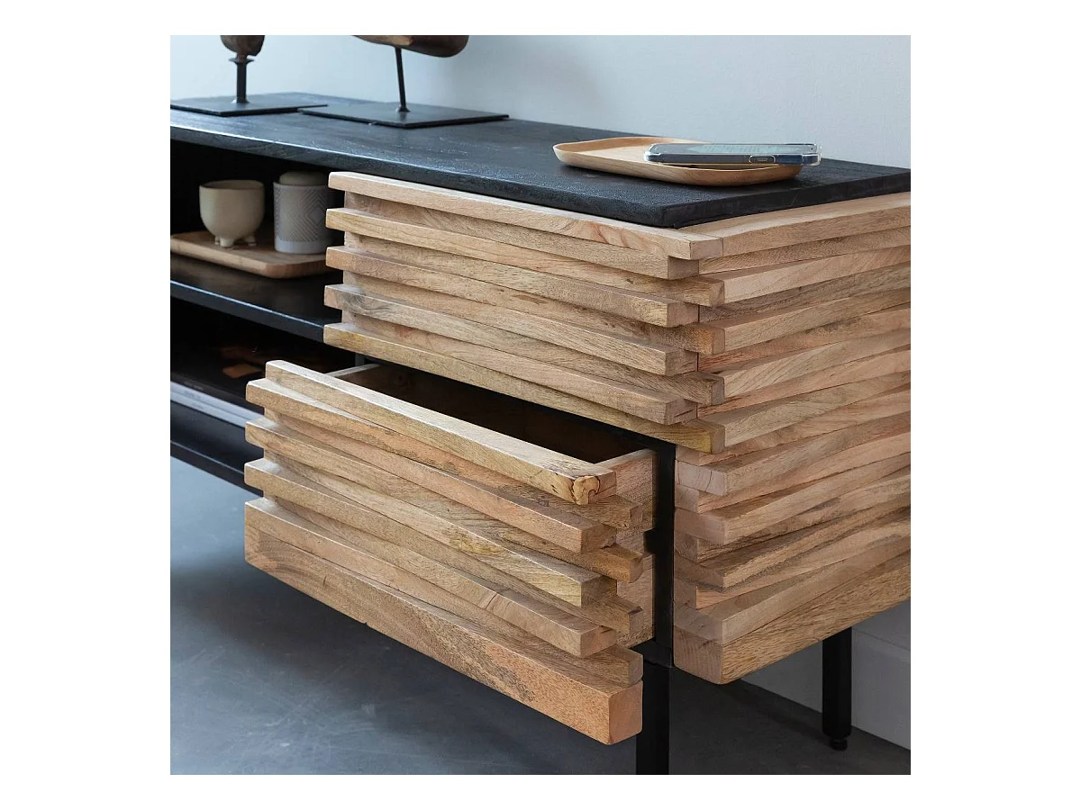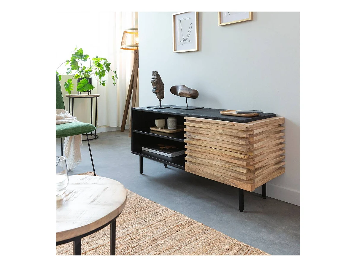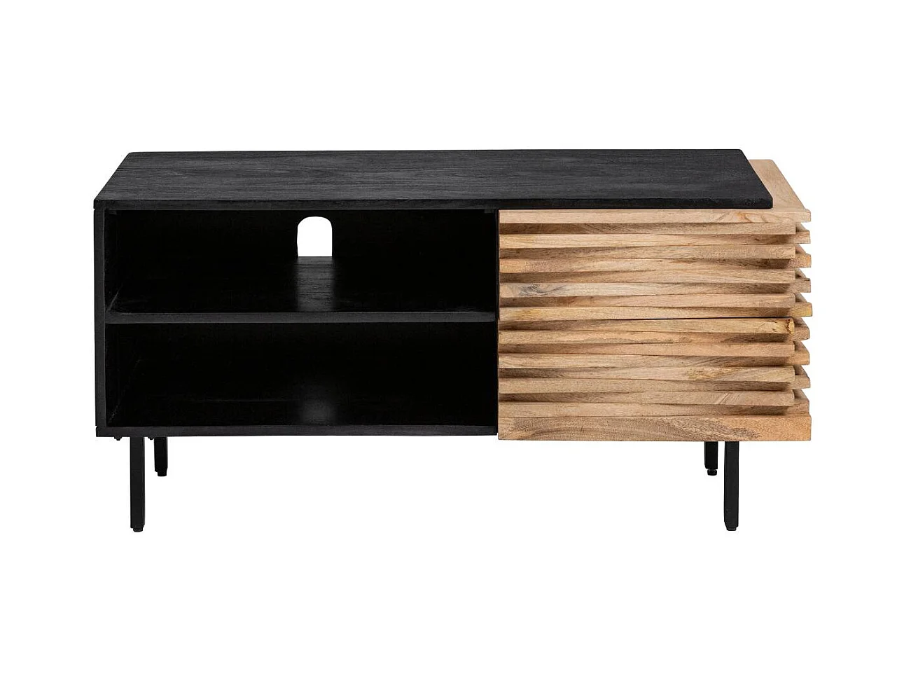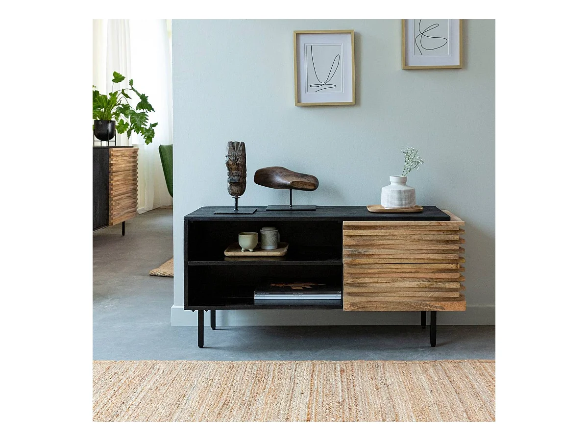 Mueble de TV de madera de mango y metal negro con puertas con aberturas Auxence