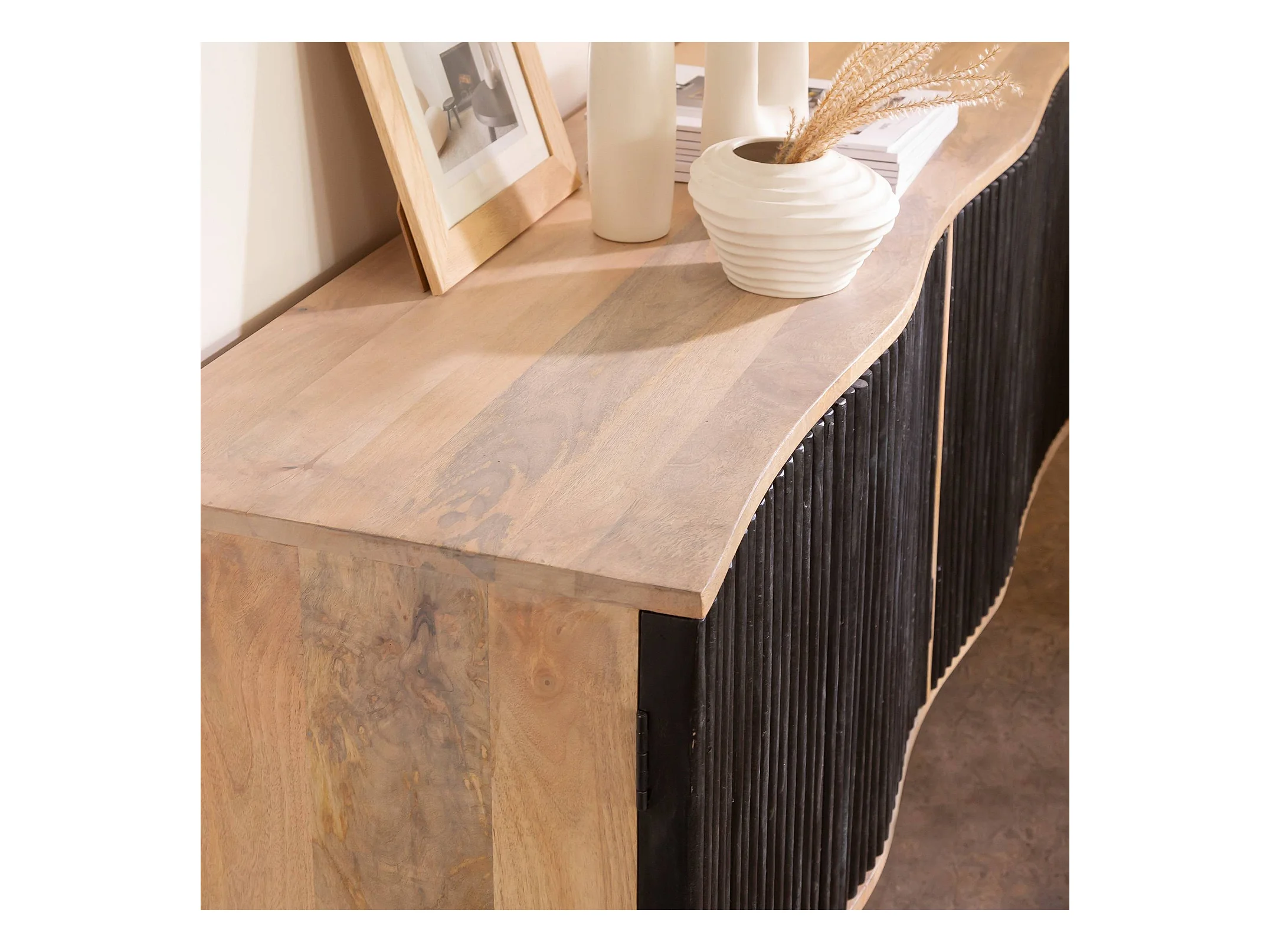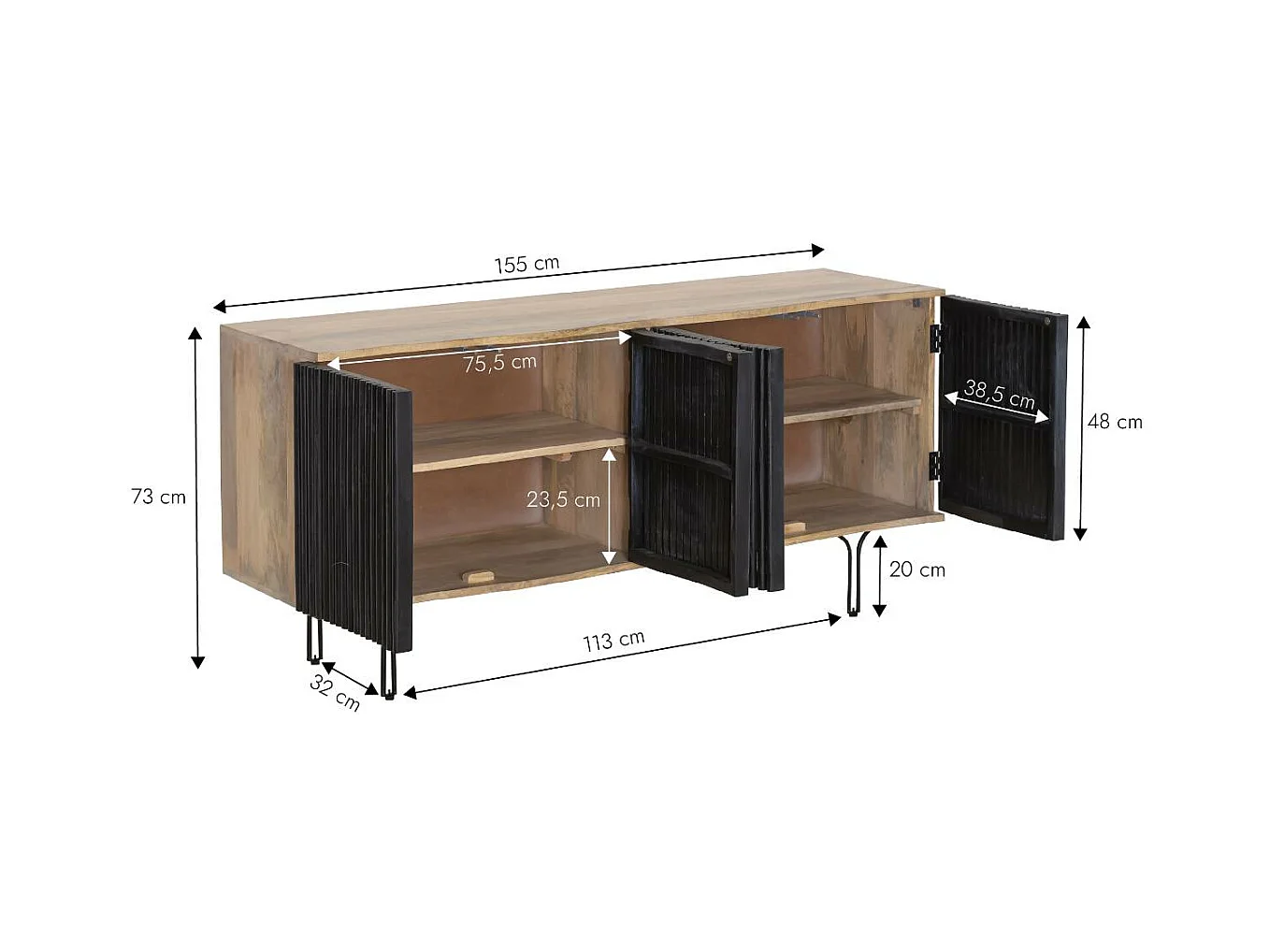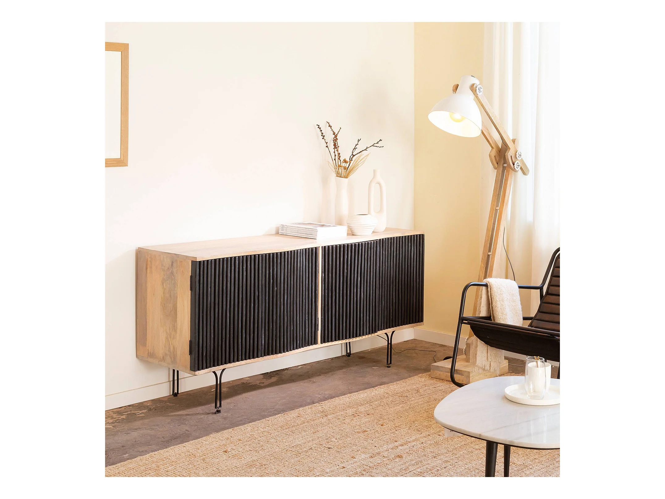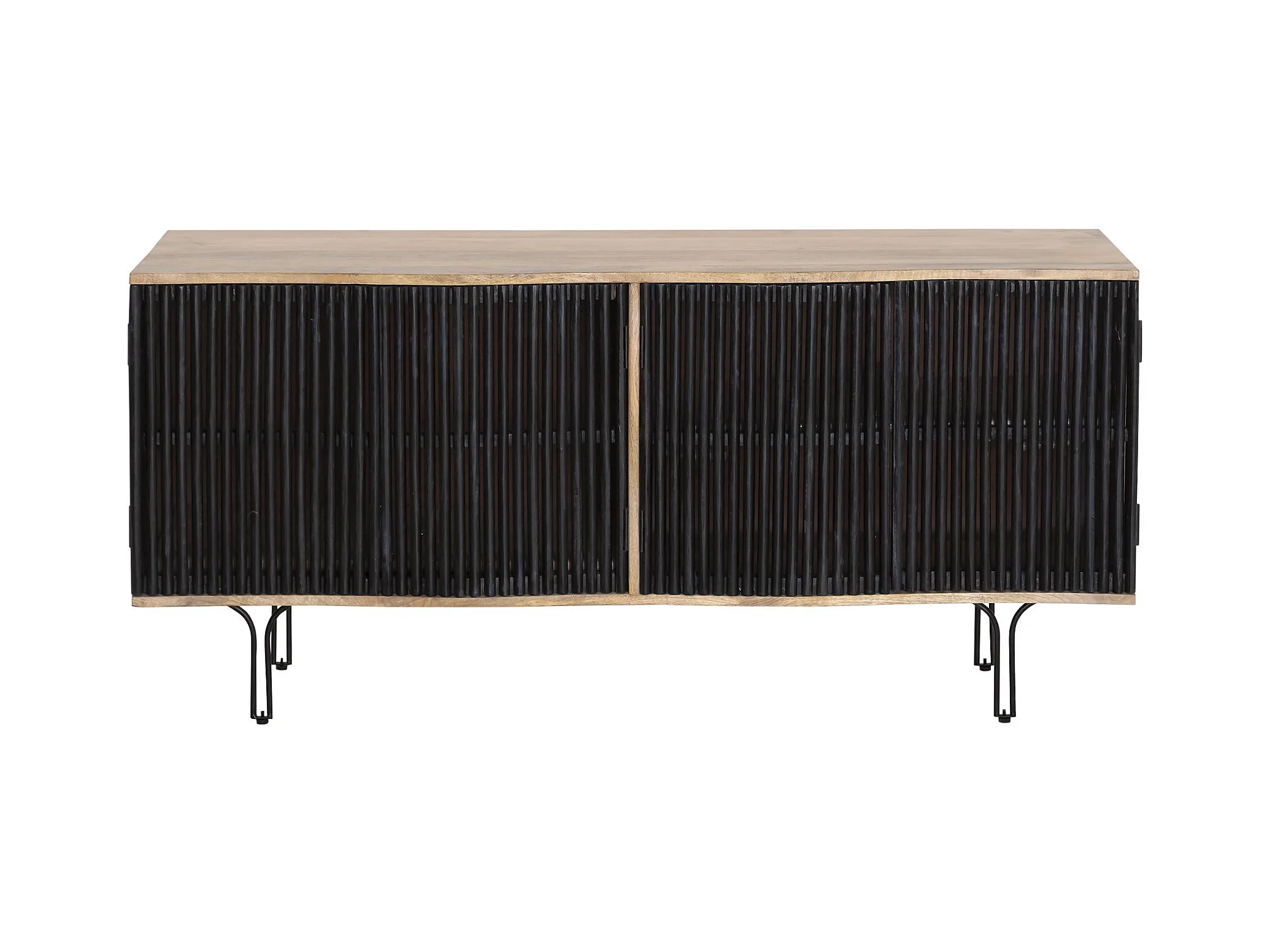Mueble de TV de madera de mango y metal negro con puertas con aberturas Auxence