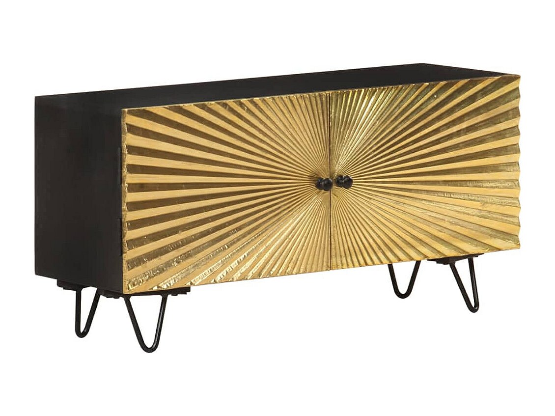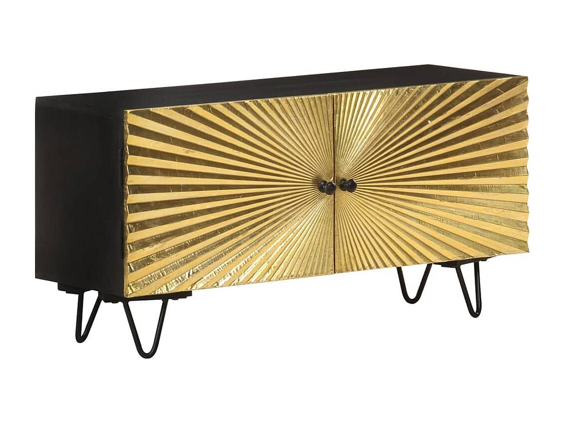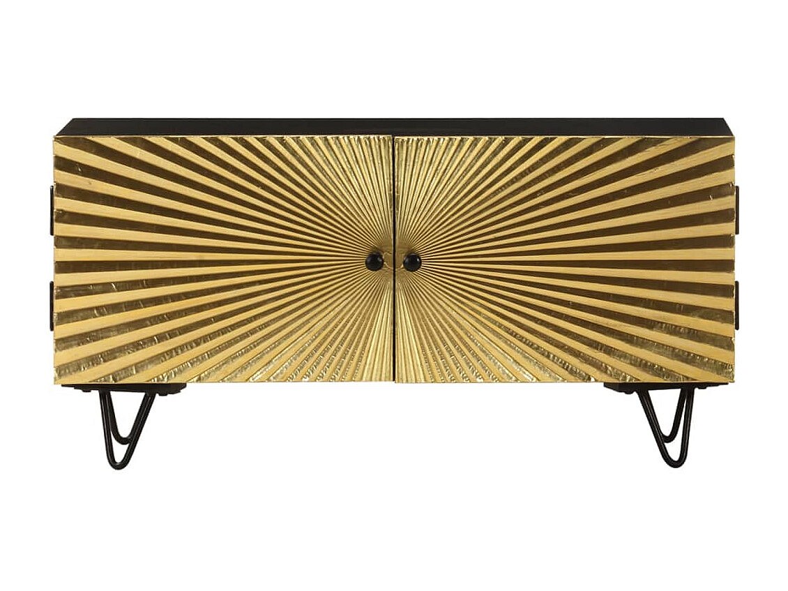 Mueble de TV de madera negra de 175 cm con detalles dorados y almacenaje para salón