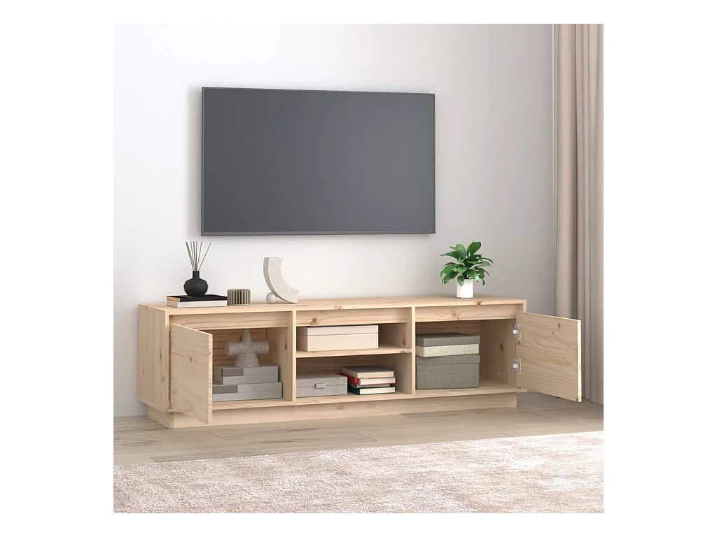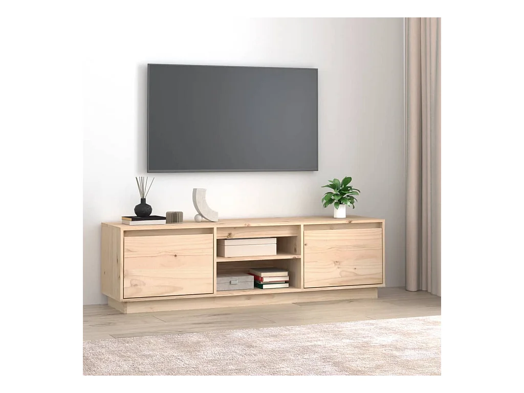 Mueble de TV de madera maciza de pino 140x35x40 cm ES292194