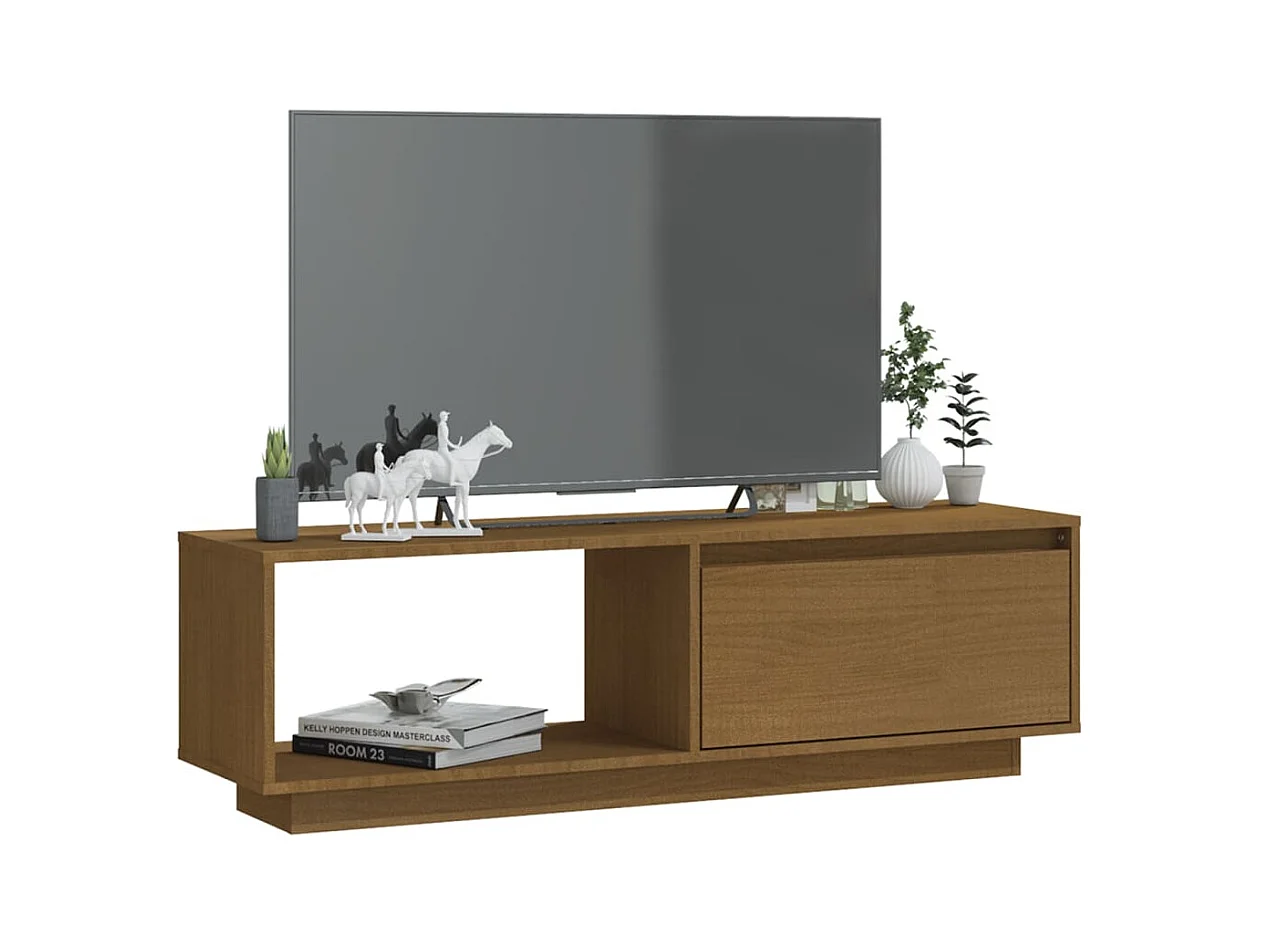 Mueble de TV de madera maciza pino marrón miel 110x30x33,5 cm ES86689