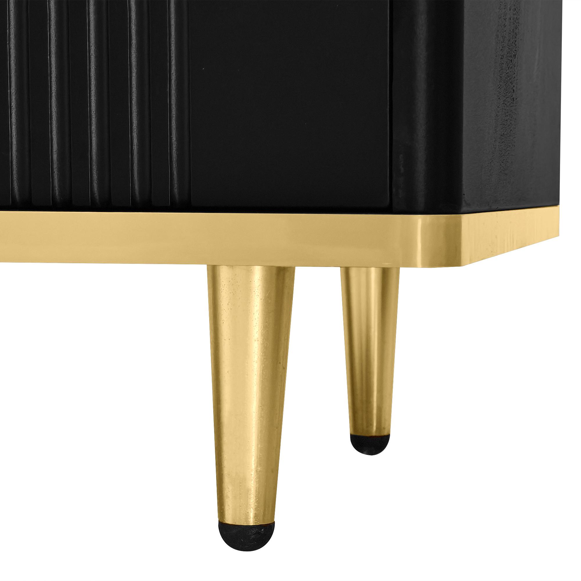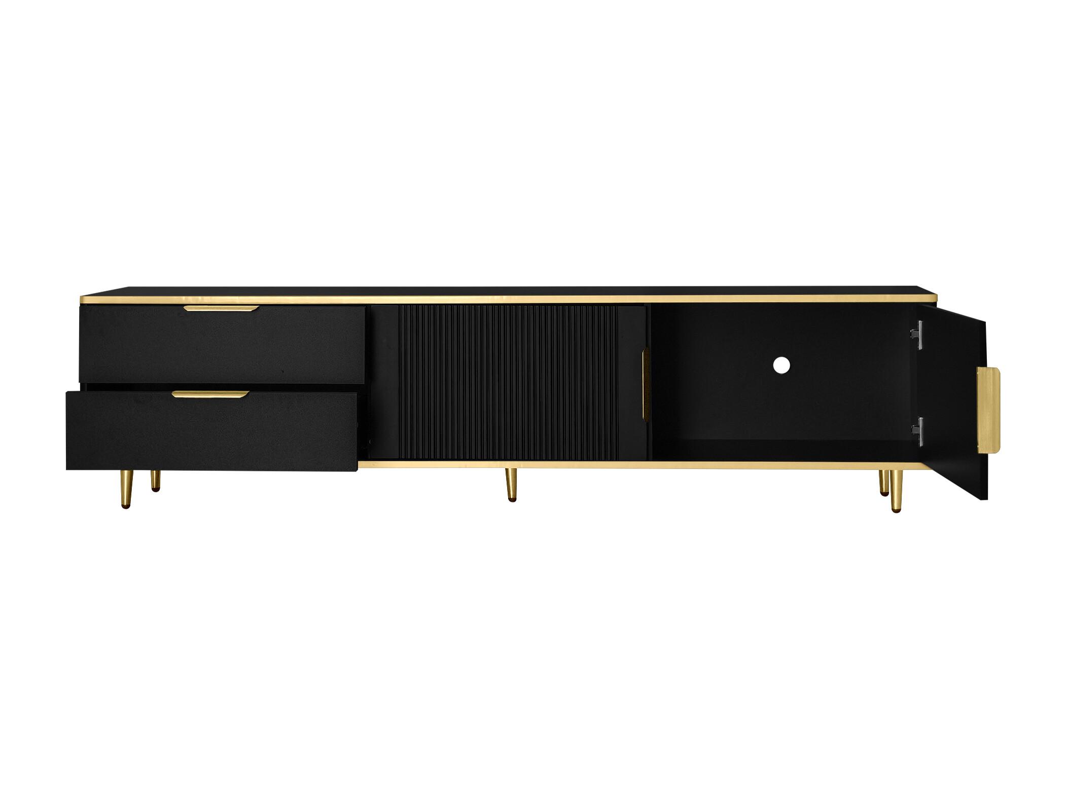 Mueble de TV de madera negra de 175 cm con detalles dorados y almacenaje para salón