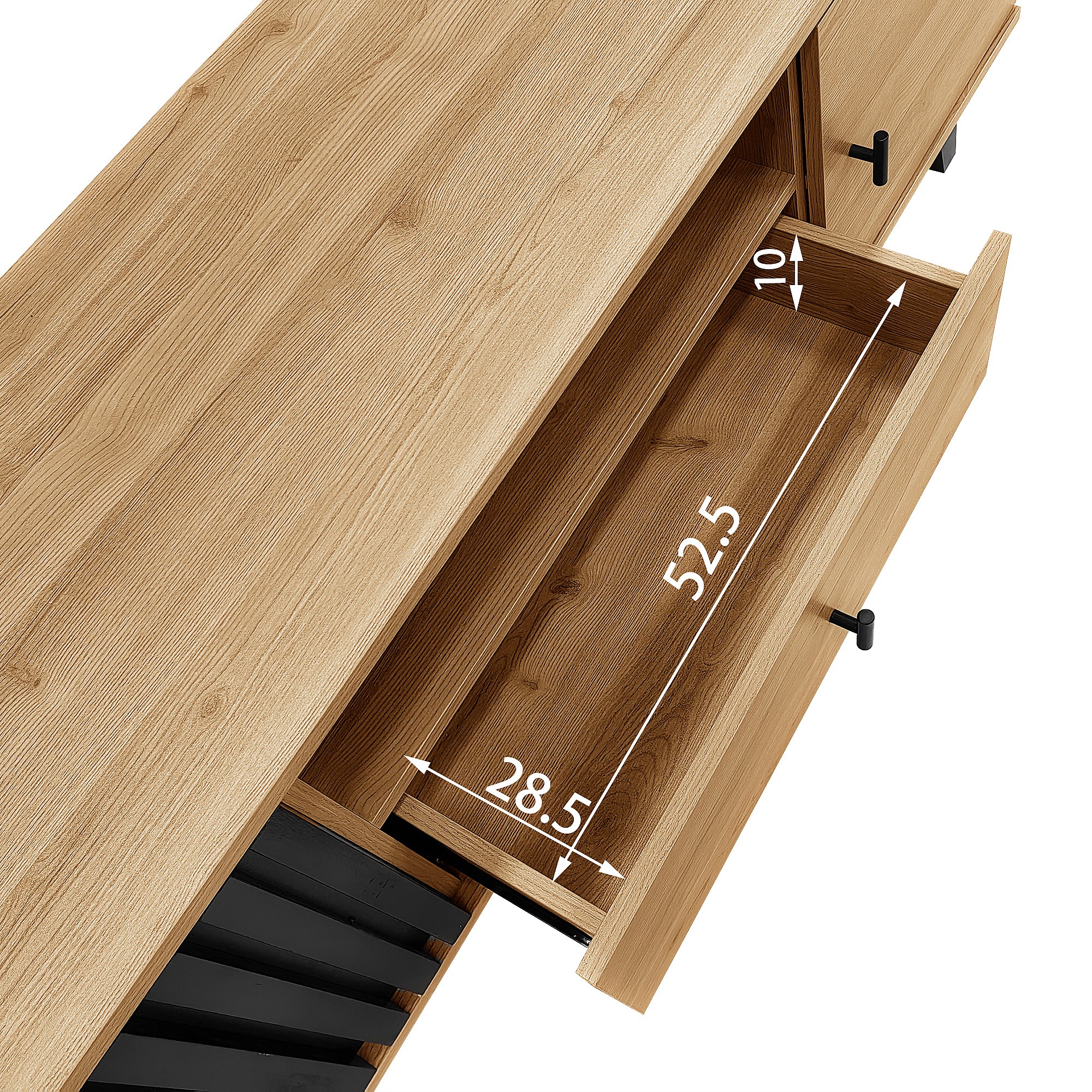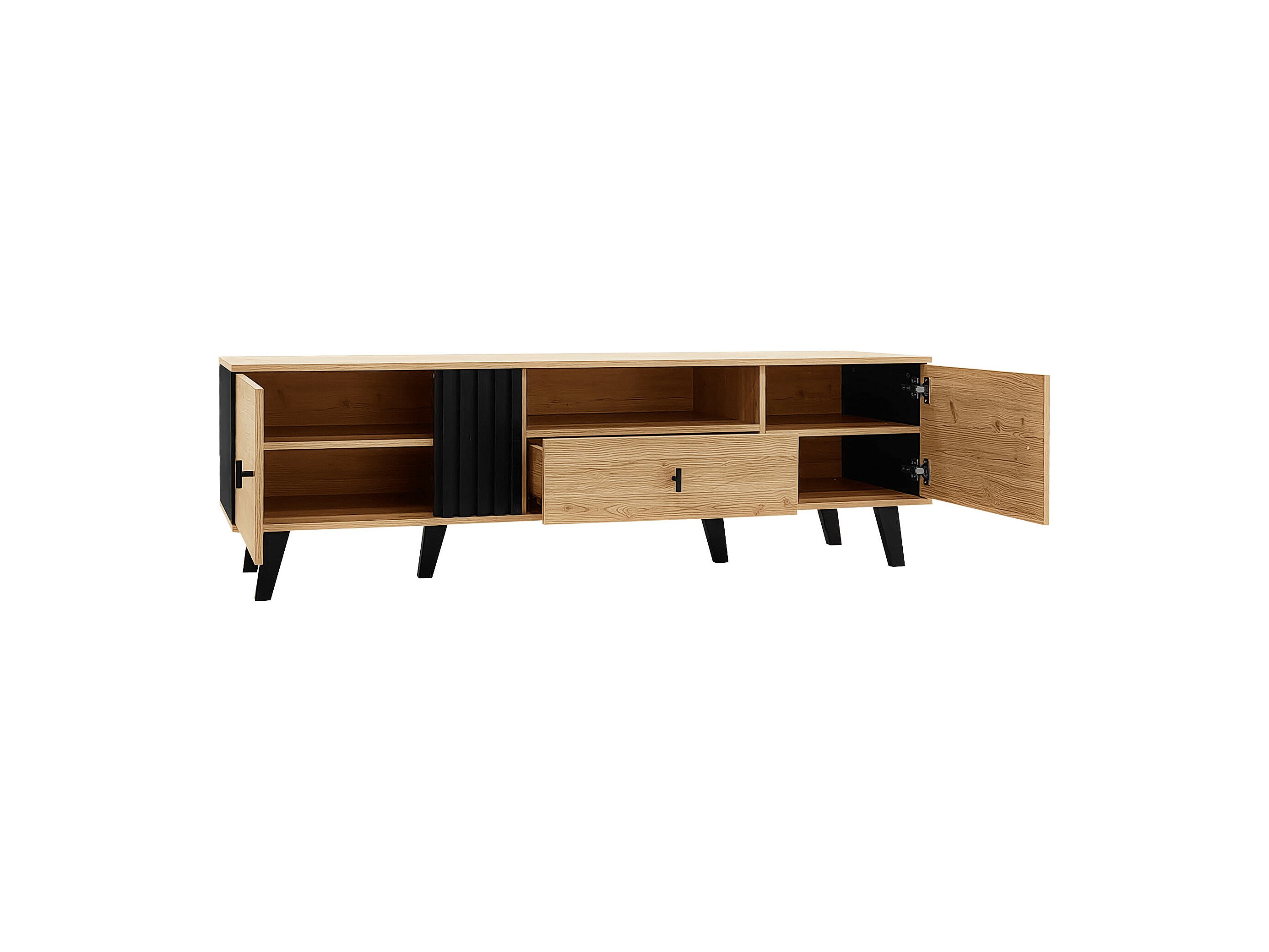 Mueble de TV moderno con acabado en madera de roble, 180 × 38 × 50 cm.