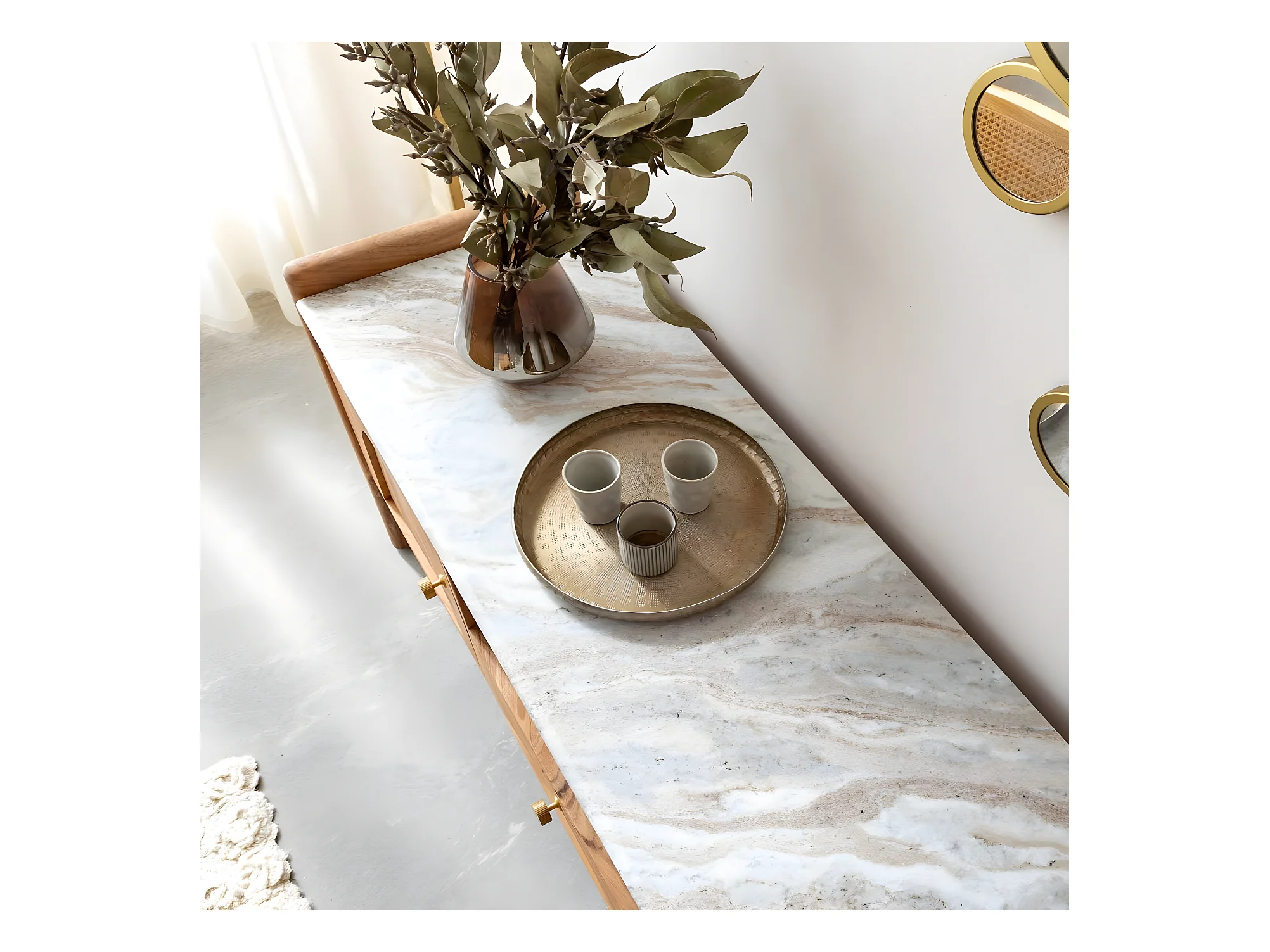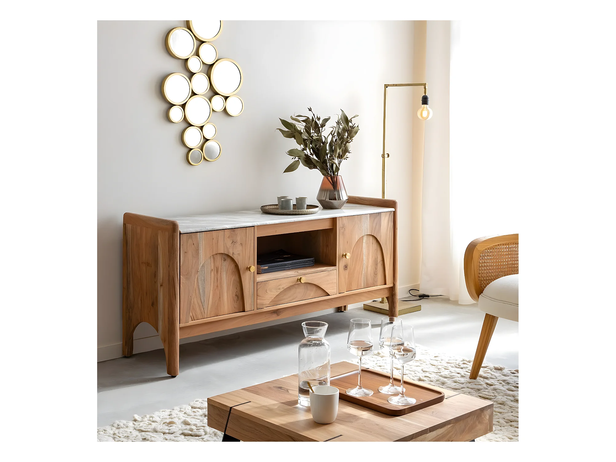 Mueble de TV de mármol y madera de acacia Calix con almacenamiento
