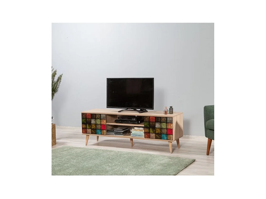 Mueble de TV de roble Sonoma – 140 cm – Revestido 100% melamina – Patas de madera de carpe
