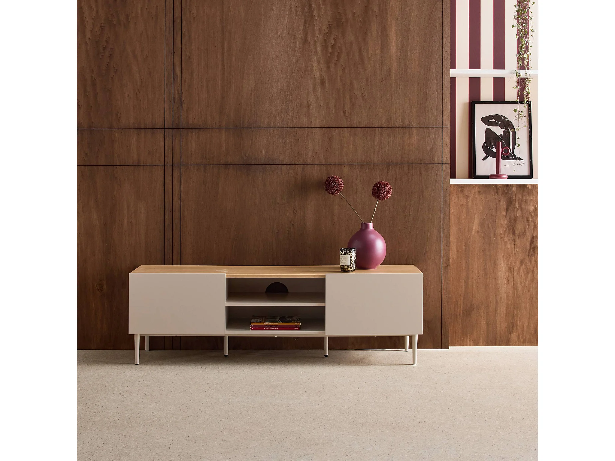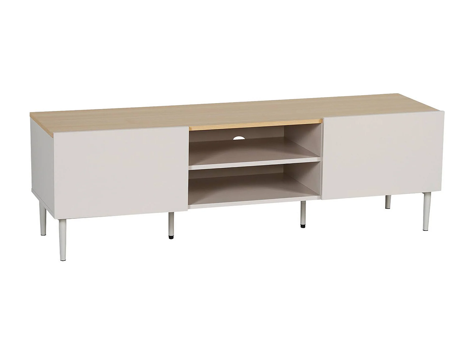 Mueble de tv de metal y decoración de madera 2 puertas, 140cm beige