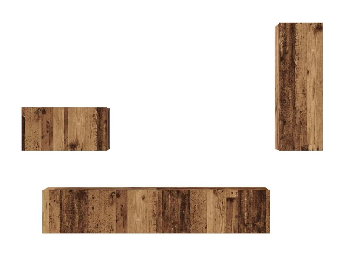 Conjunto de mueble de TV 5 piezas montado la pared madera vieja