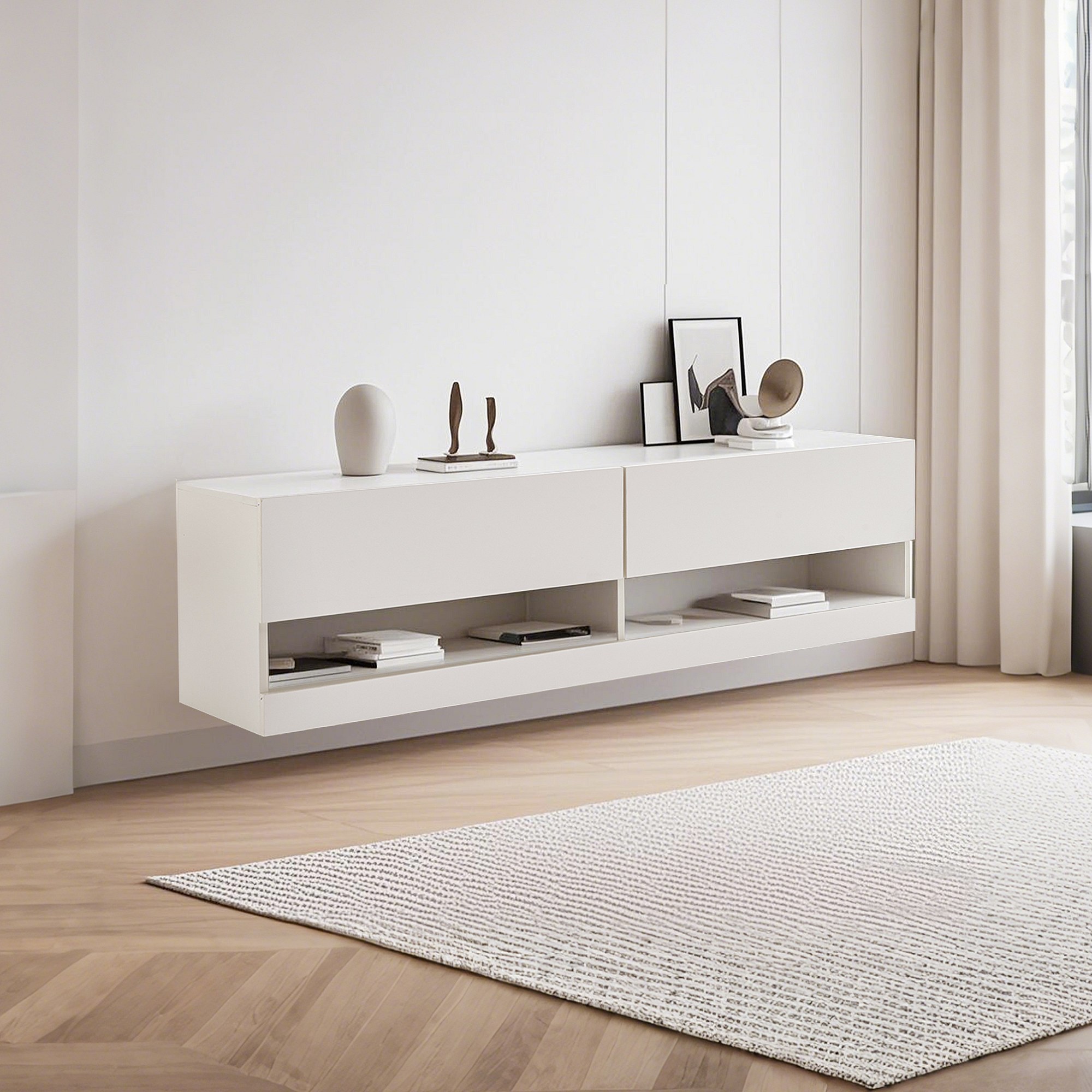 Soporte de TV blanco de 160 cm, diseño minimalista, 4 patas para TV de 65 pulgadas, sala de estar