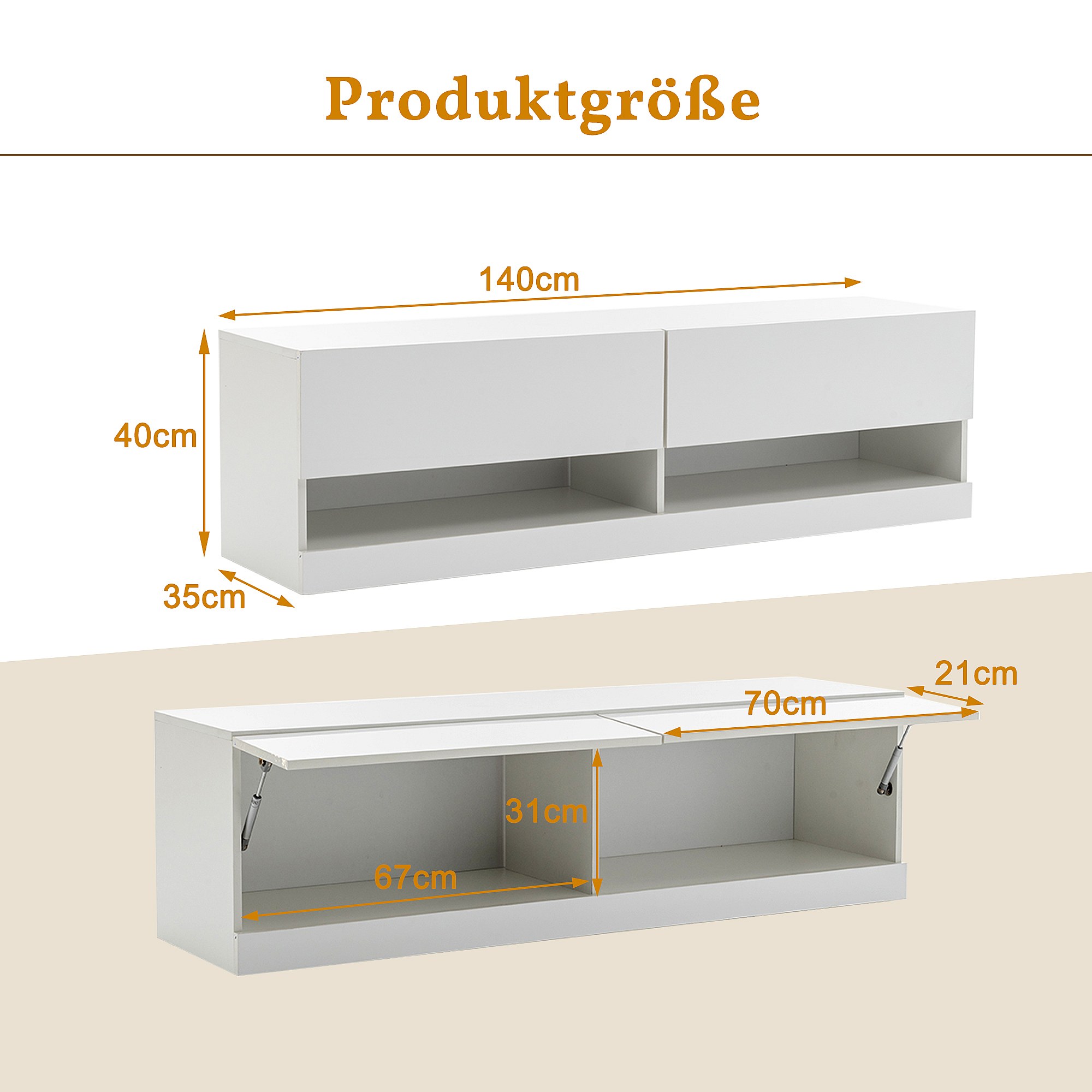 Mueble de TV de pared con iluminación LED - 7 colores regulables - Mueble bajo moderno en blanco 140x35x40cm