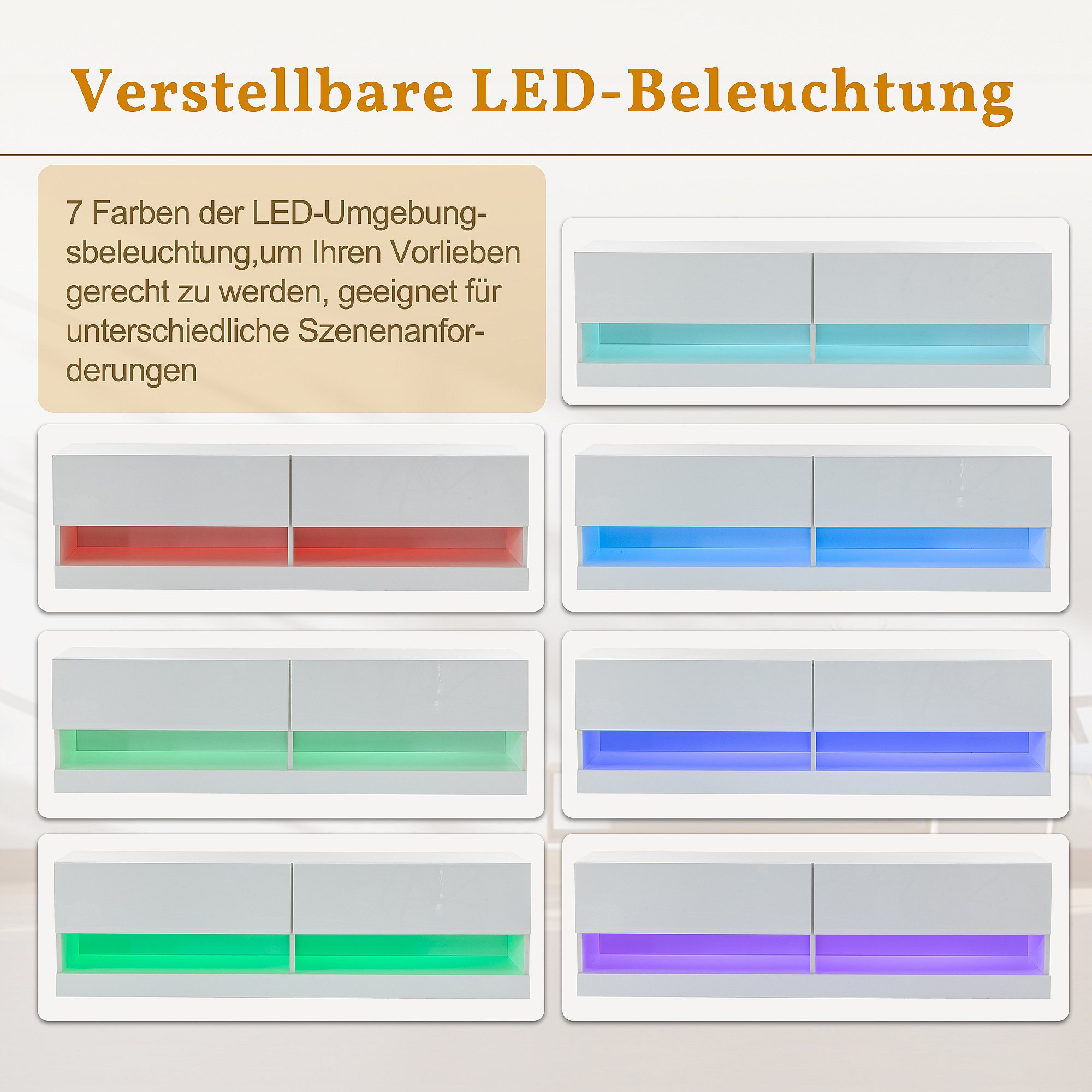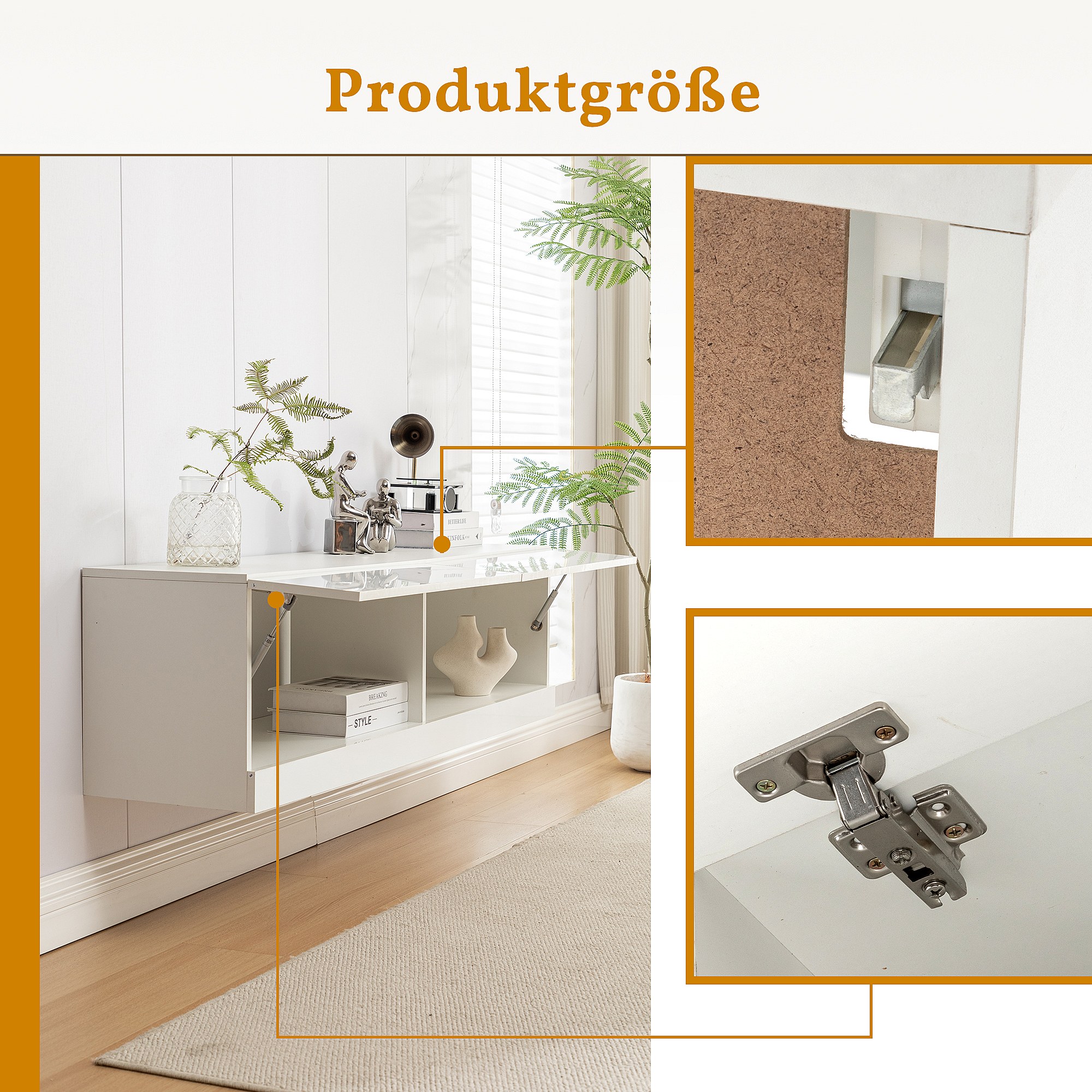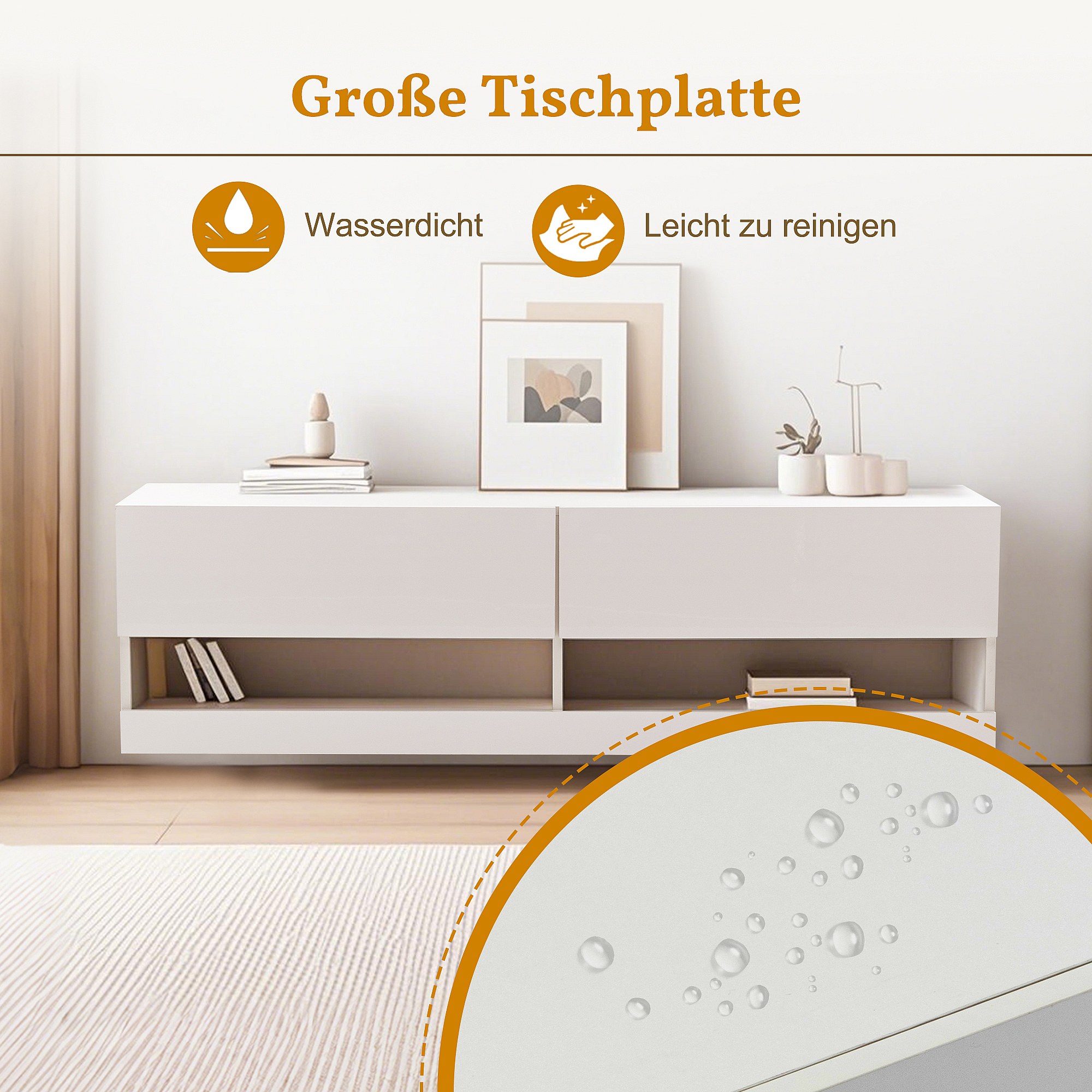 Mueble TV LED 120 x 35 x 40 cm, Mueble TV de Pared Lacado Blanco, para Salón o Dormitorio