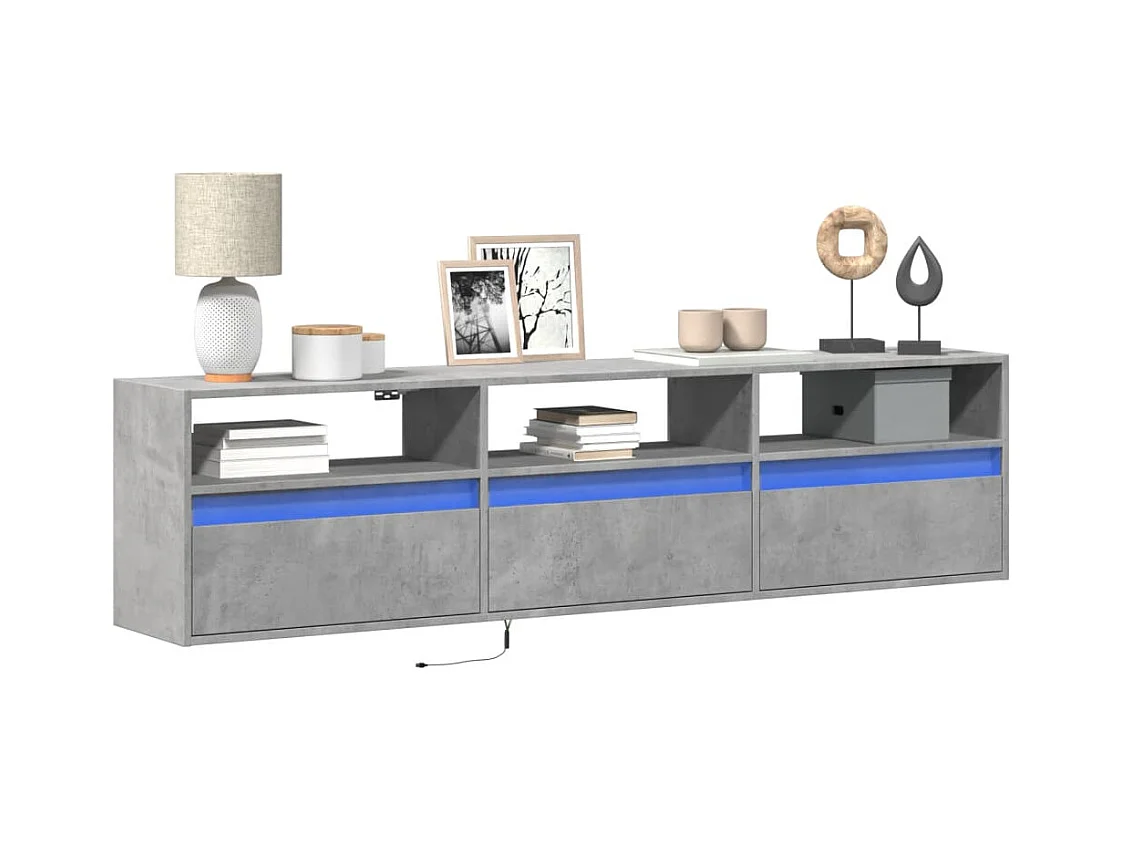 Mueble de TV de pared con LED gris hormigón 180x31x45 cm